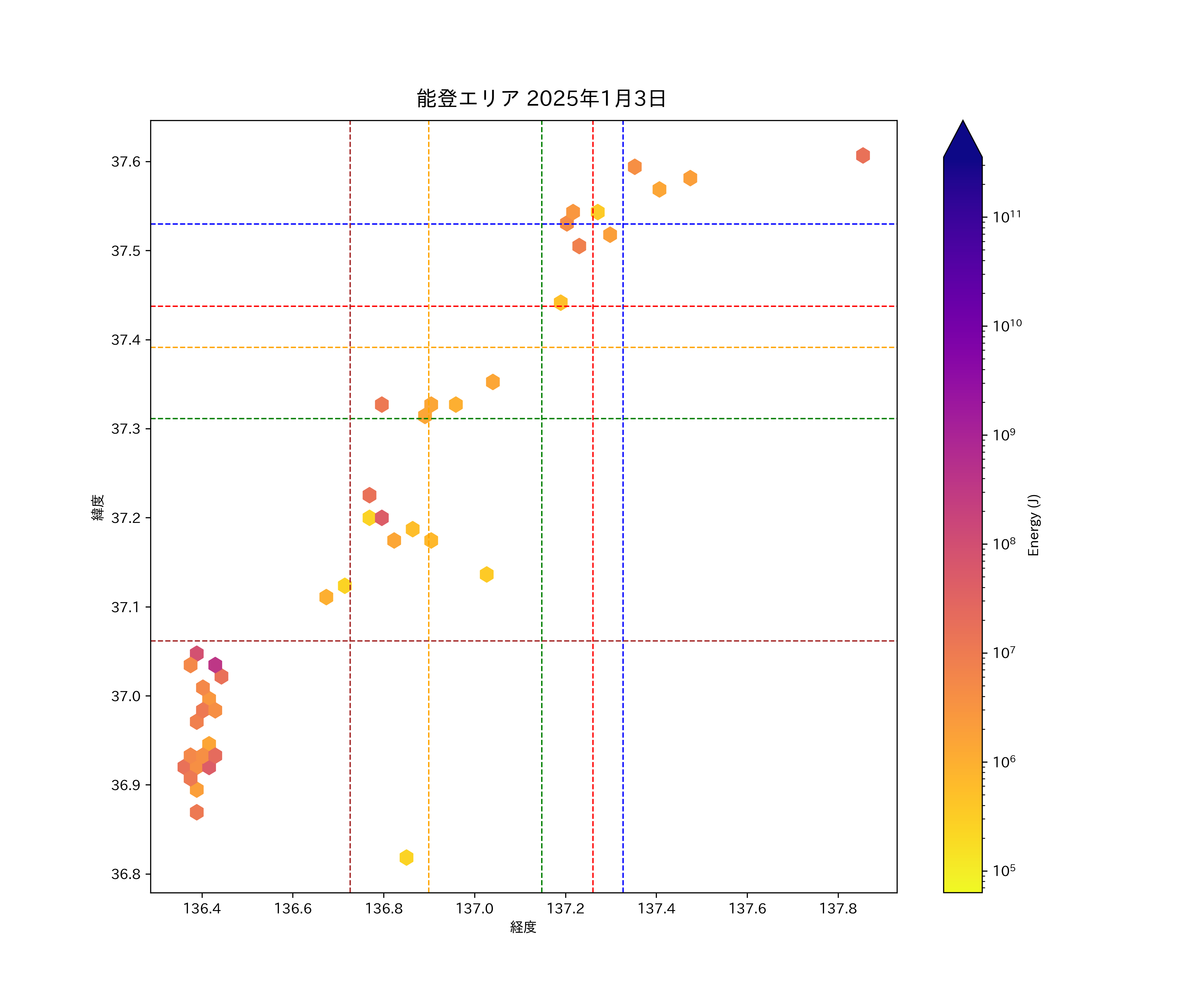 2025年01月03日能登エリア震源マップ