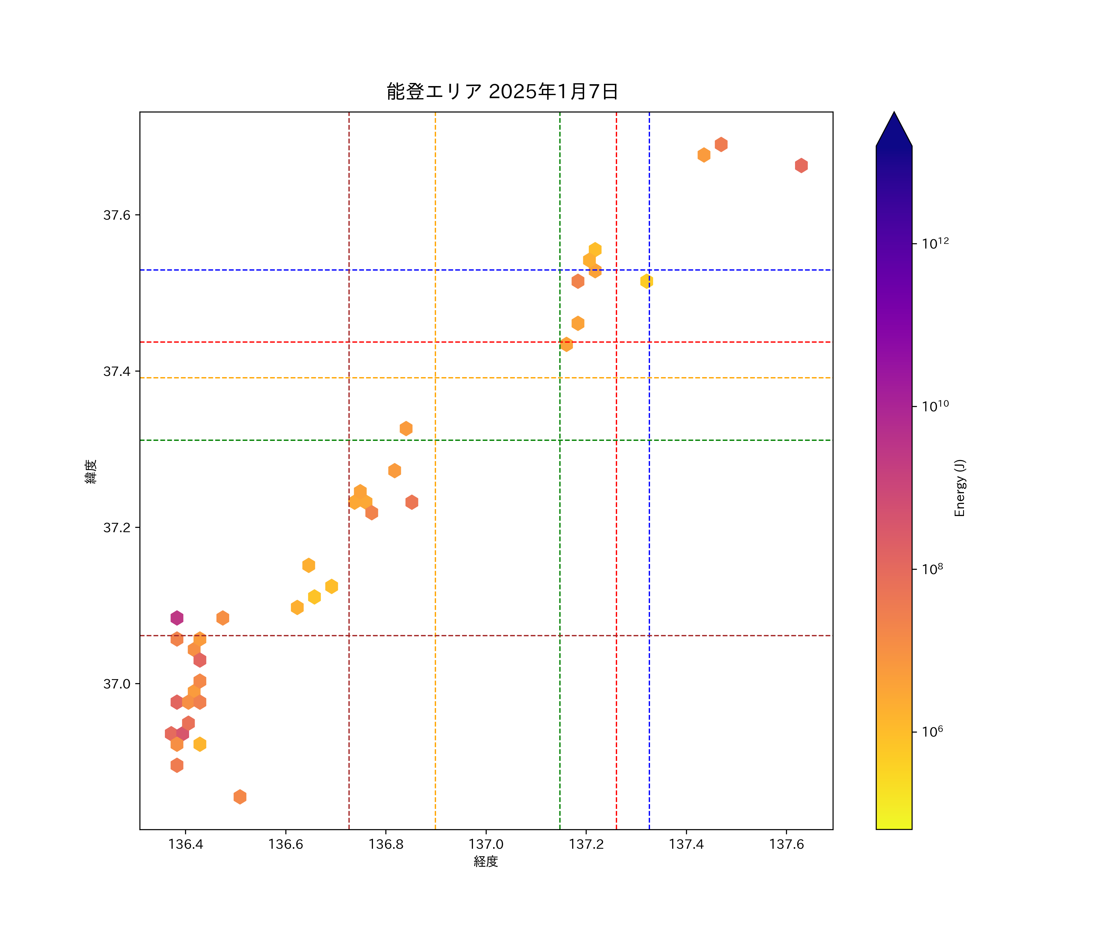 2025年01月07日能登エリア震源マップ