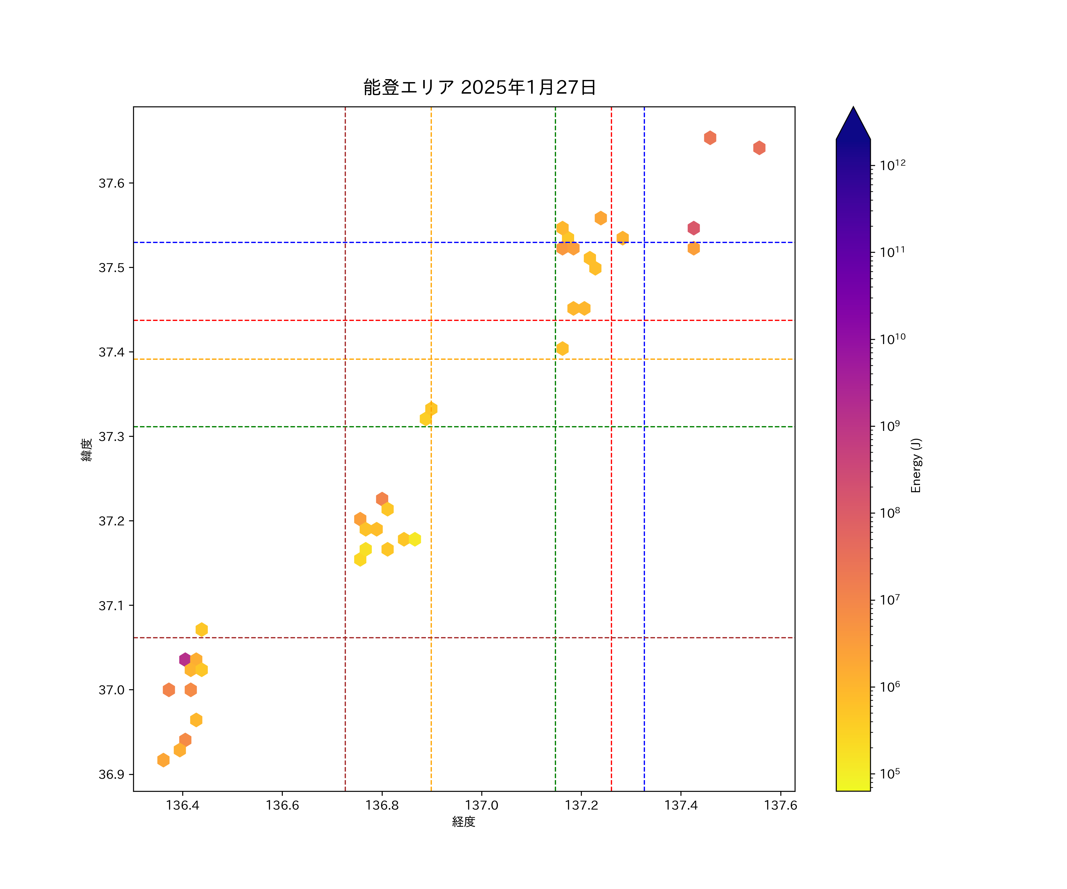 2025年01月27日能登エリア震源マップ