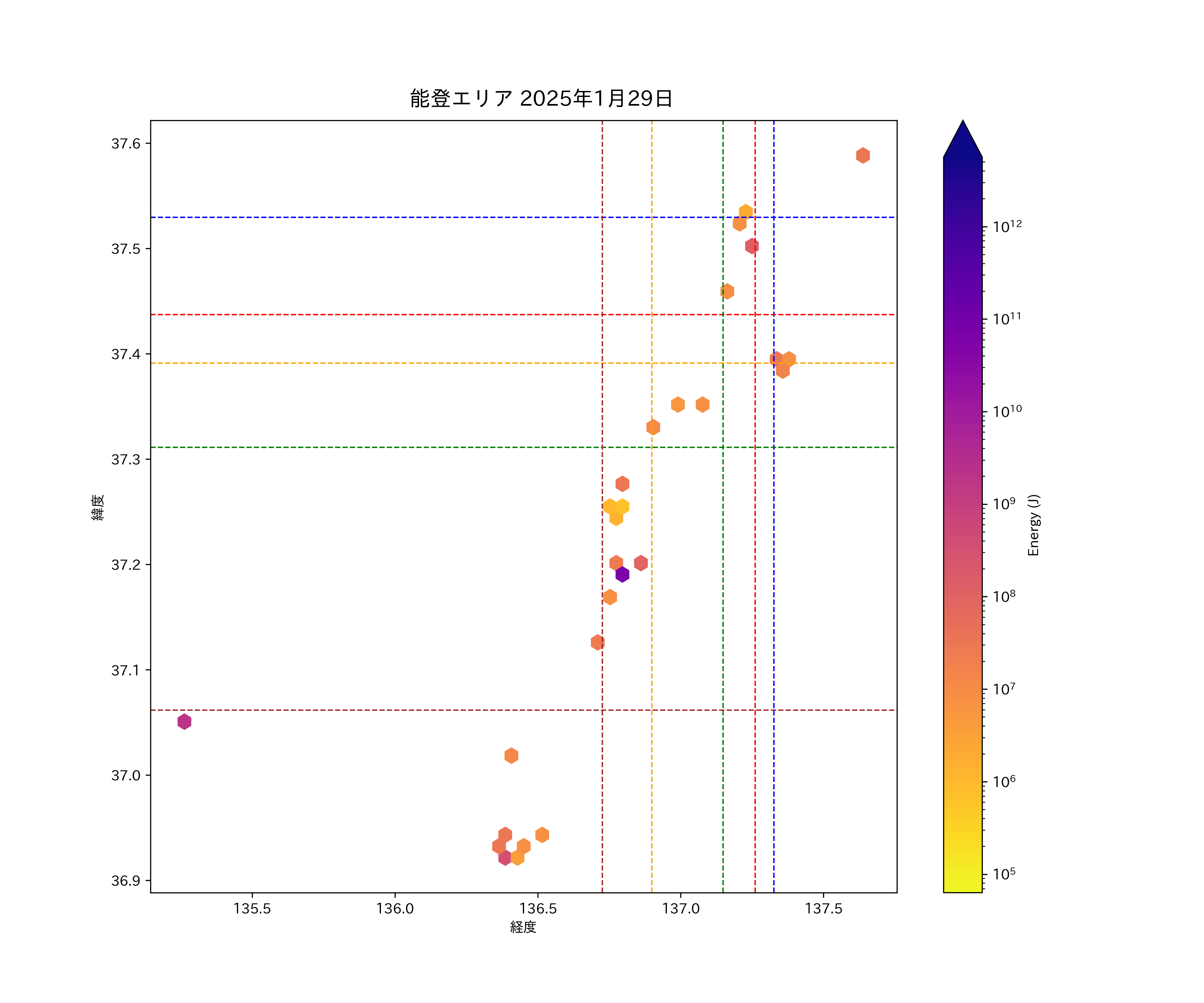 2025年01月29日能登エリア震源マップ