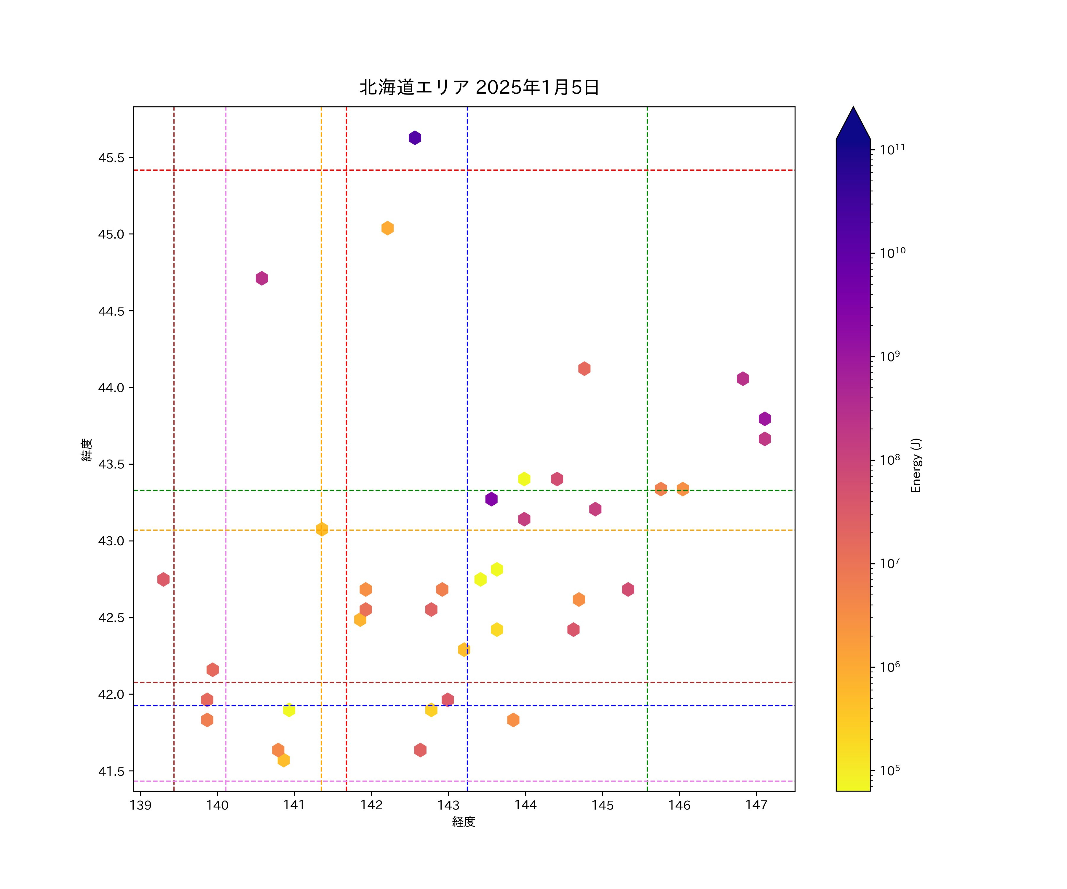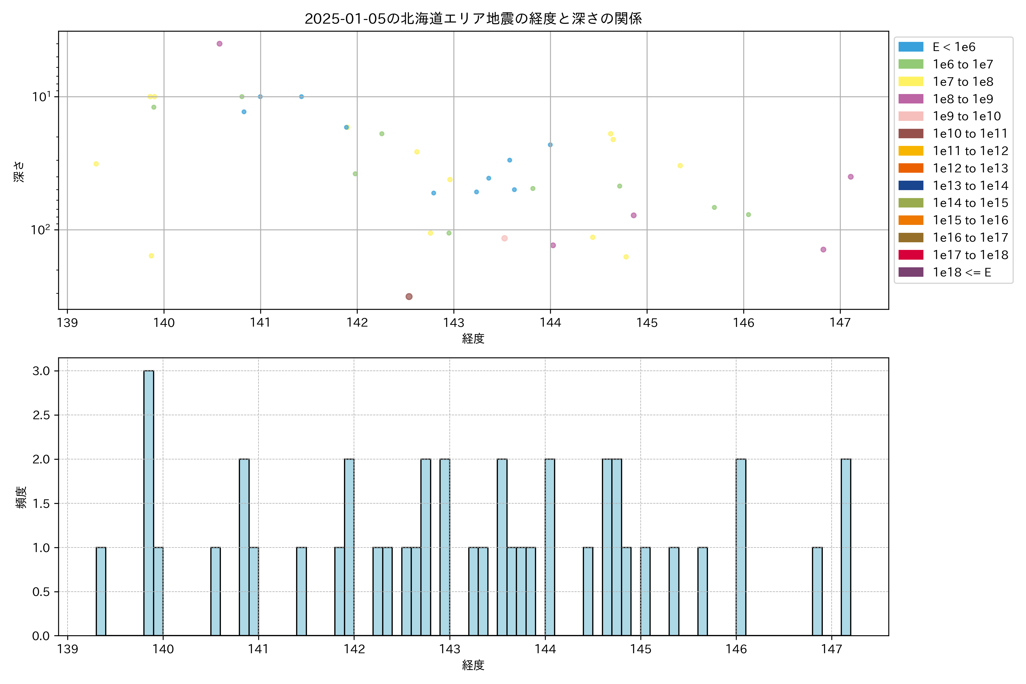 2025年01月05日北海道エリア震源マップ