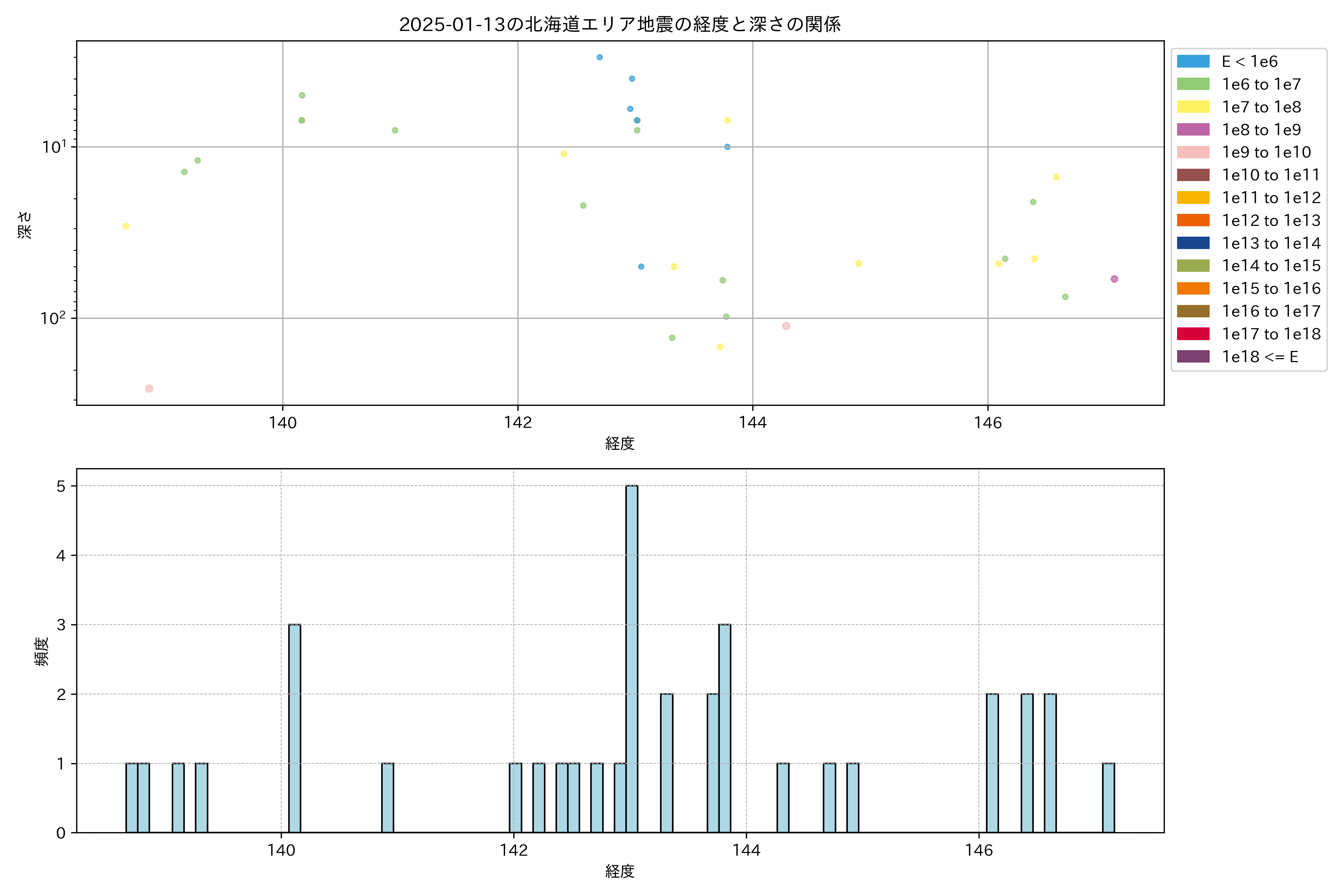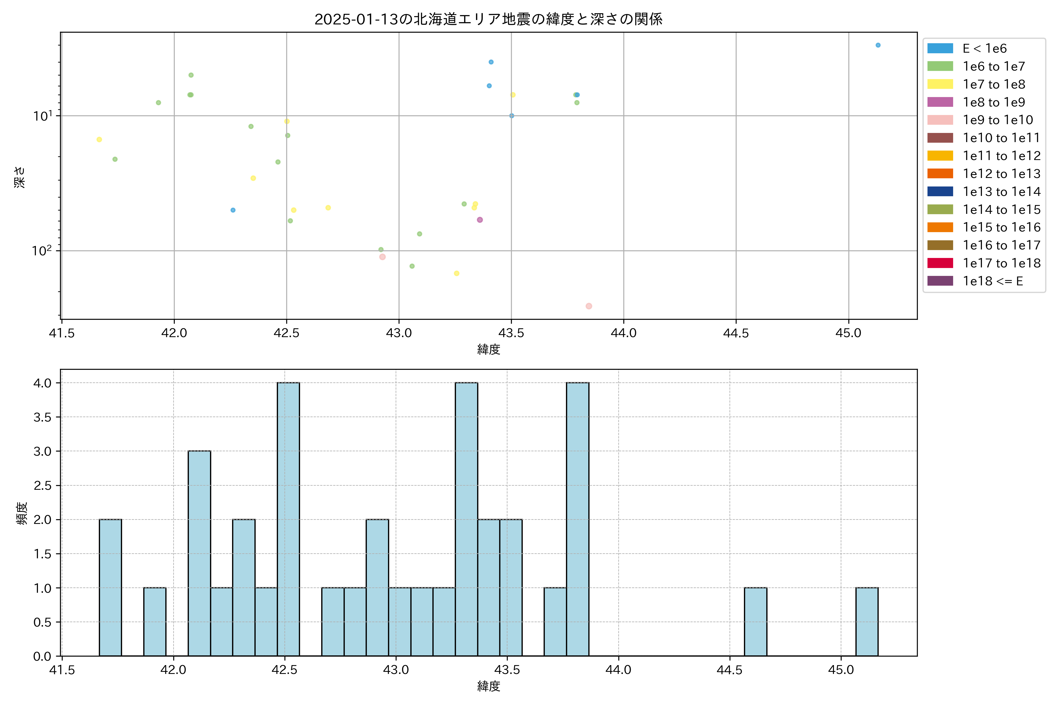 2025年01月13日北海道エリア震源マップ
