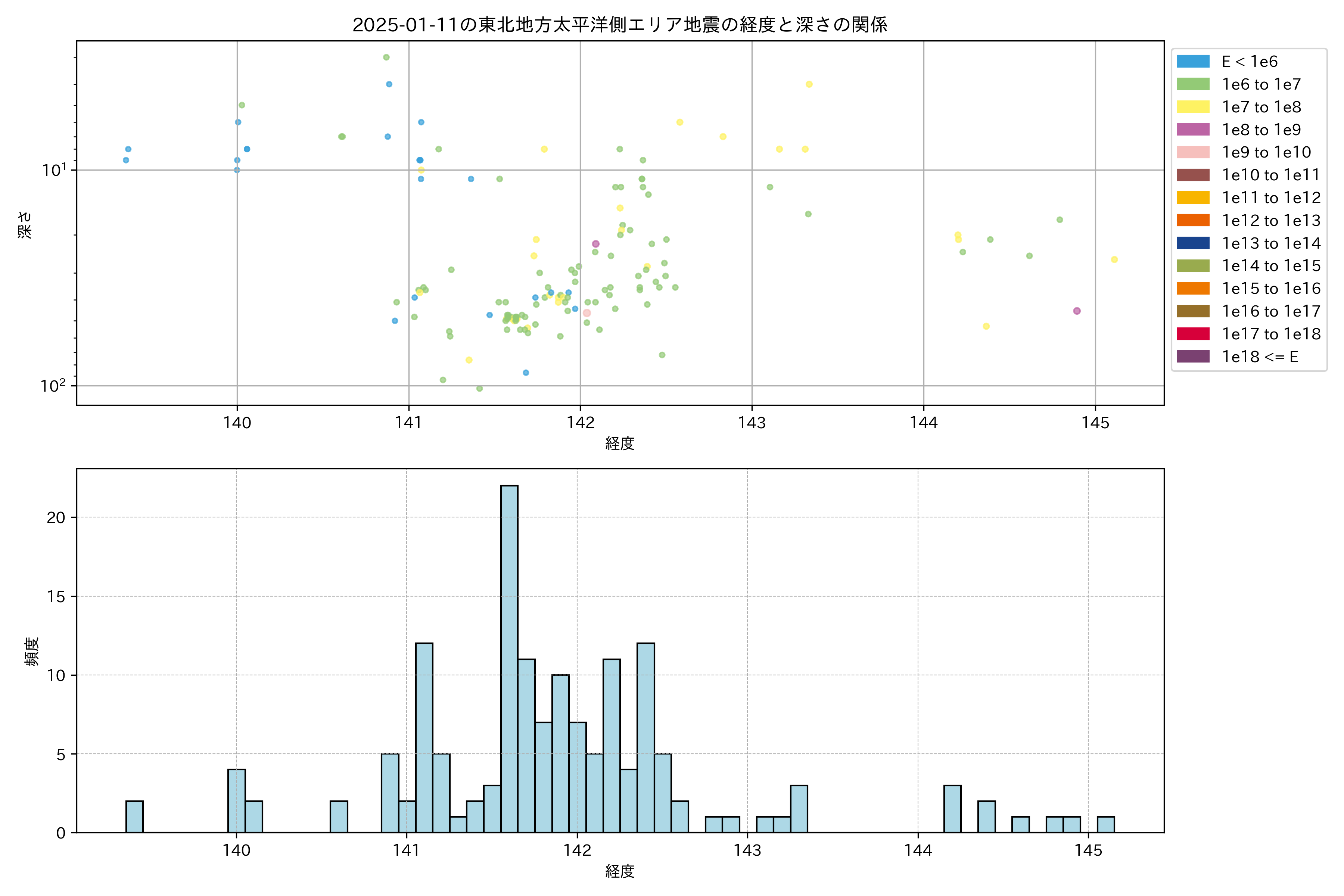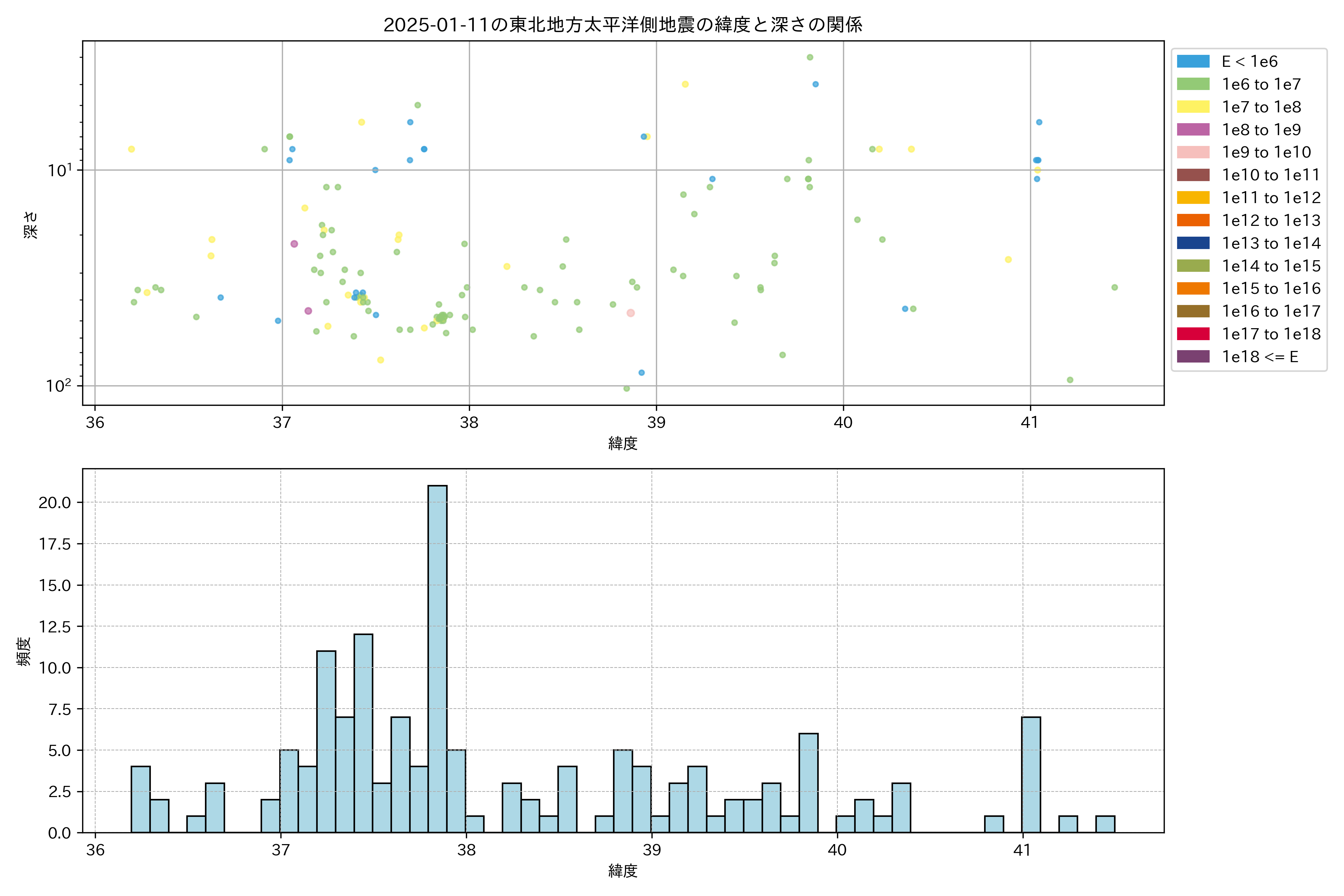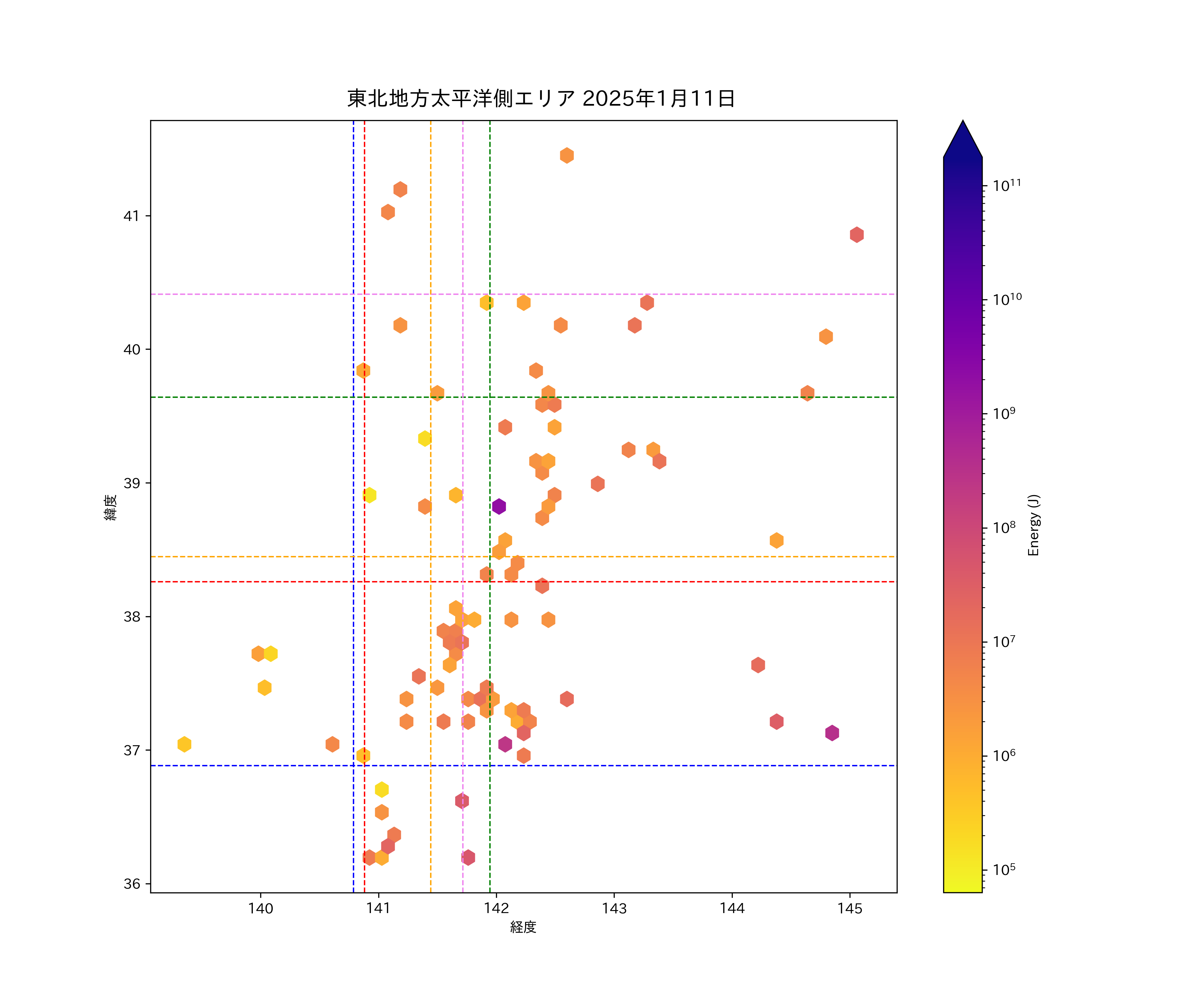 2025年01月11日東北太平洋側エリア震源マップ