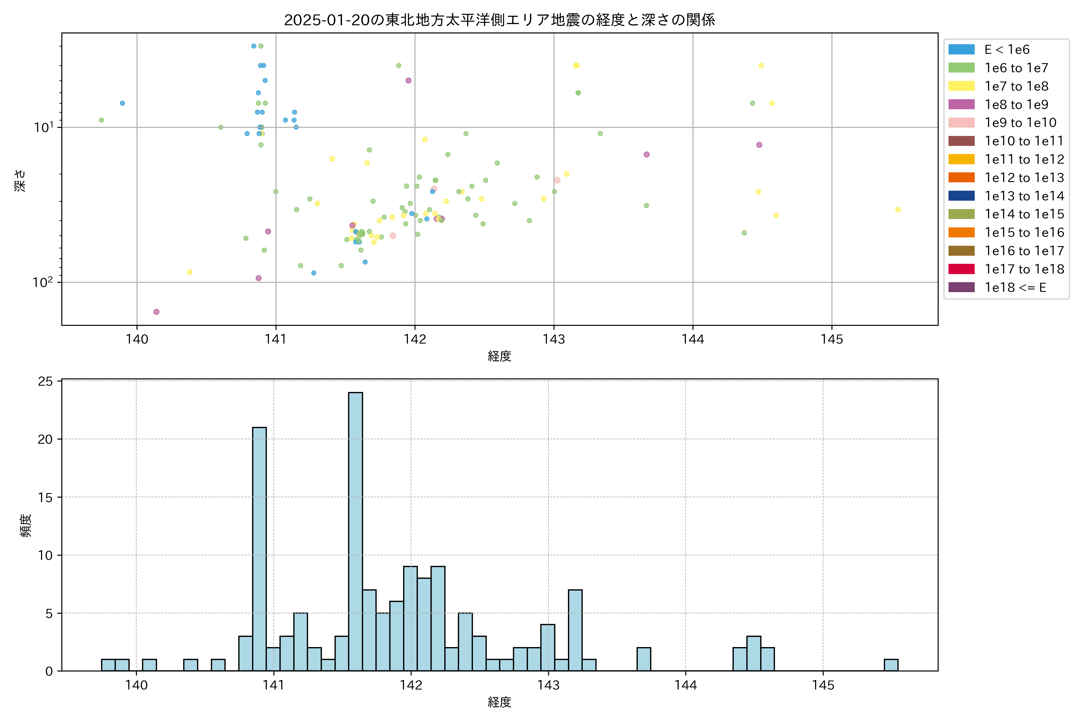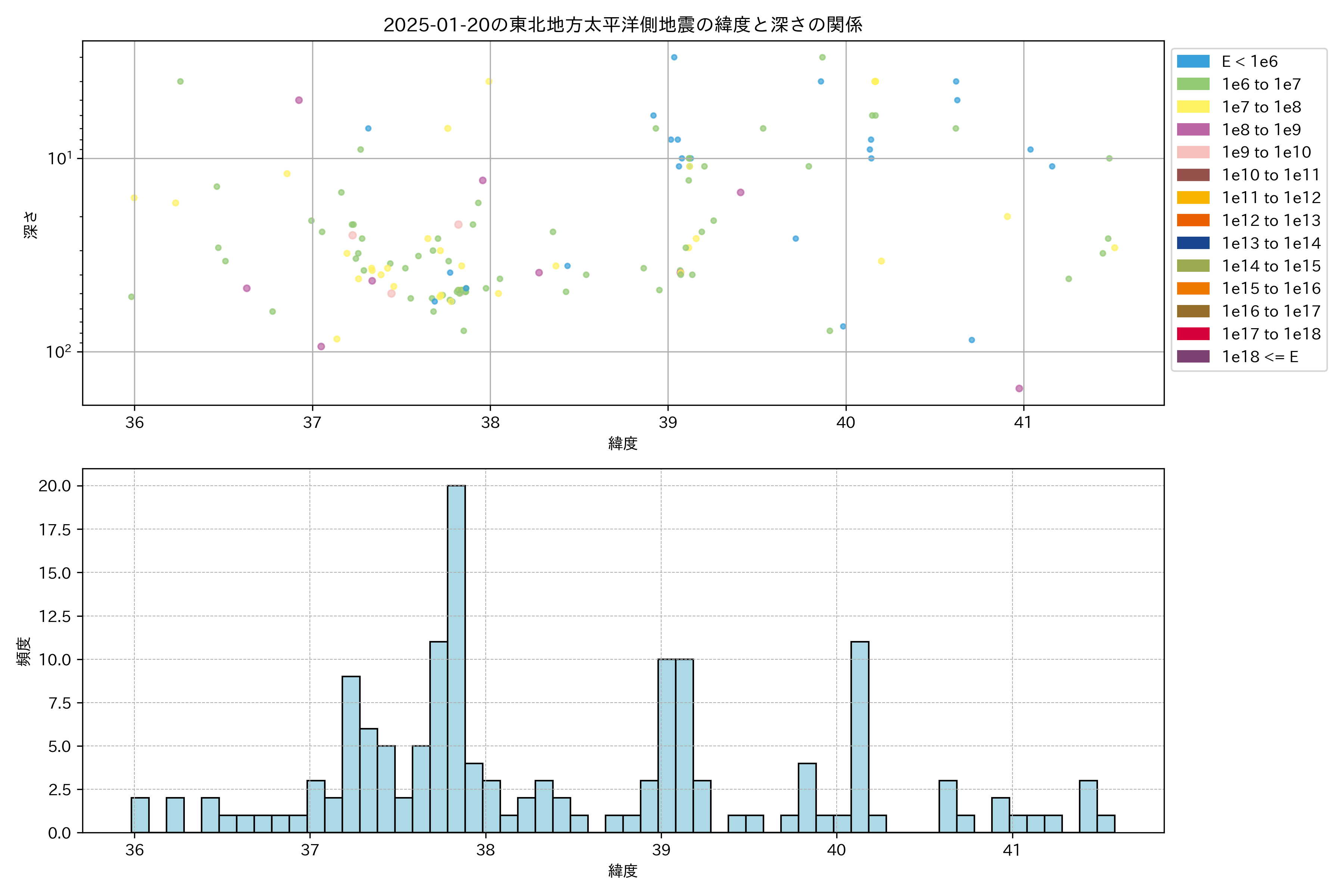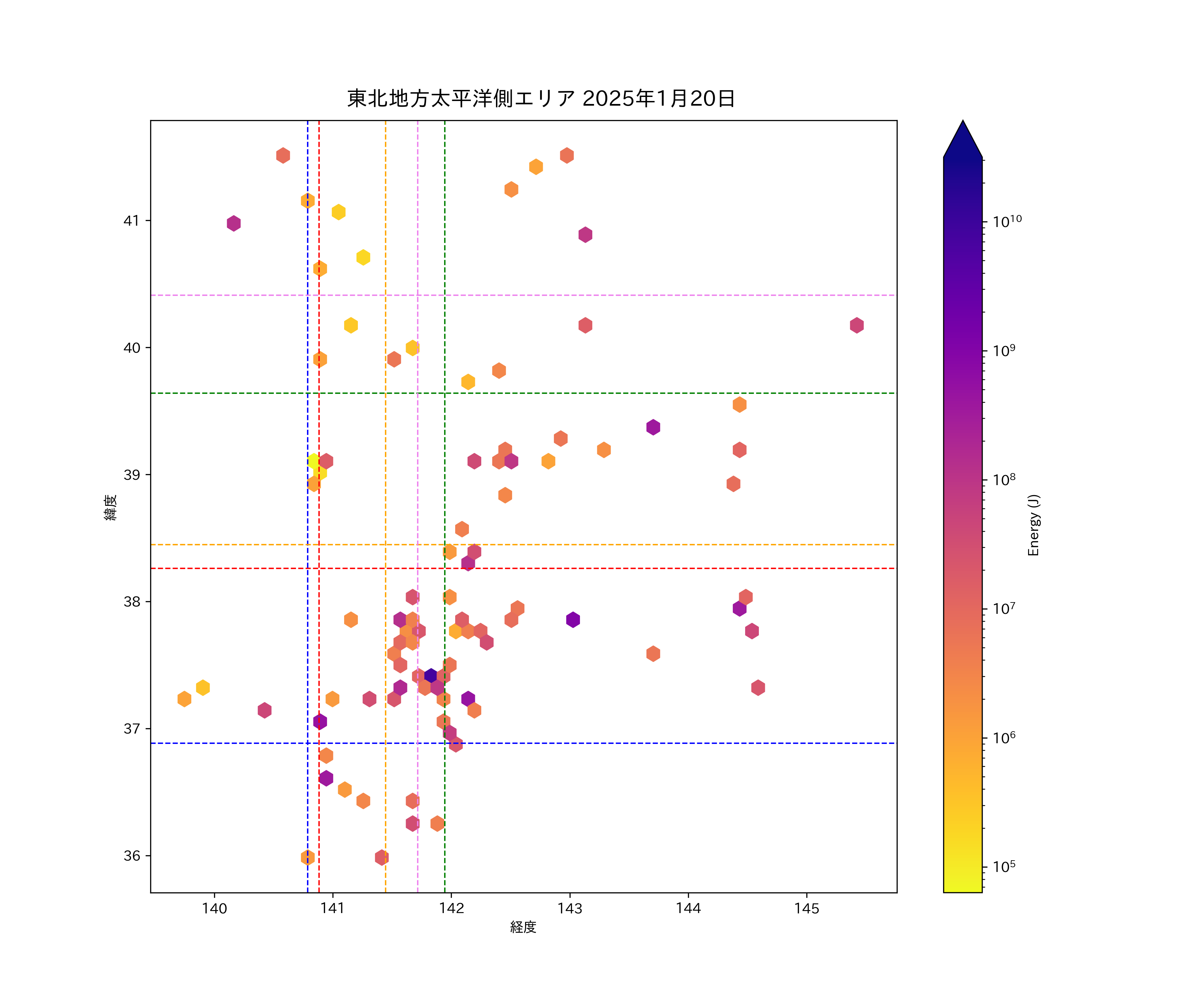 2025年01月20日東北太平洋側エリア震源マップ