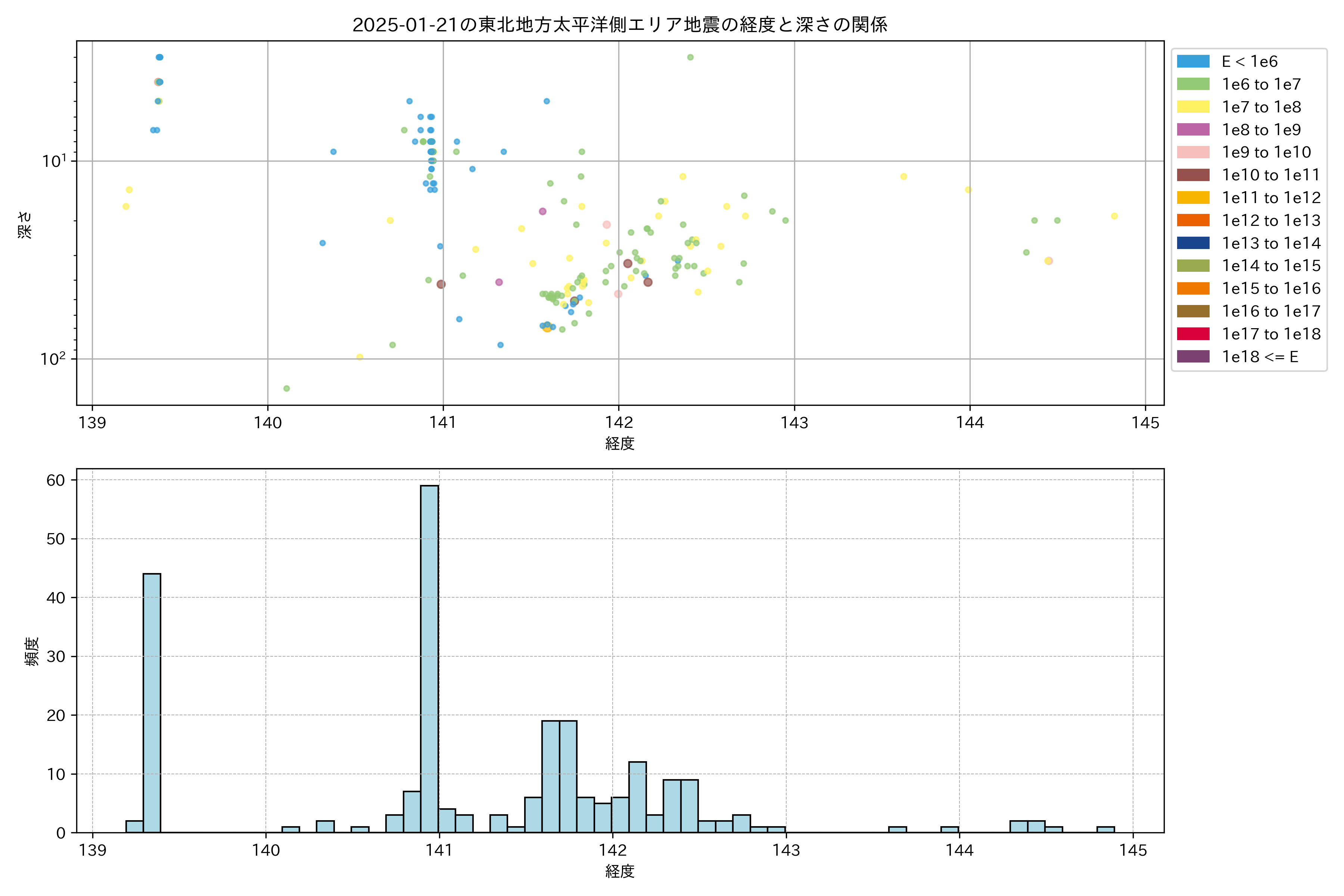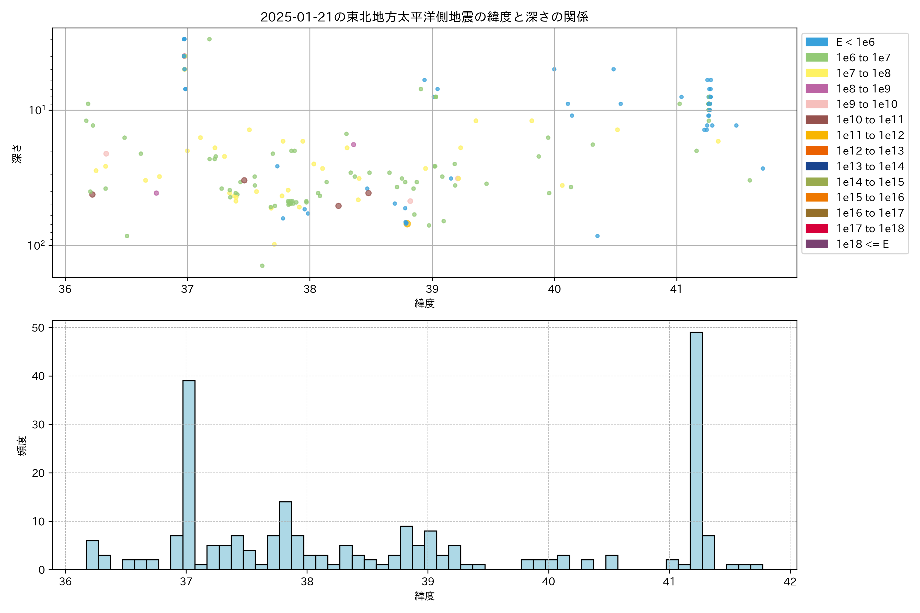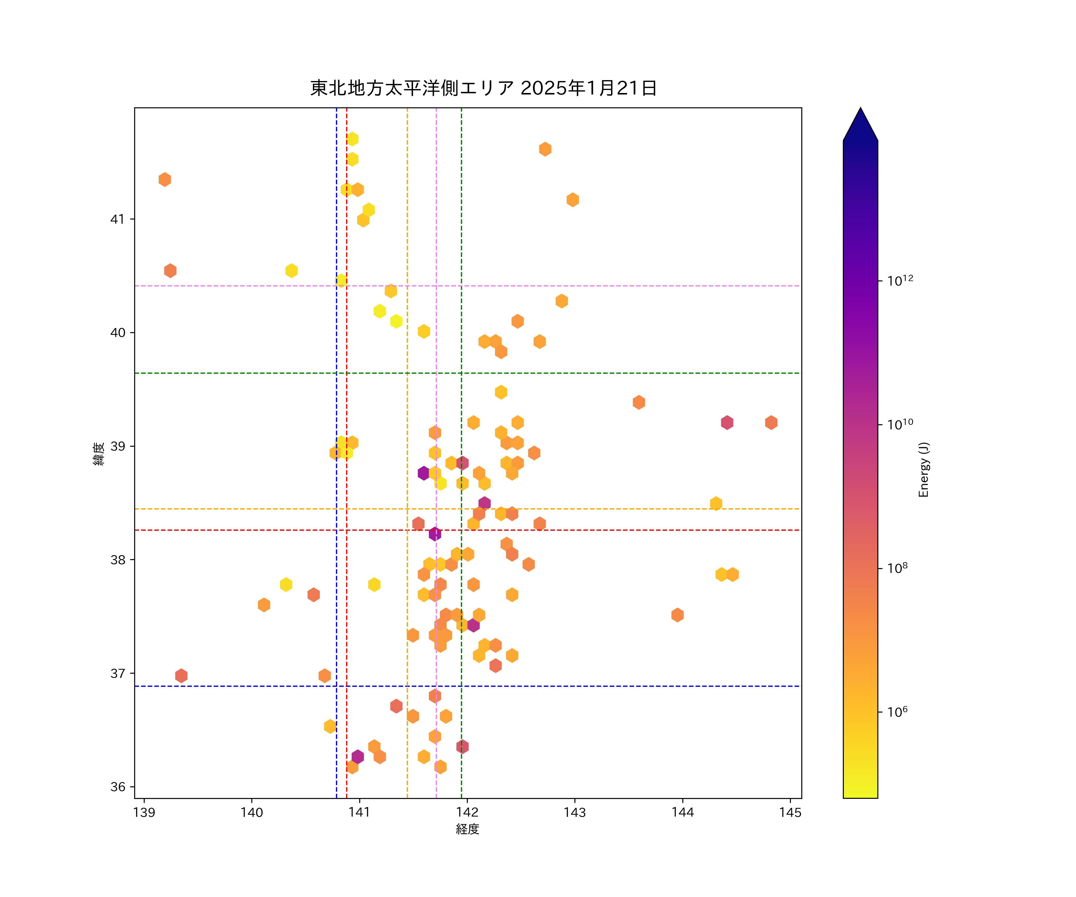 2025年01月21日東北太平洋側エリア震源マップ
