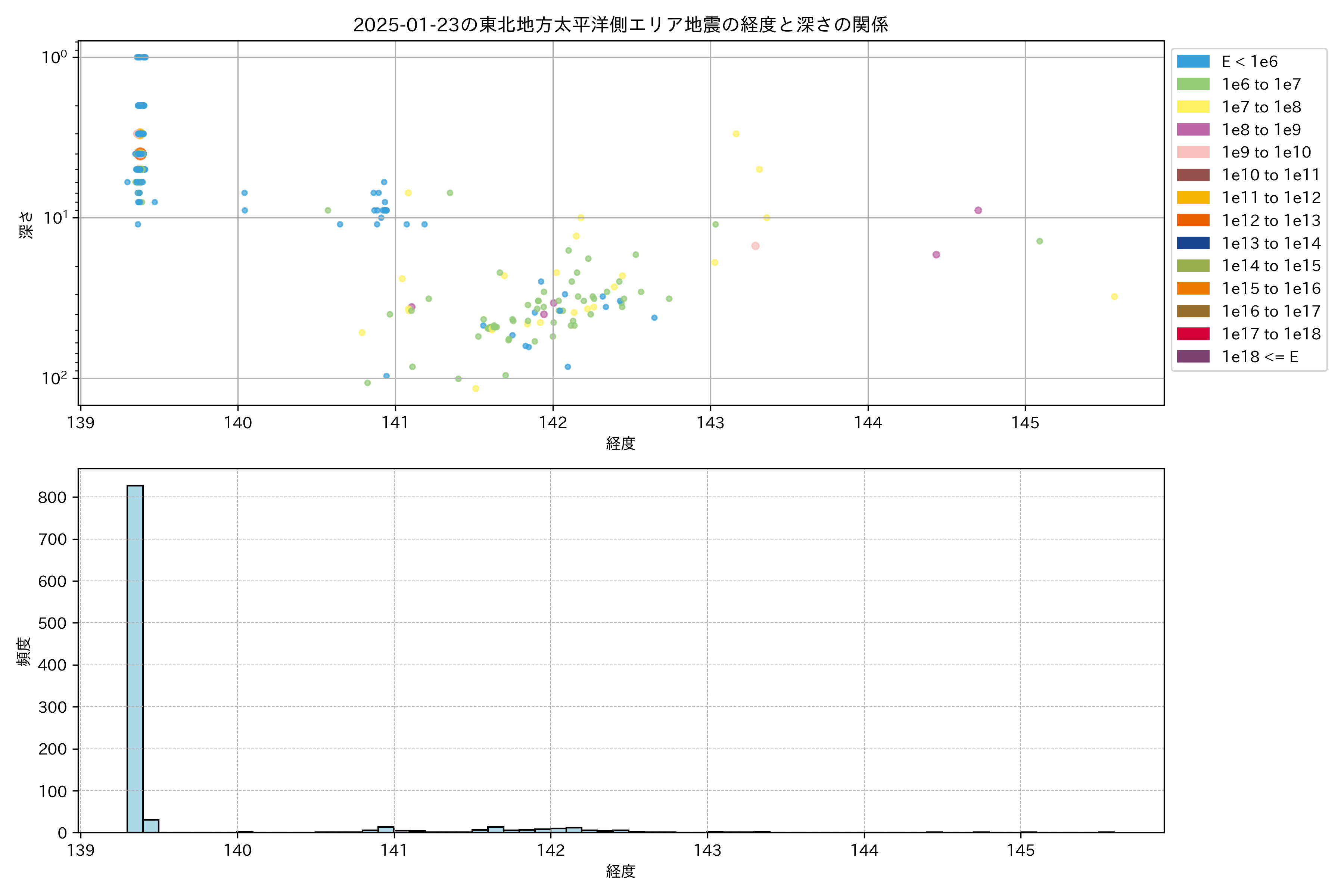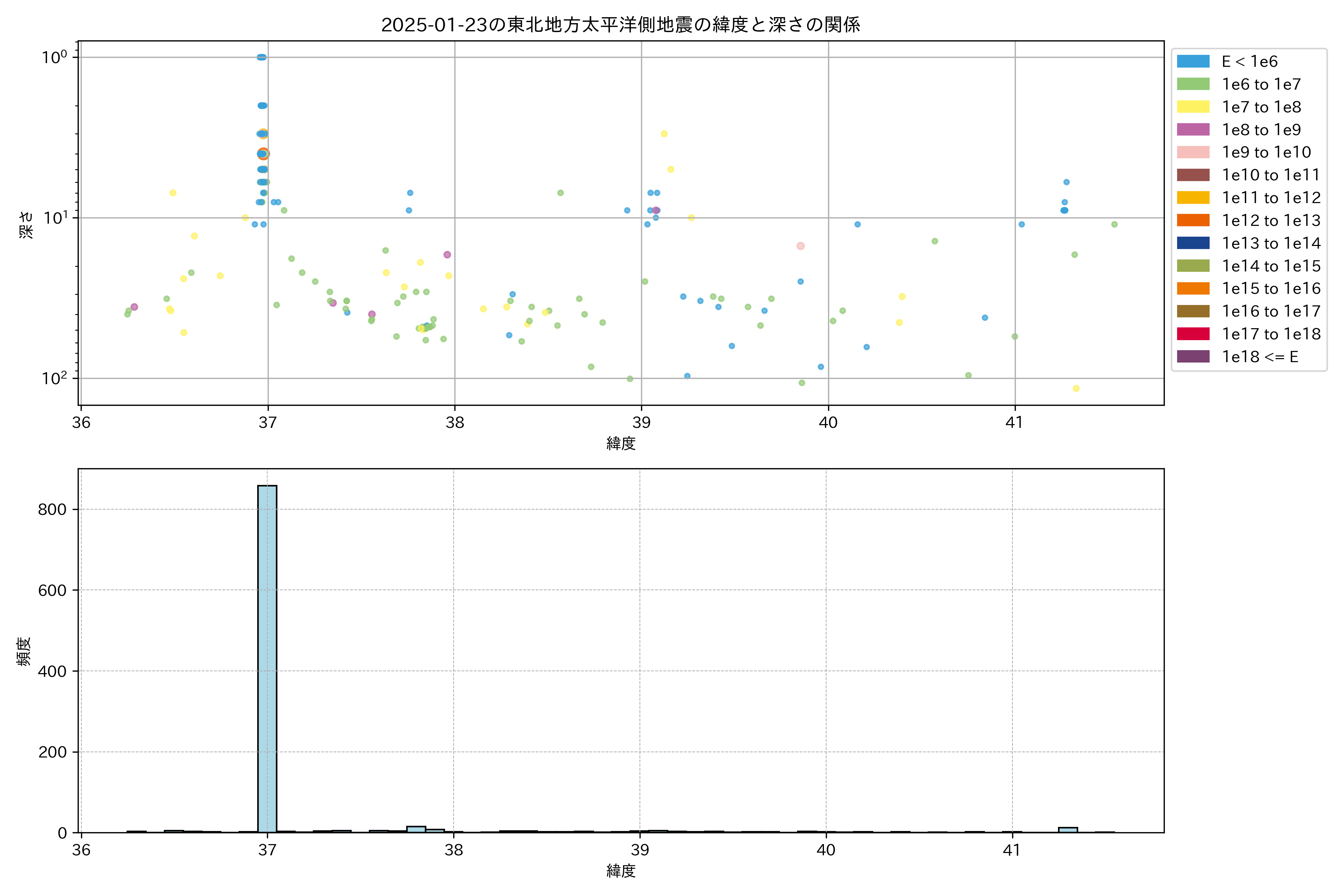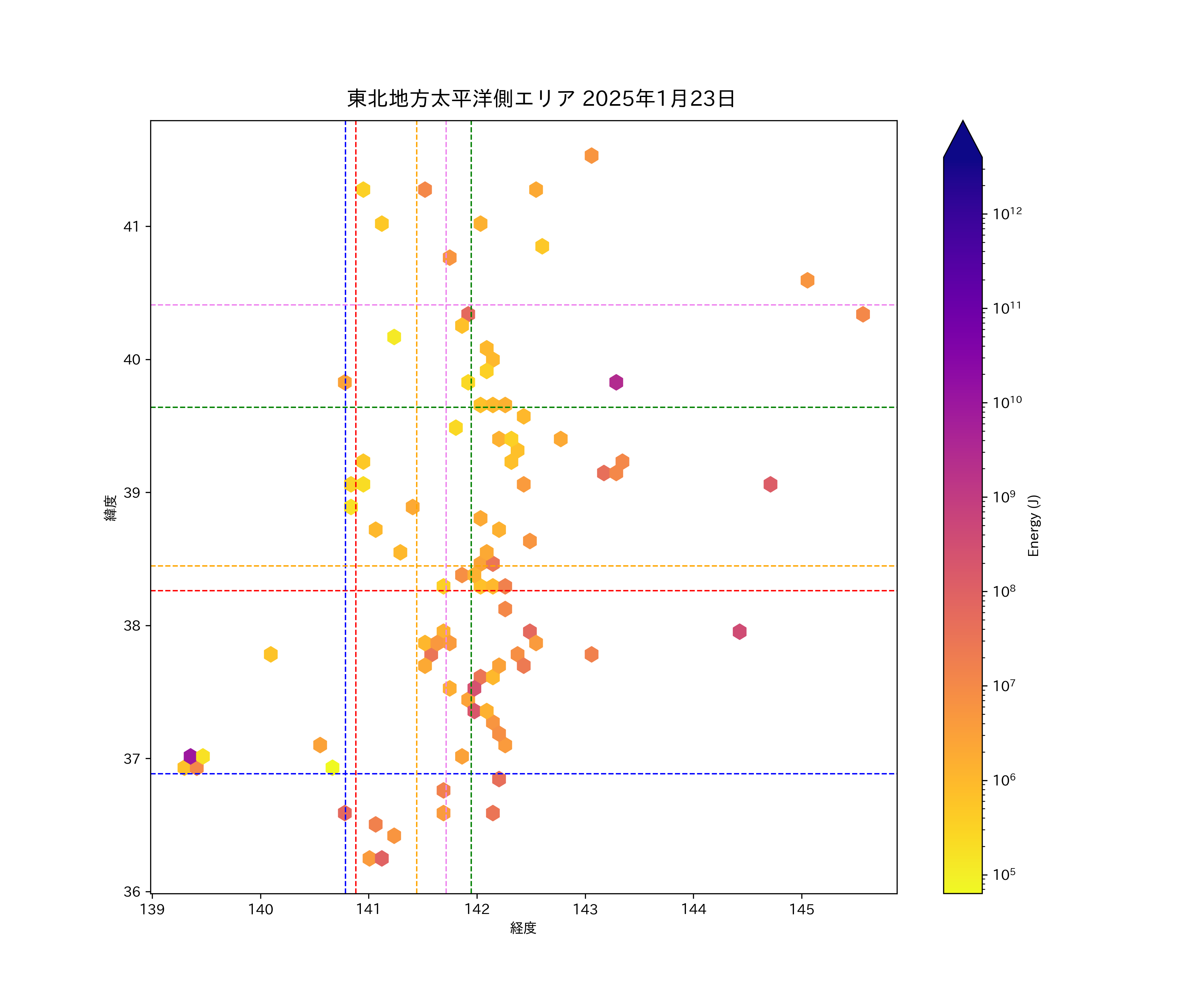 2025年01月23日東北太平洋側エリア震源マップ