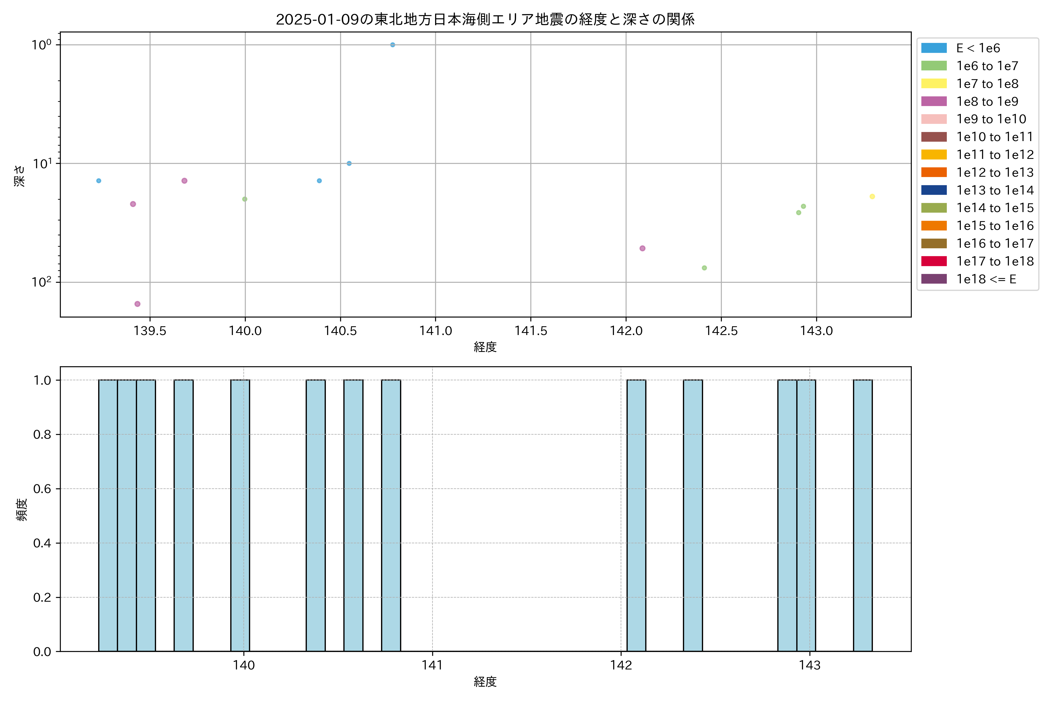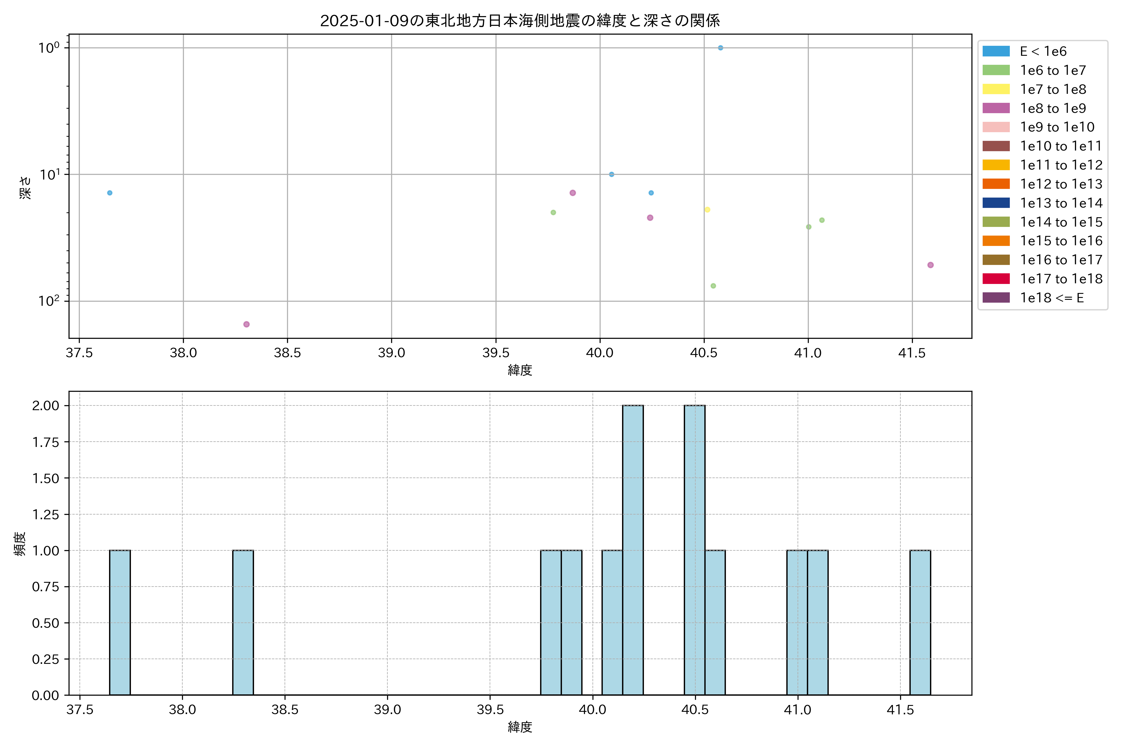2025年01月09日東北日本海側エリア震源マップ