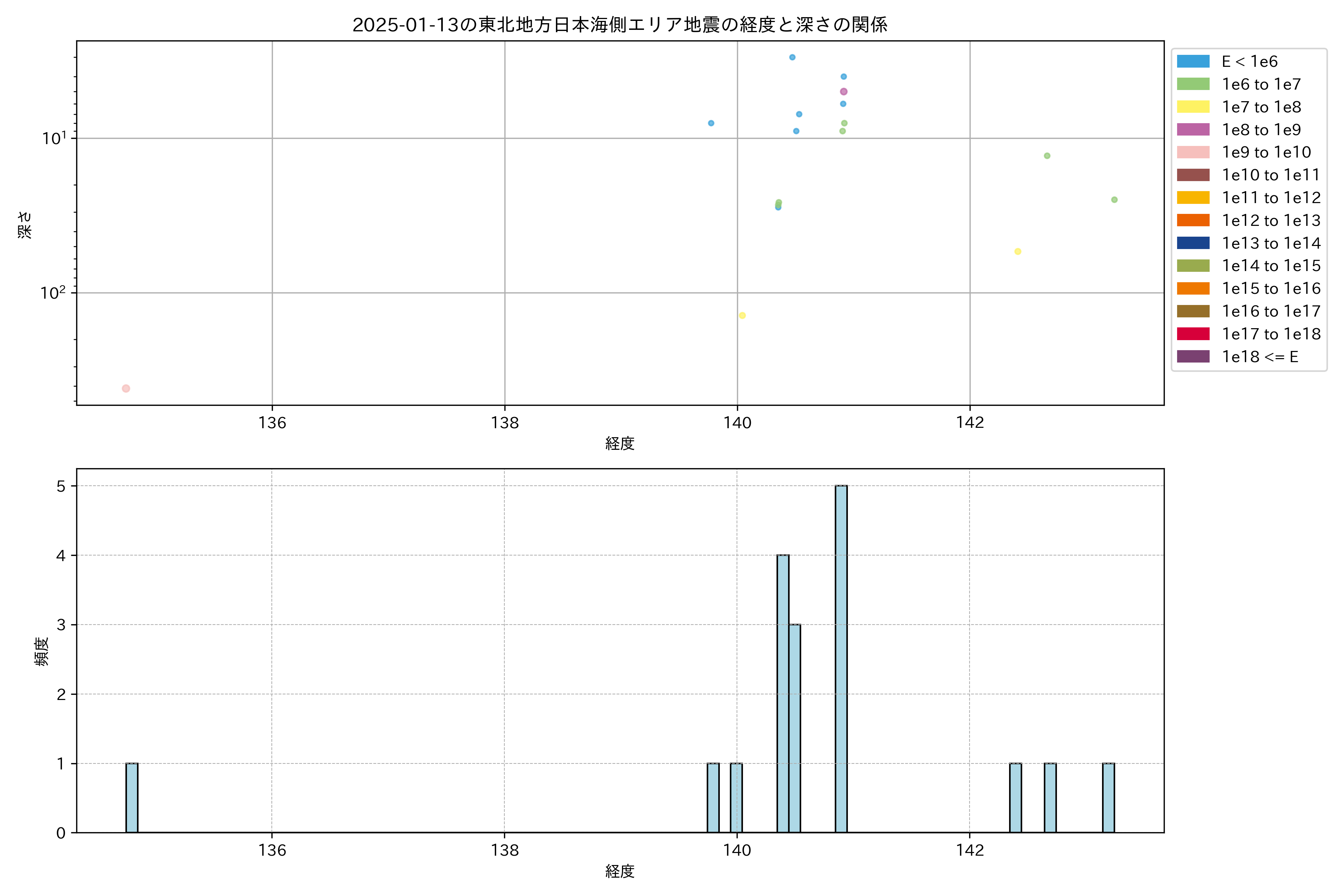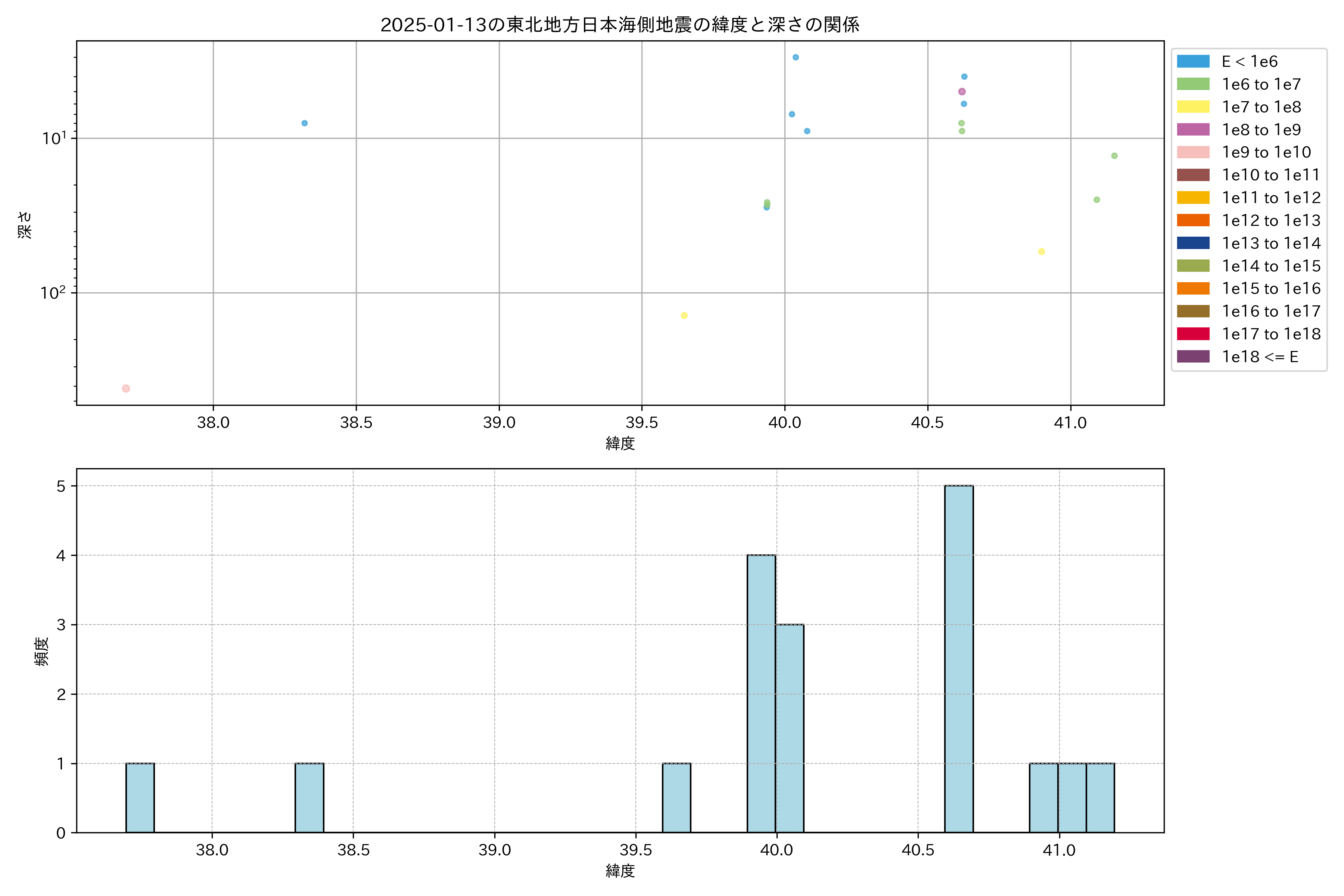 2025年01月13日東北日本海側エリア震源マップ