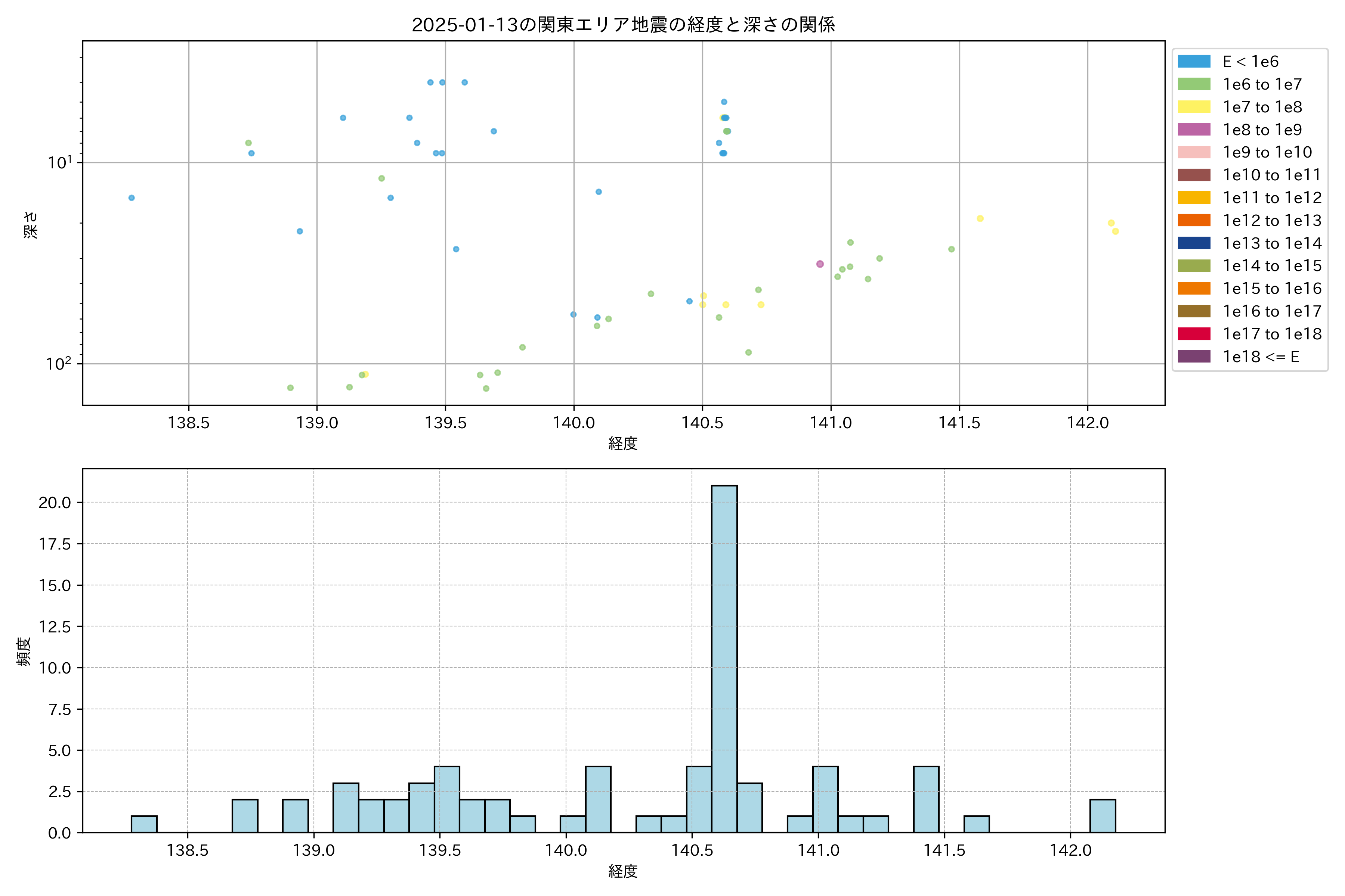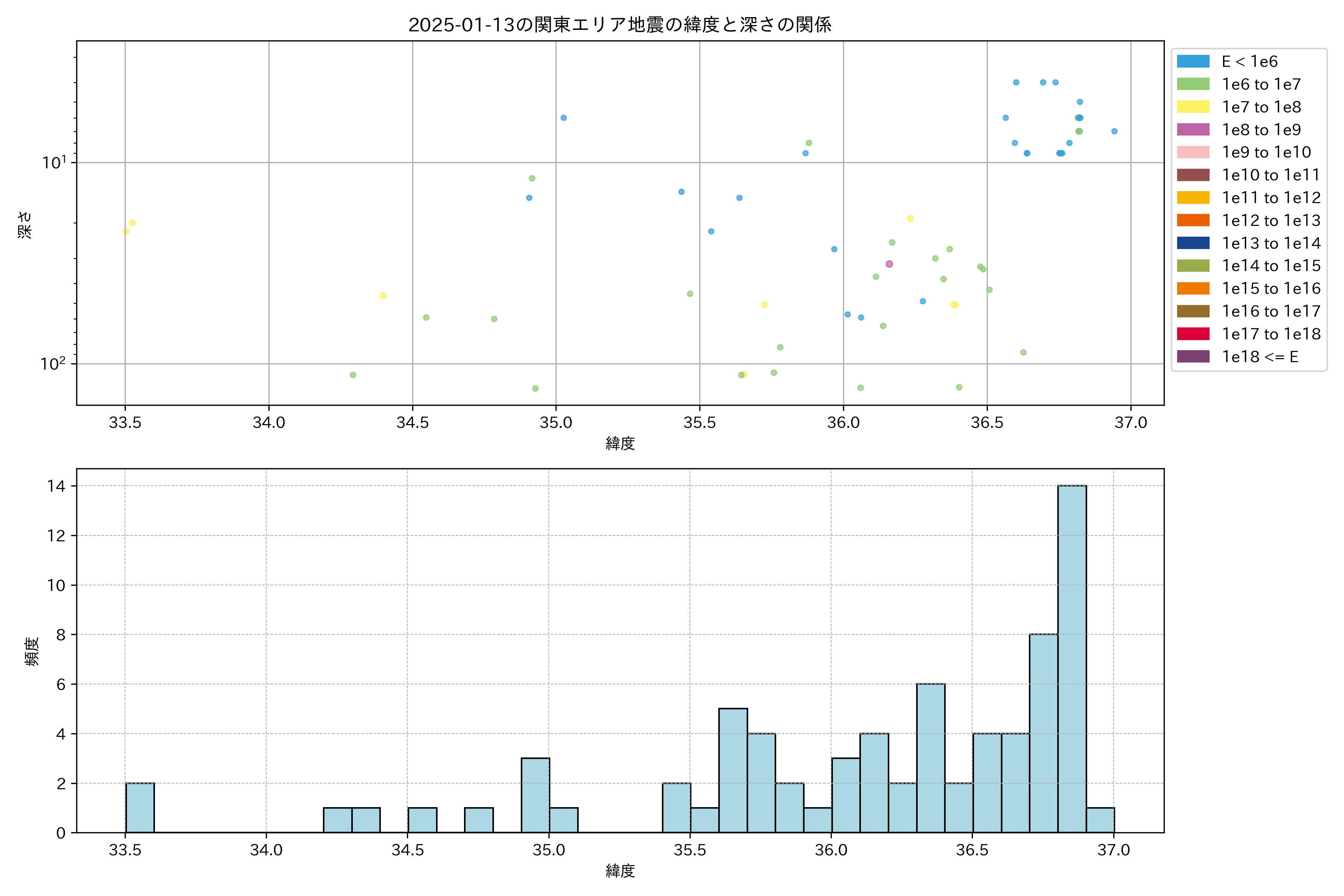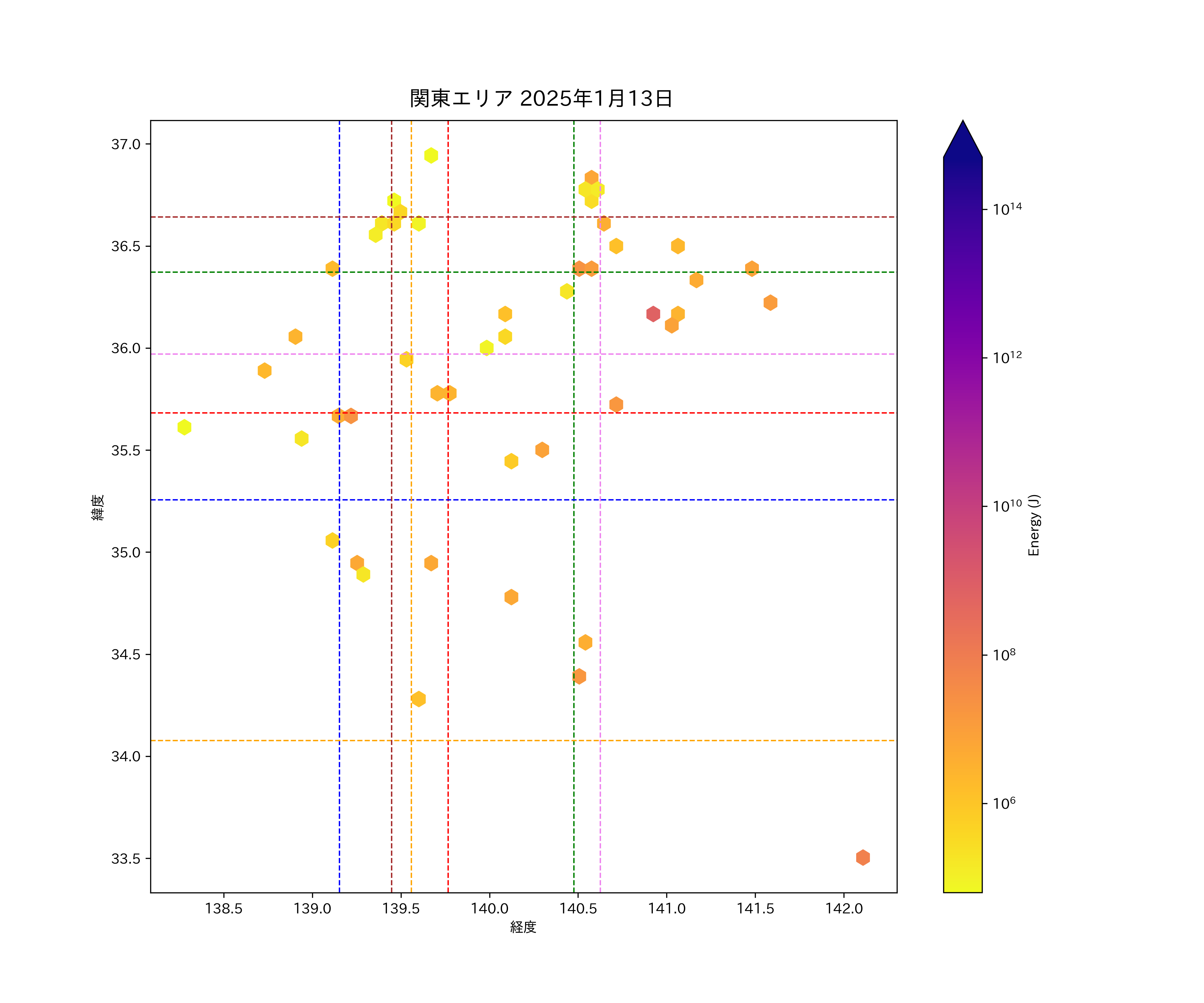 2025年01月13日関東エリア震源マップ