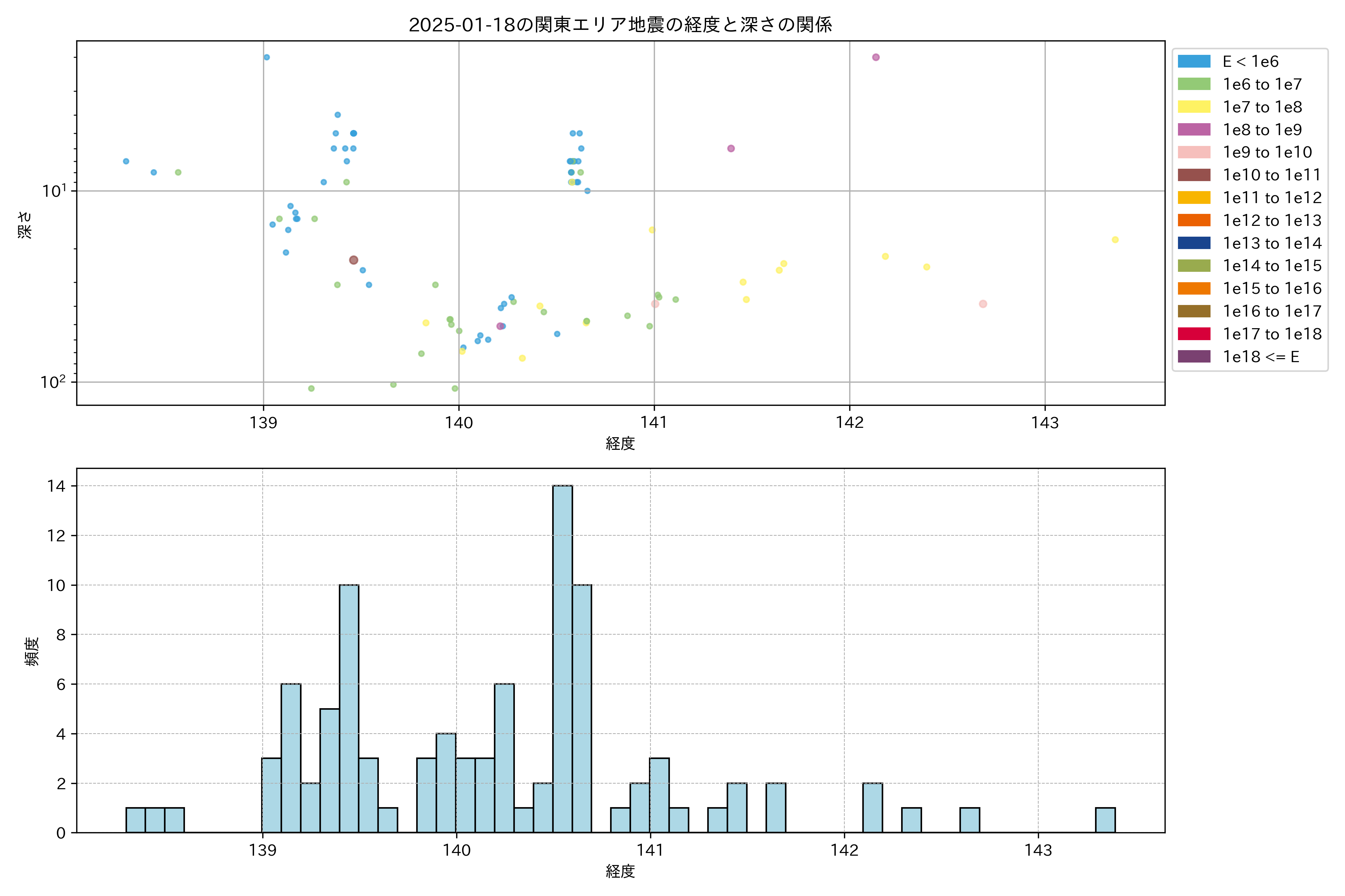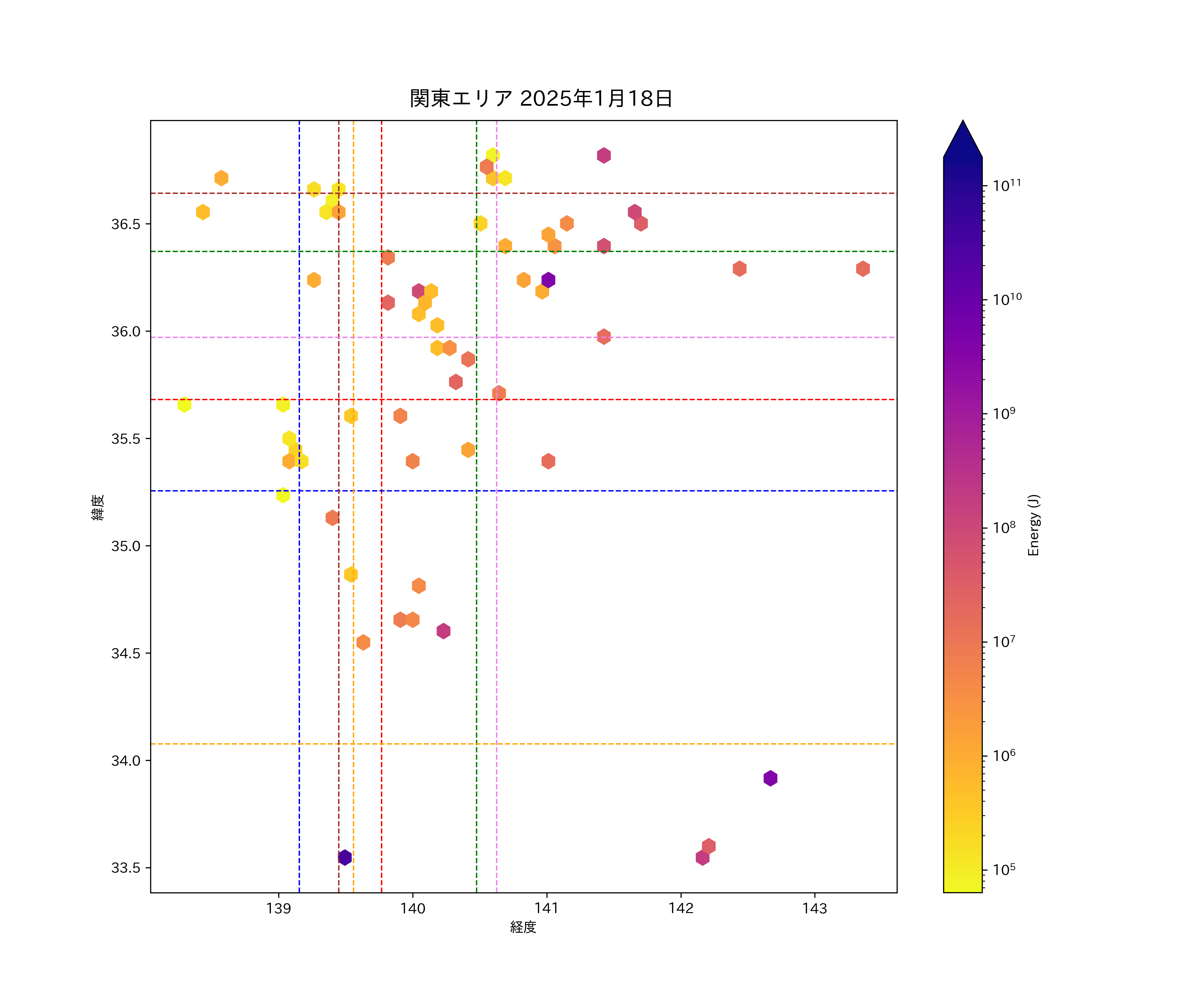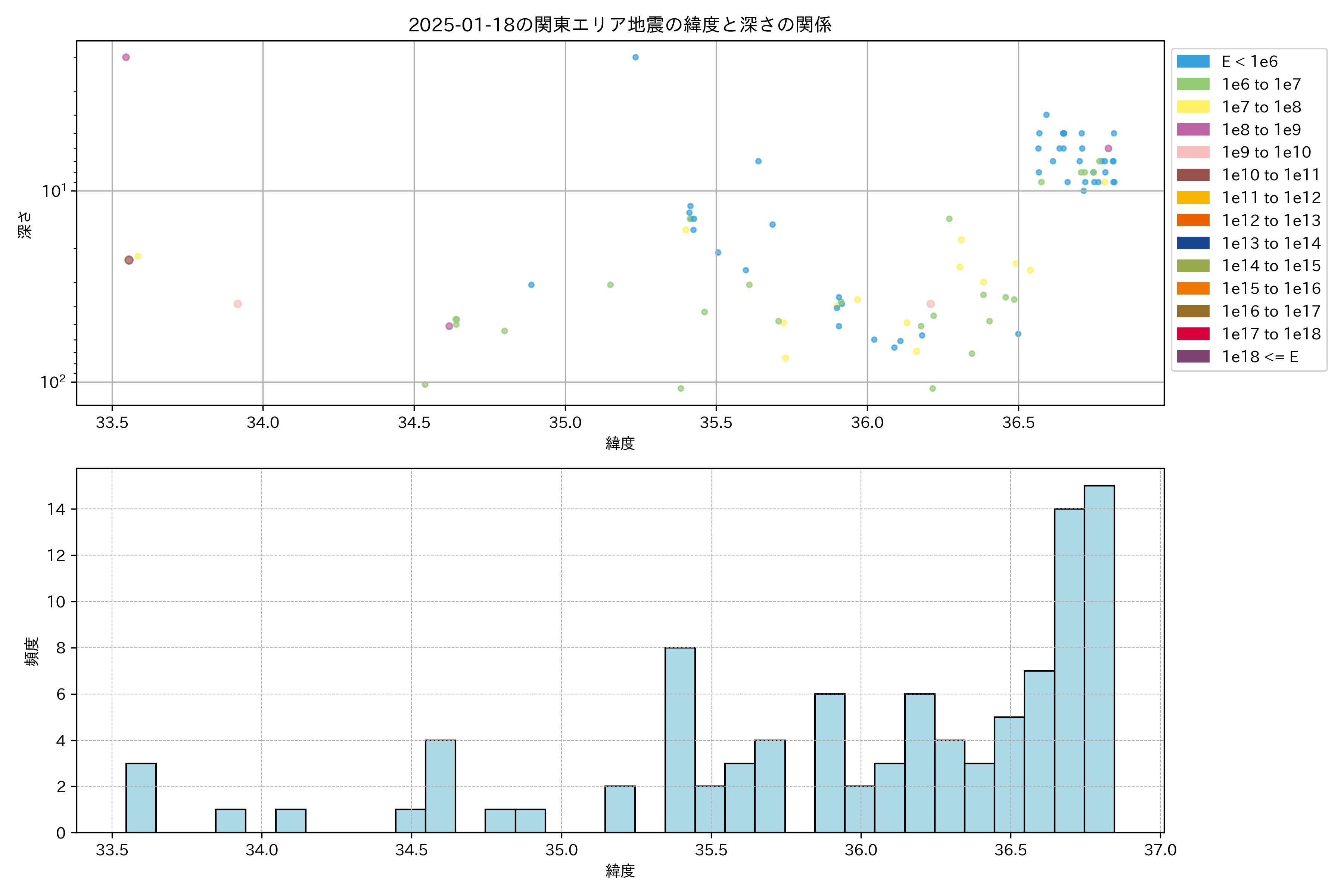 2025年01月18日関東エリア震源マップ