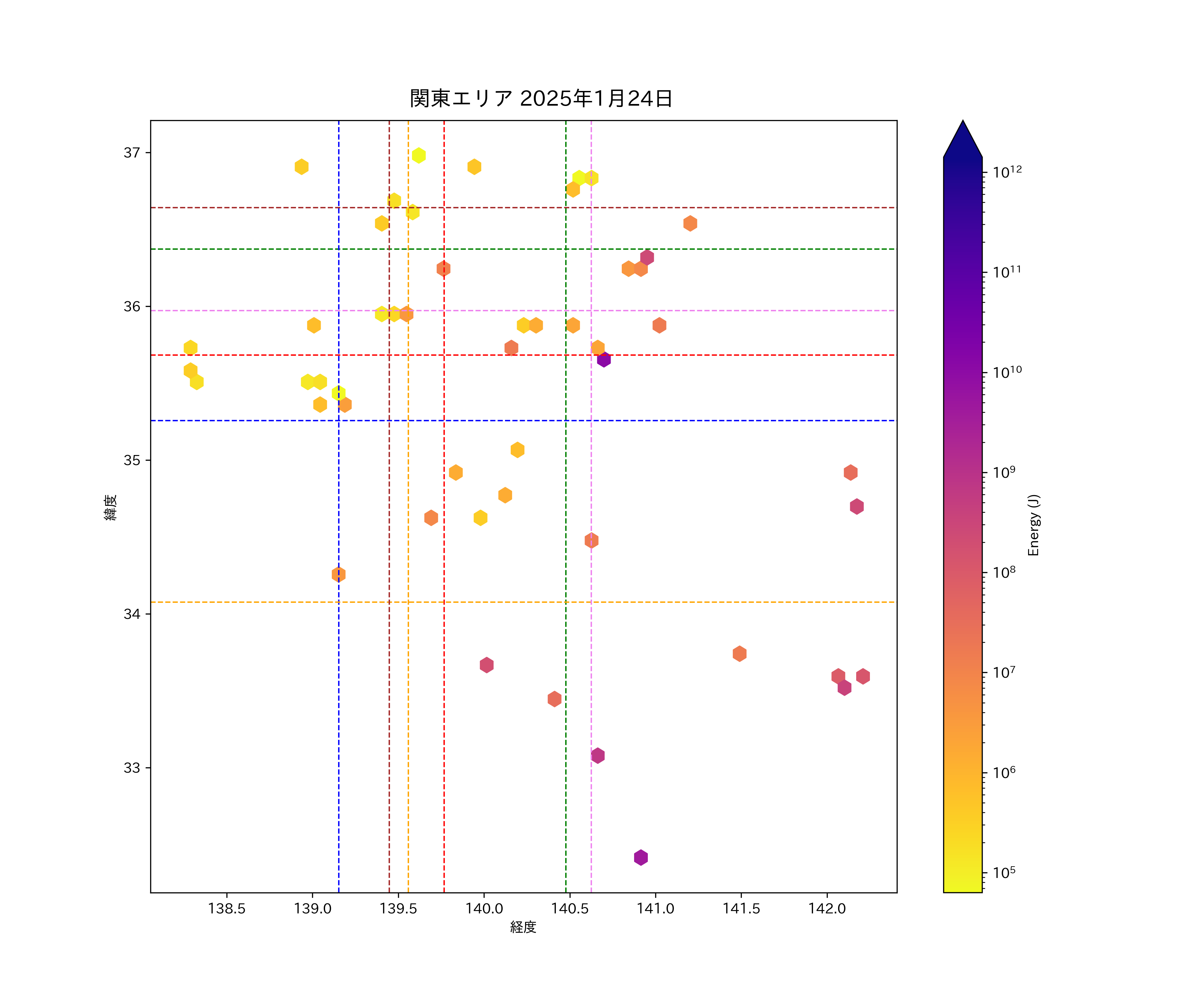 2025年01月24日関東エリア震源マップ