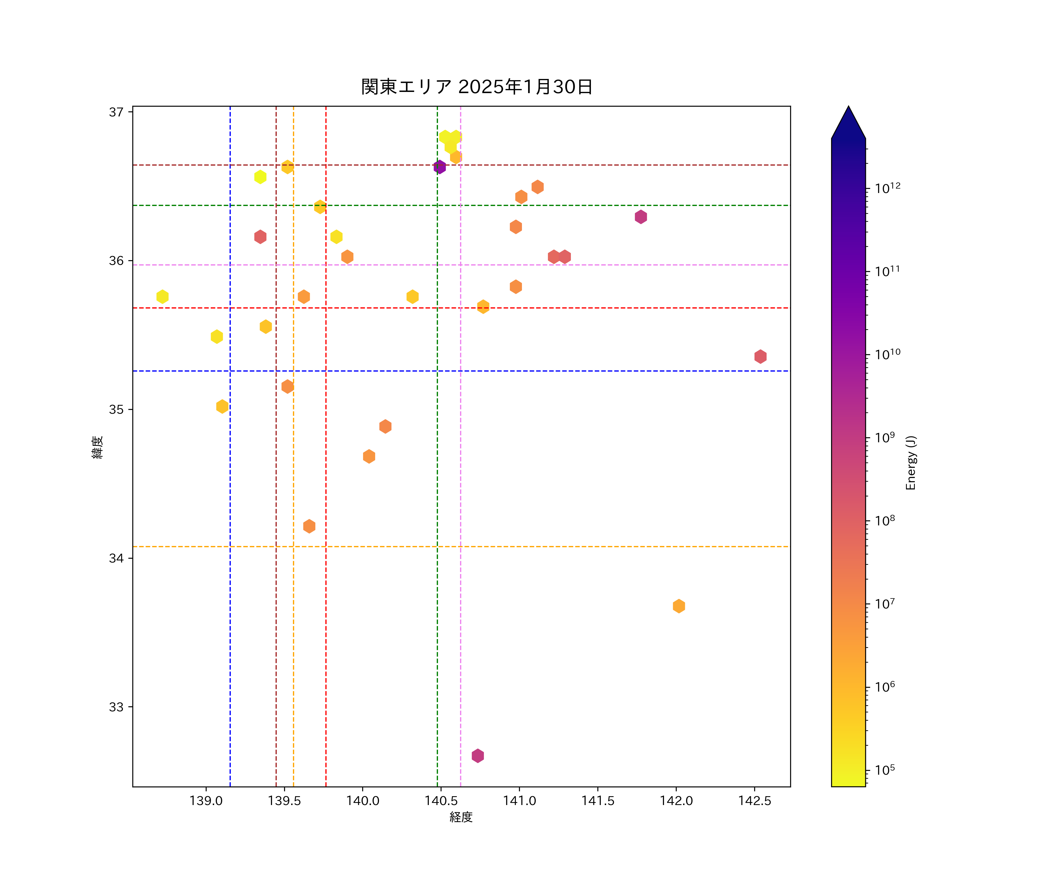 2025年01月30日関東エリア震源マップ
