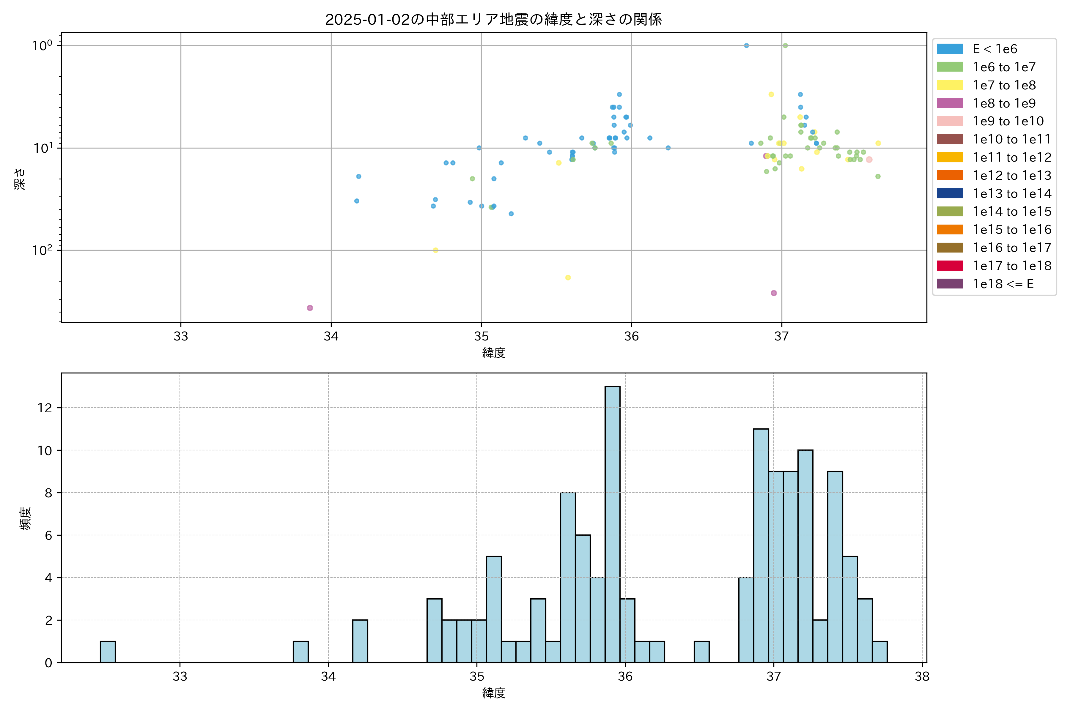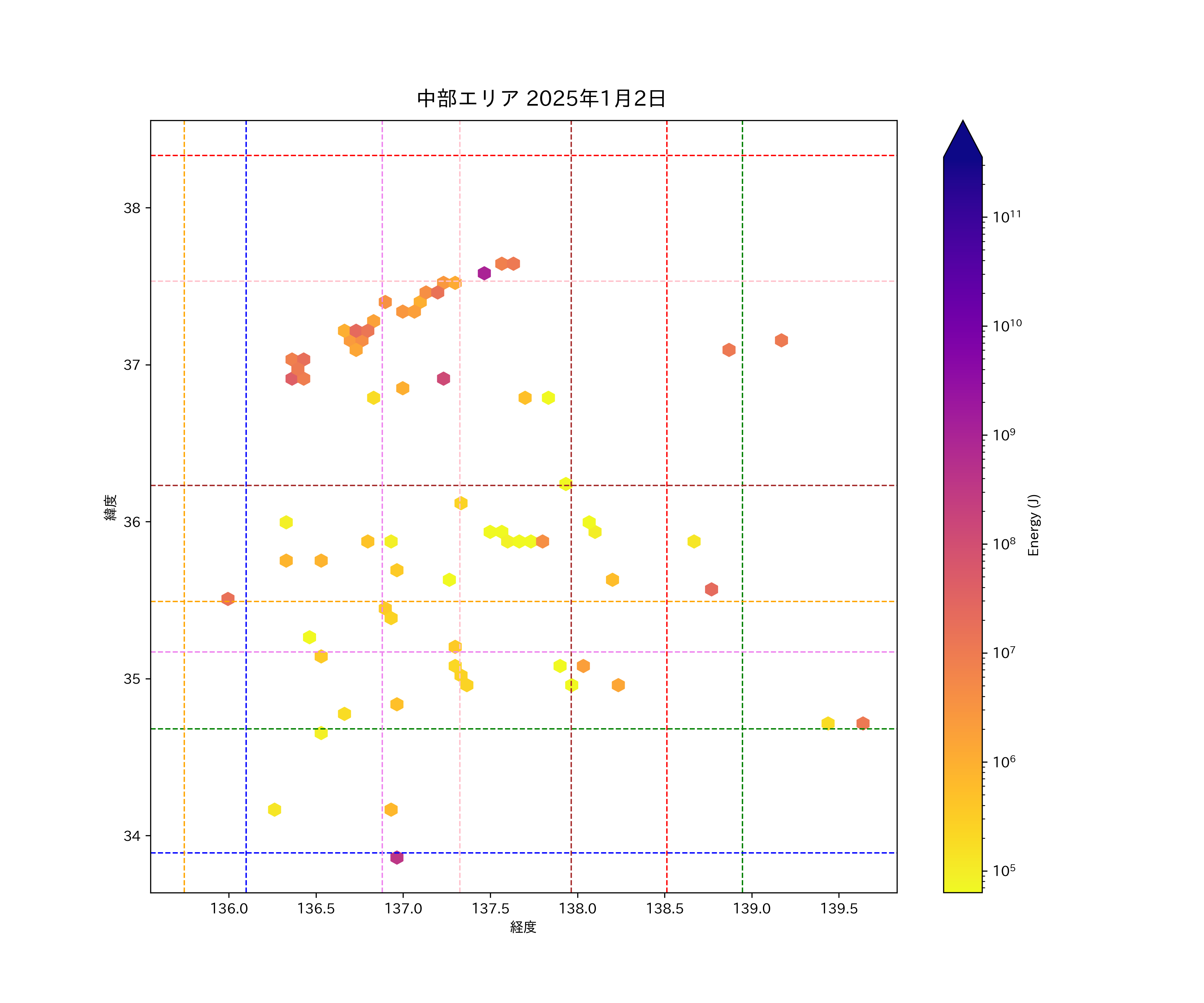 2025年01月02日中部エリア震源マップ