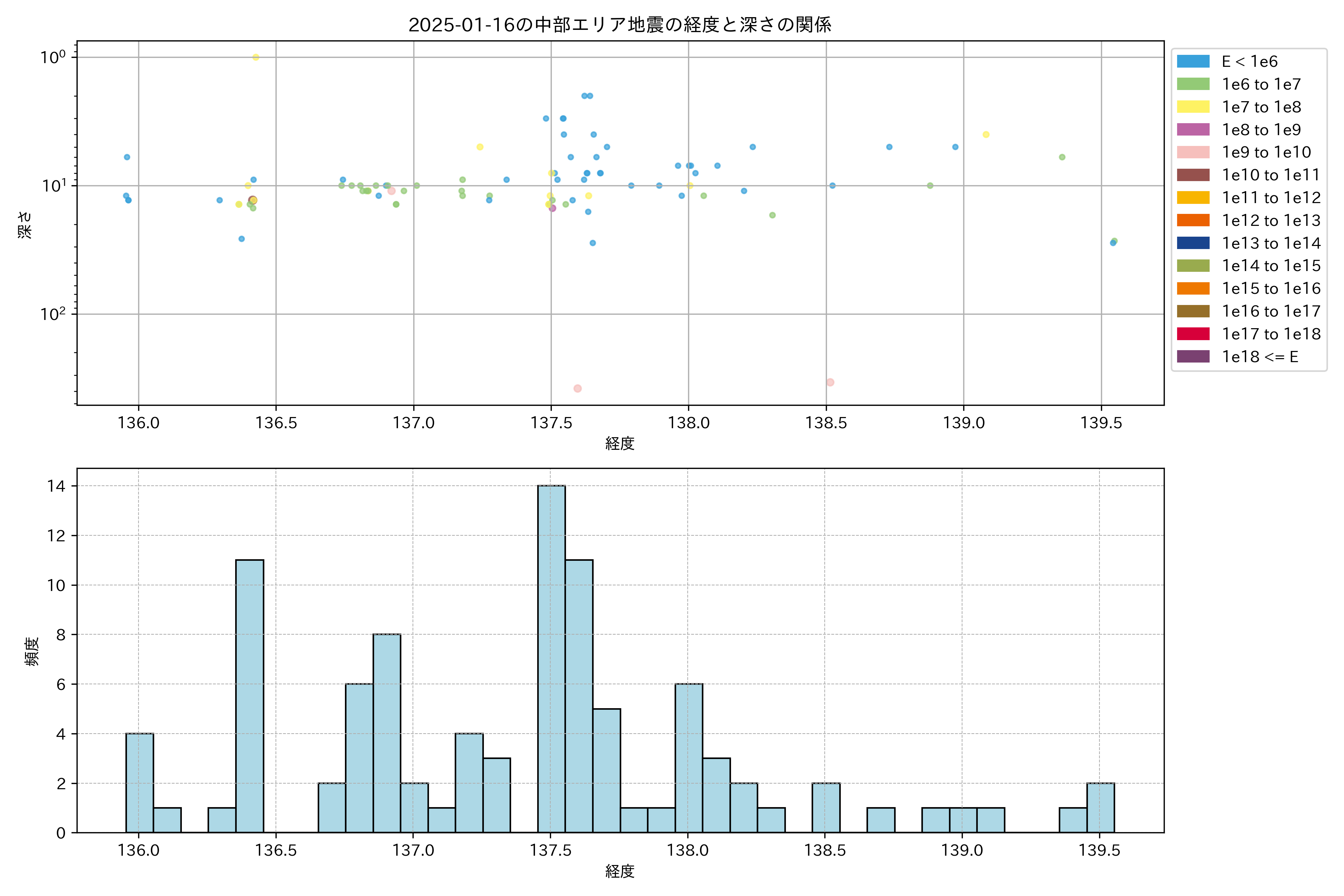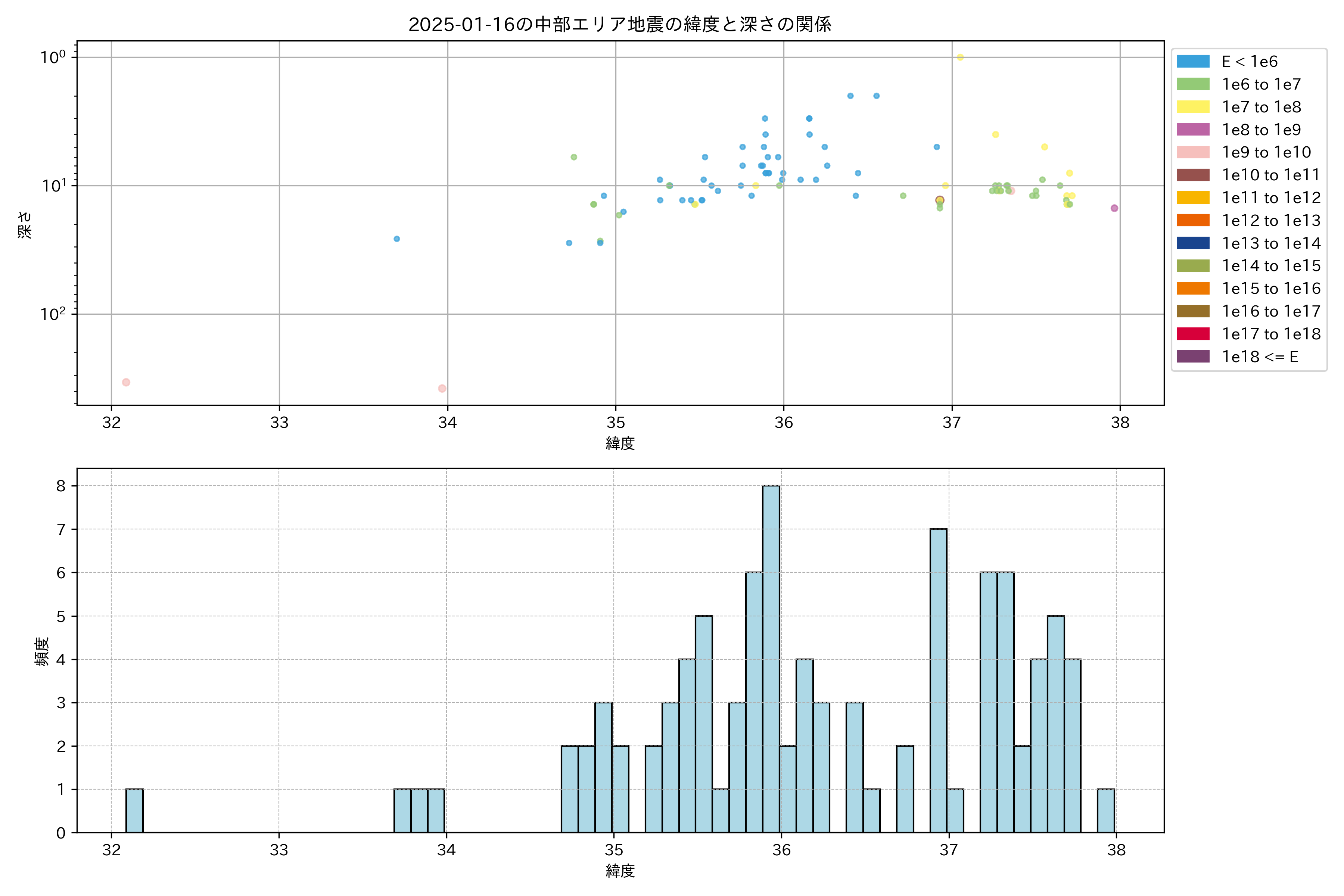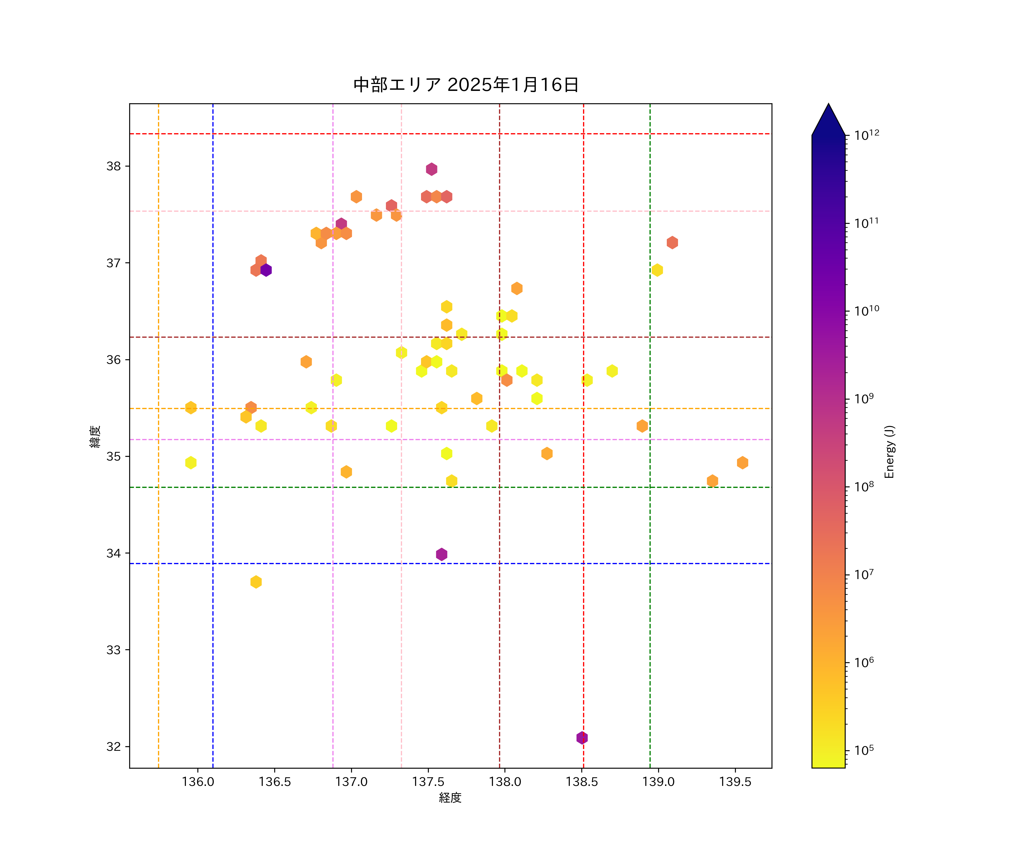 2025年01月16日中部エリア震源マップ