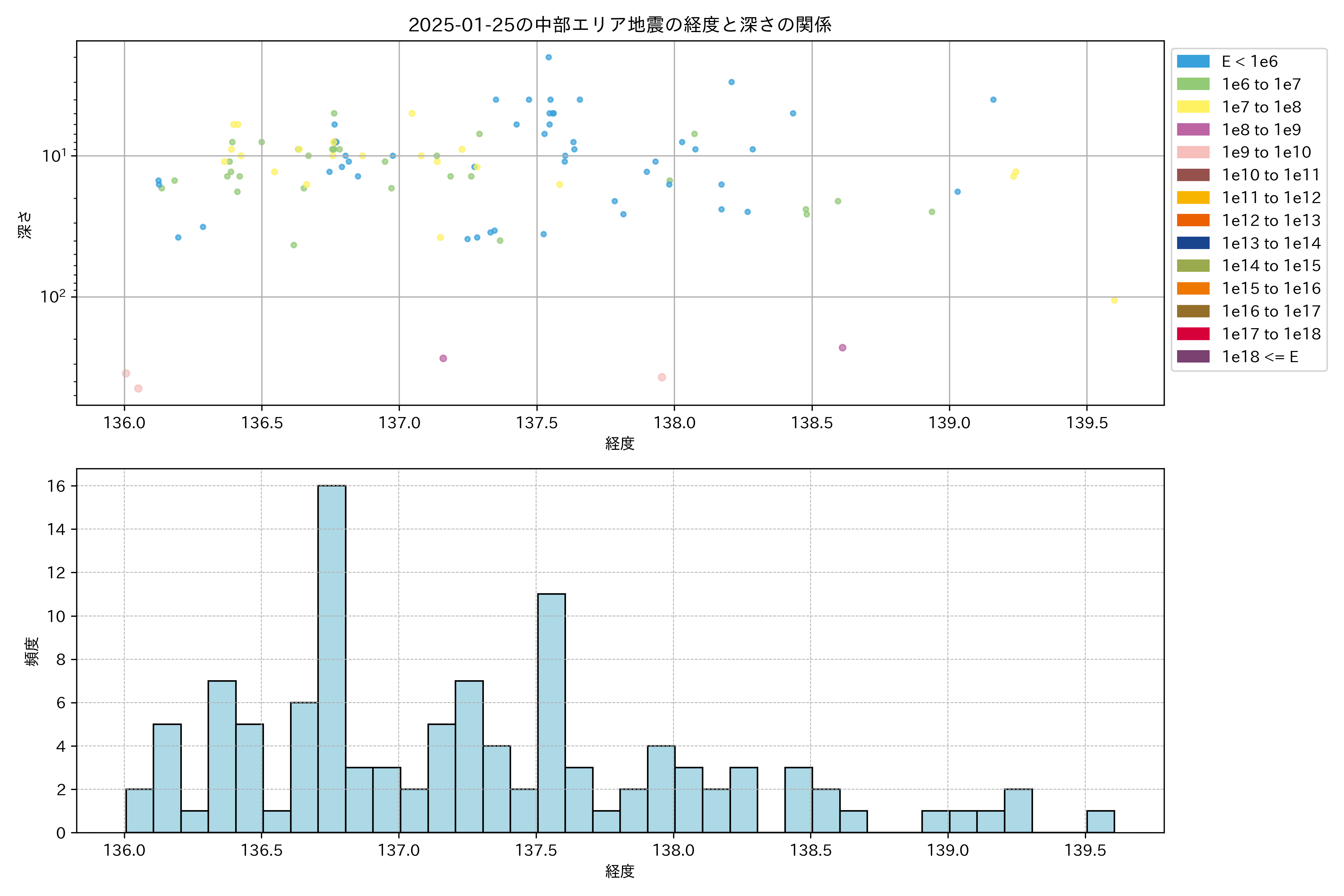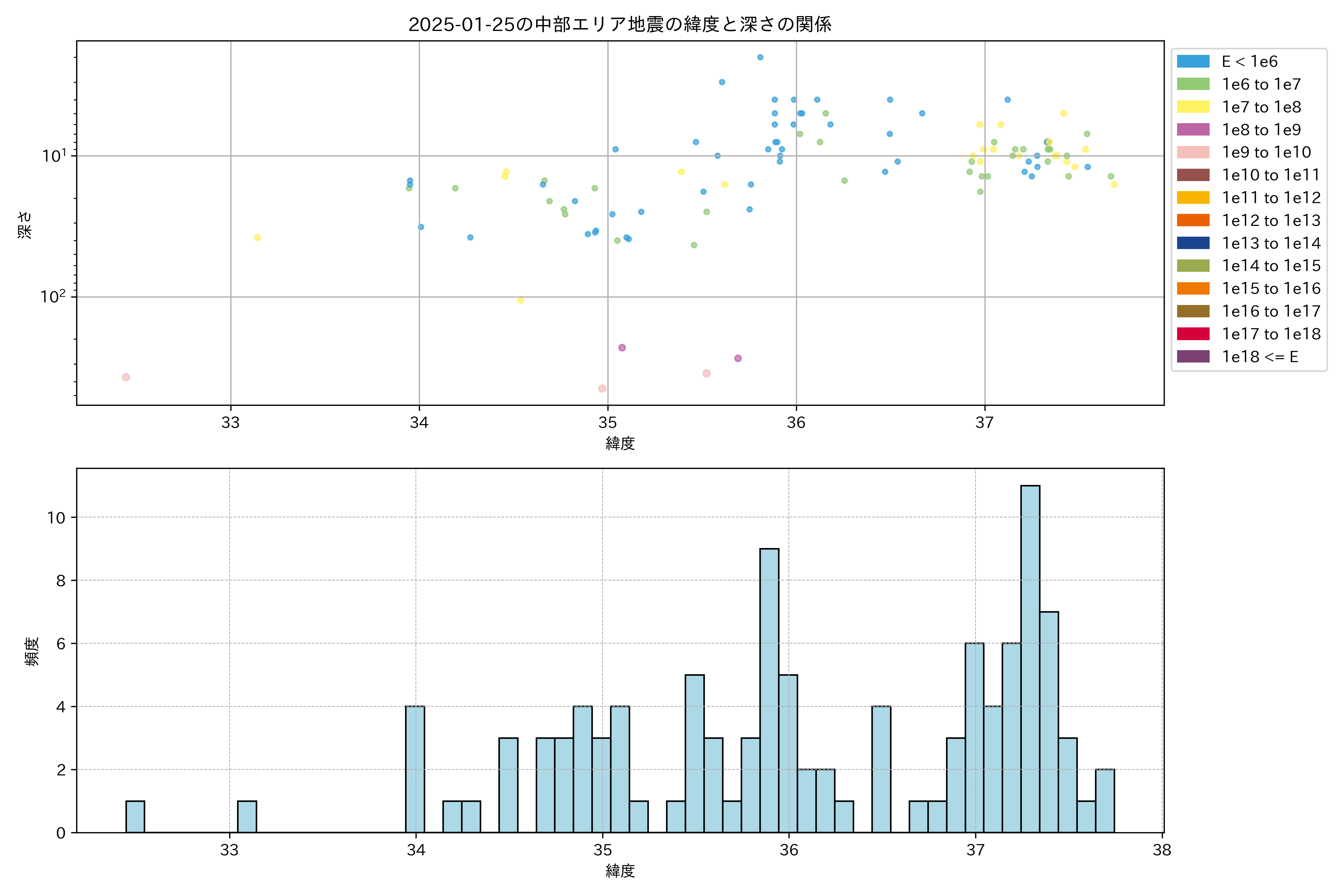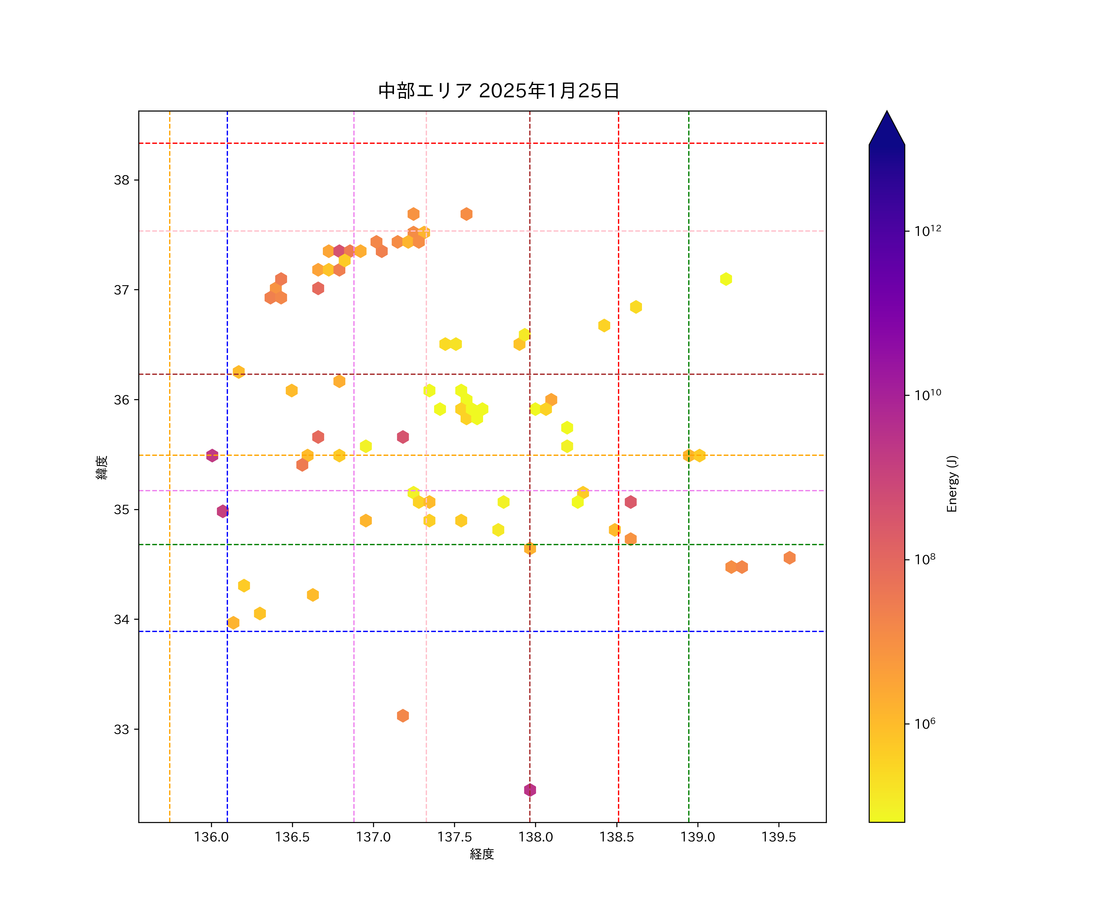 2025年01月25日中部エリア震源マップ
