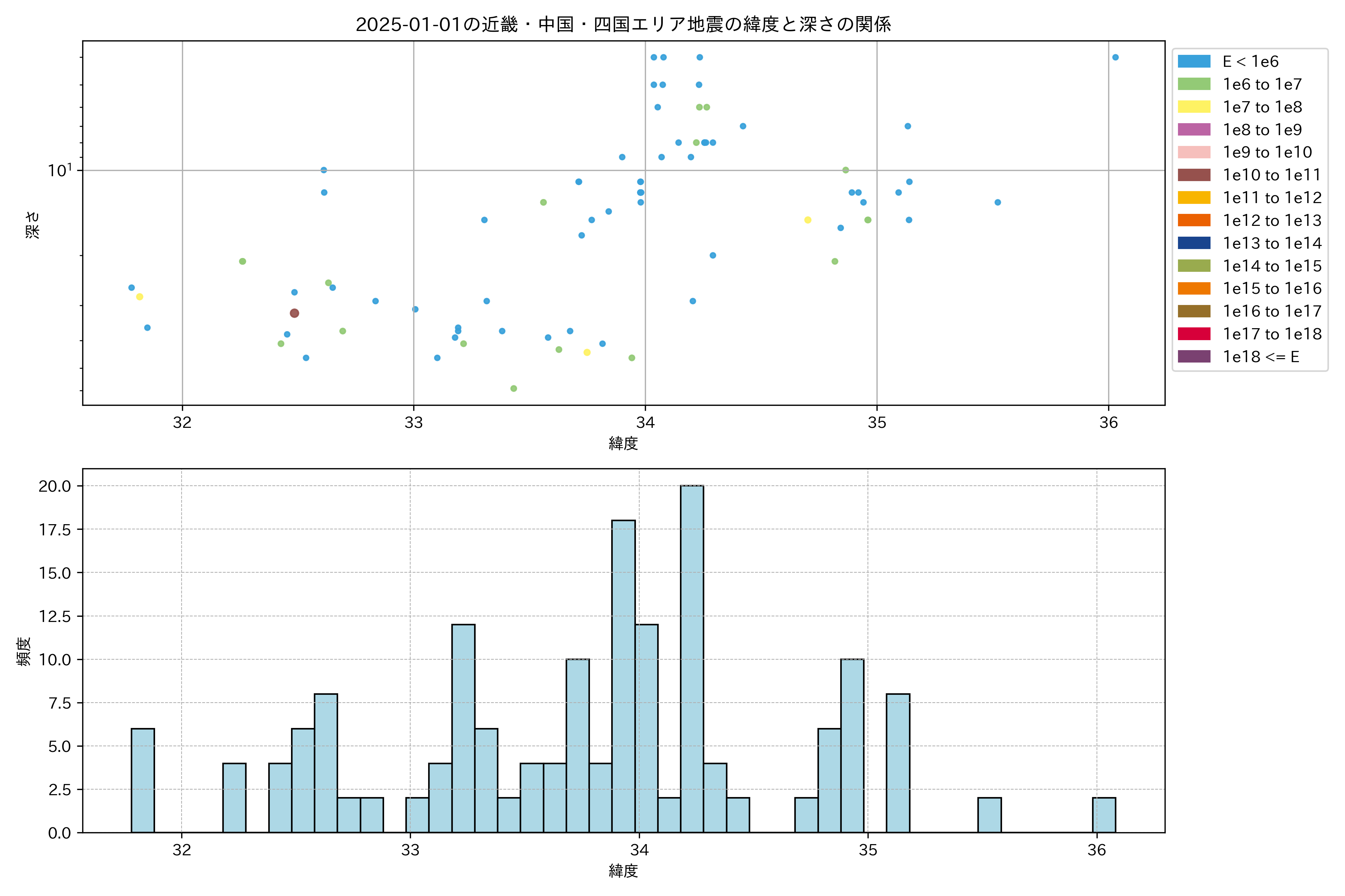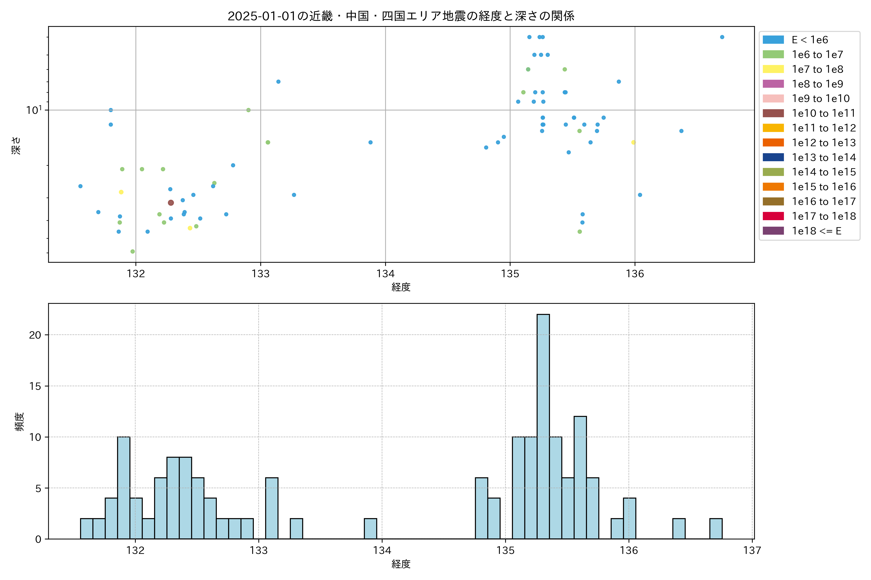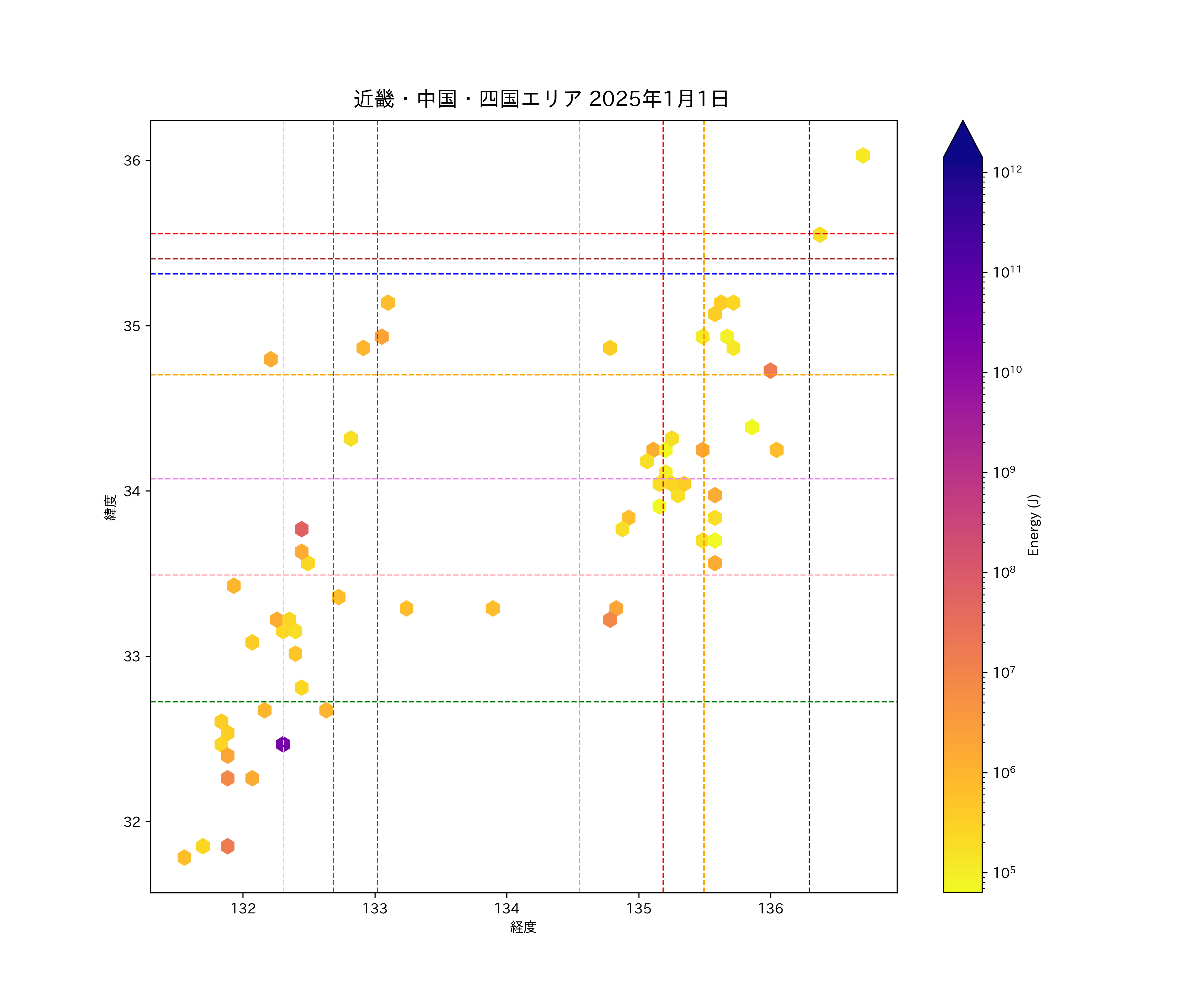 2025年01月01日近畿・中国・四国エリア震源マップ