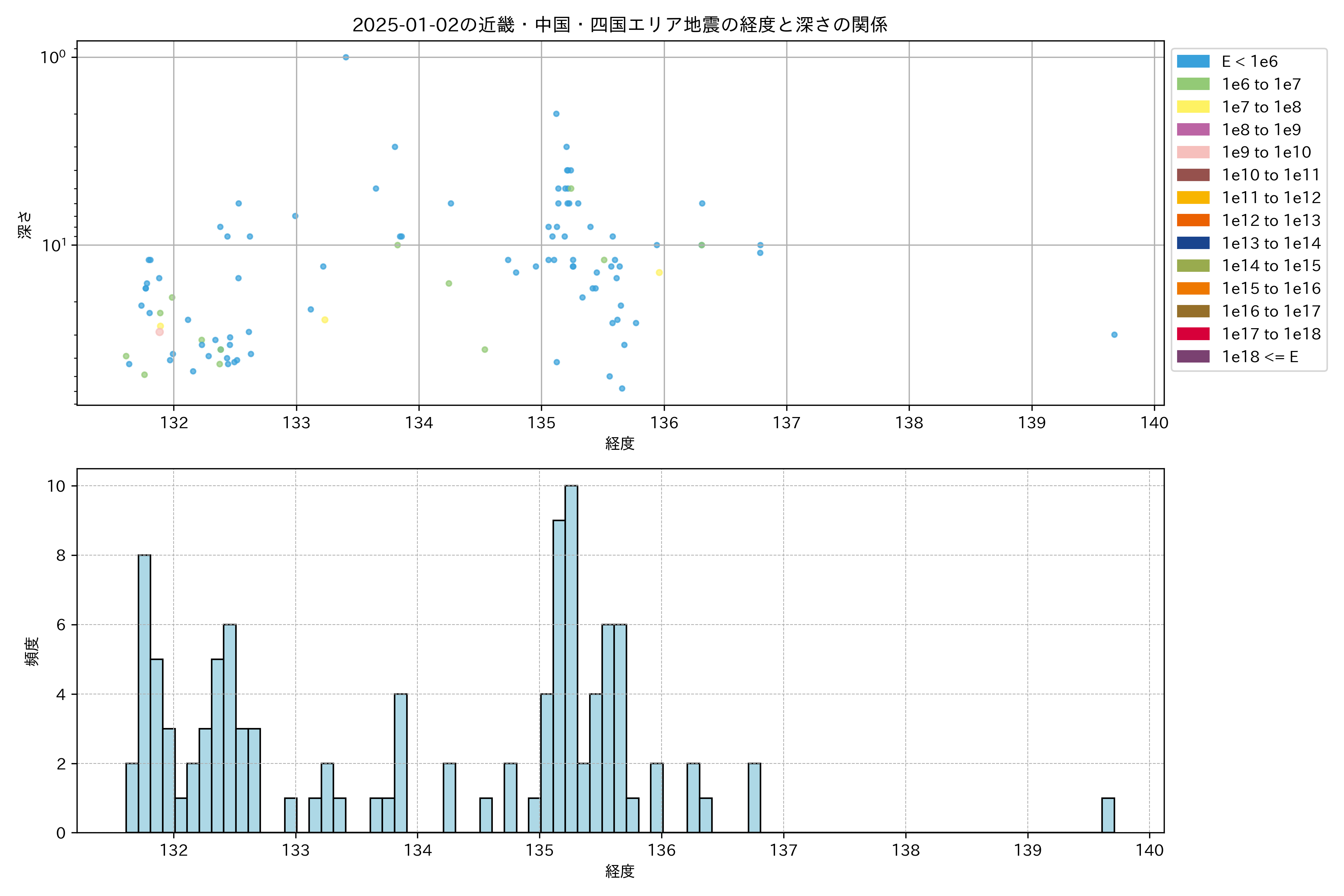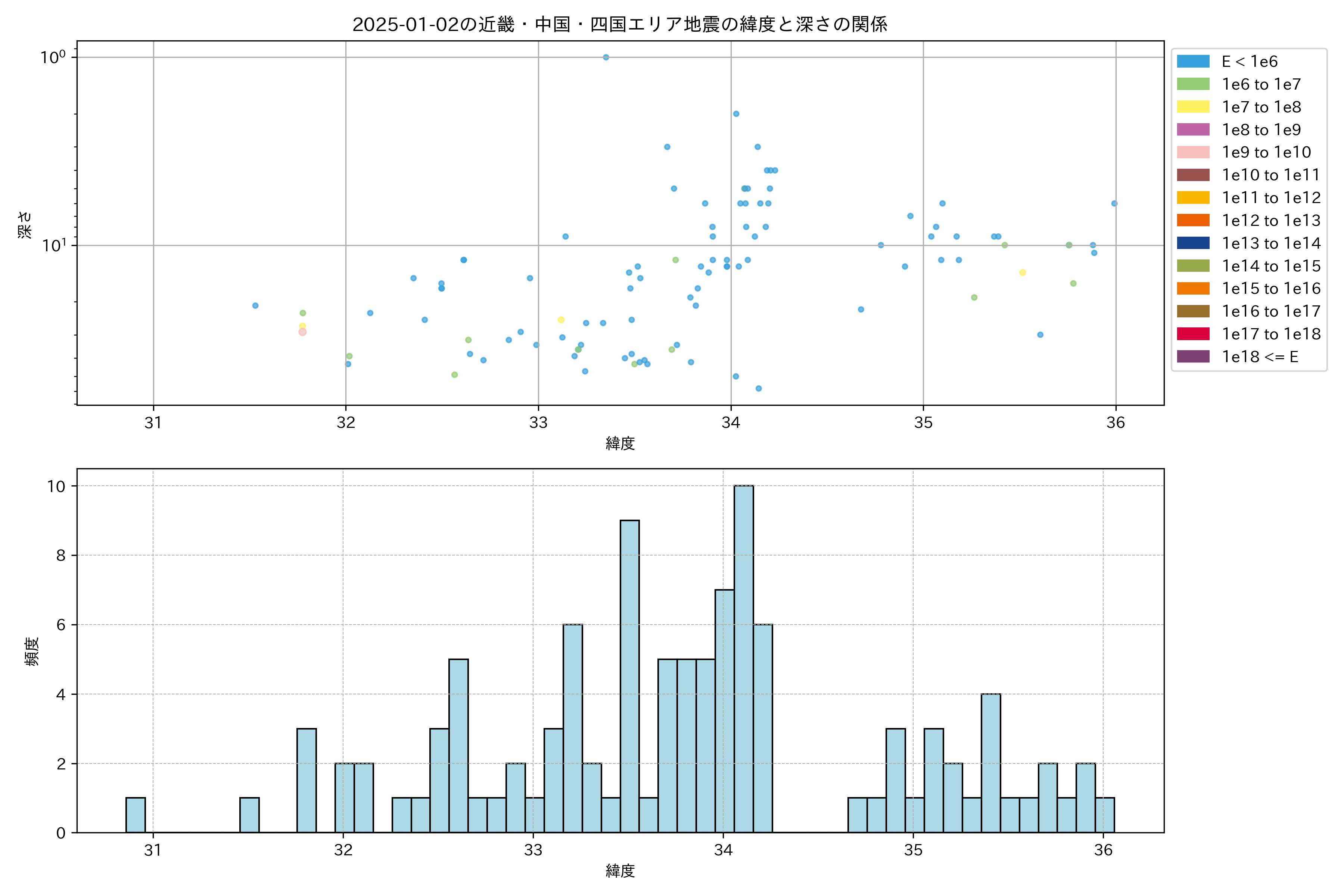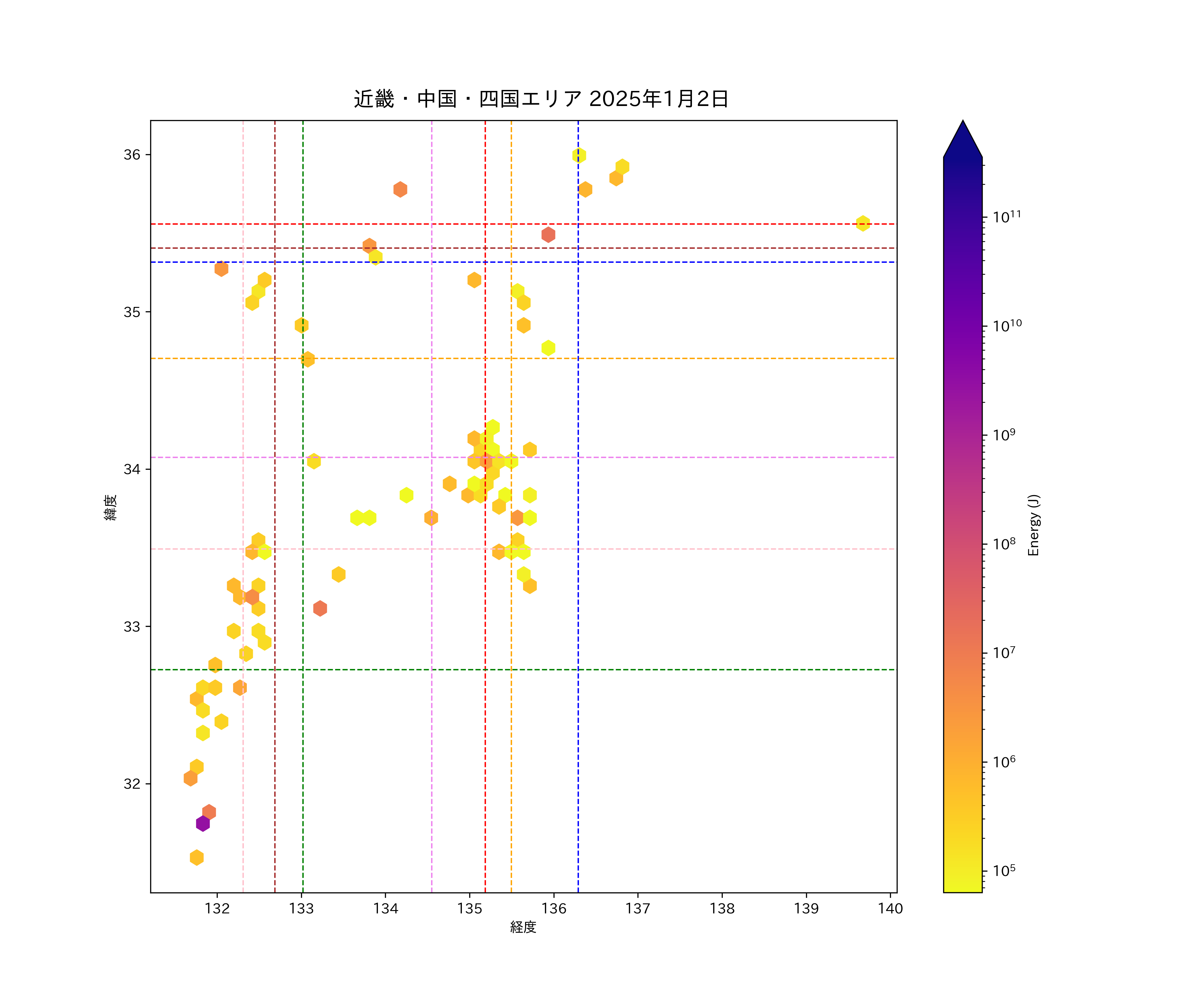 2025年01月02日近畿・中国・四国エリア震源マップ