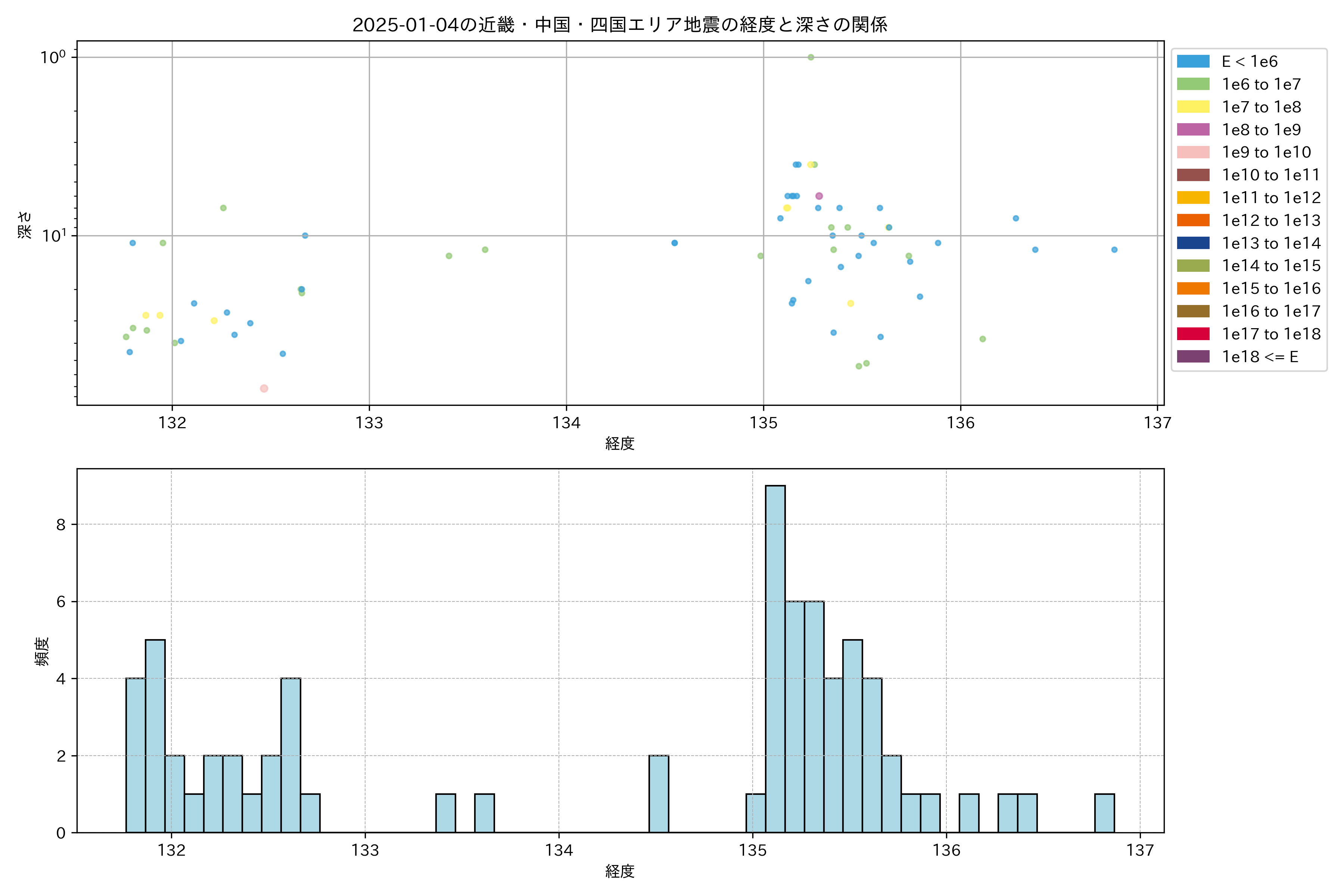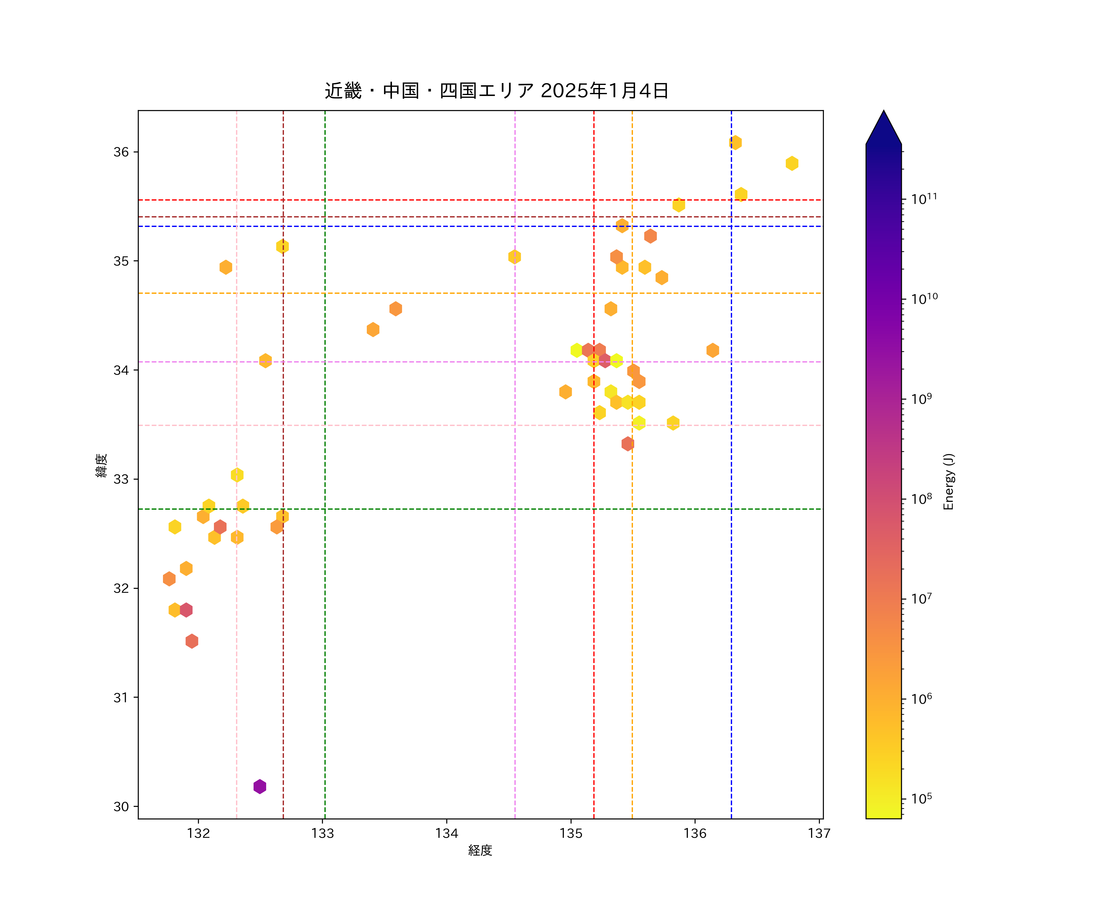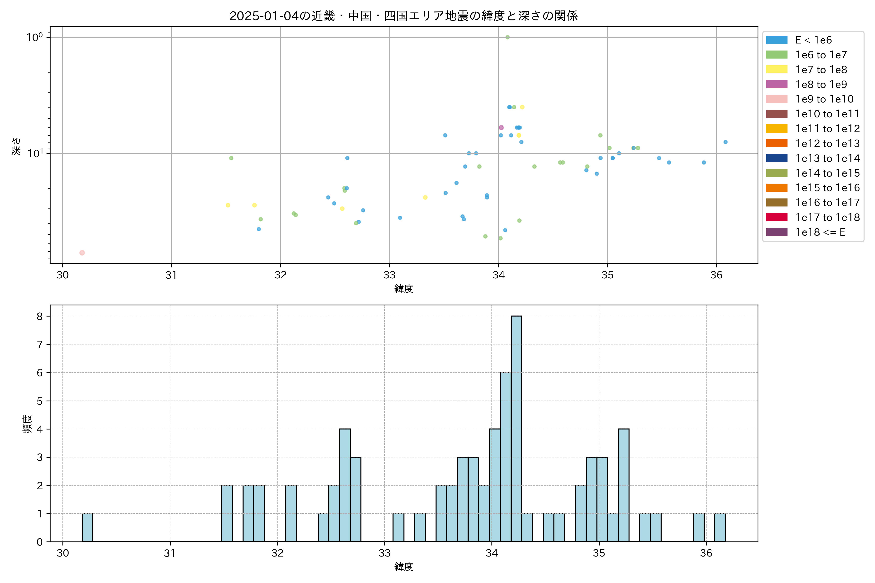 2025年01月04日近畿・中国・四国エリア震源マップ