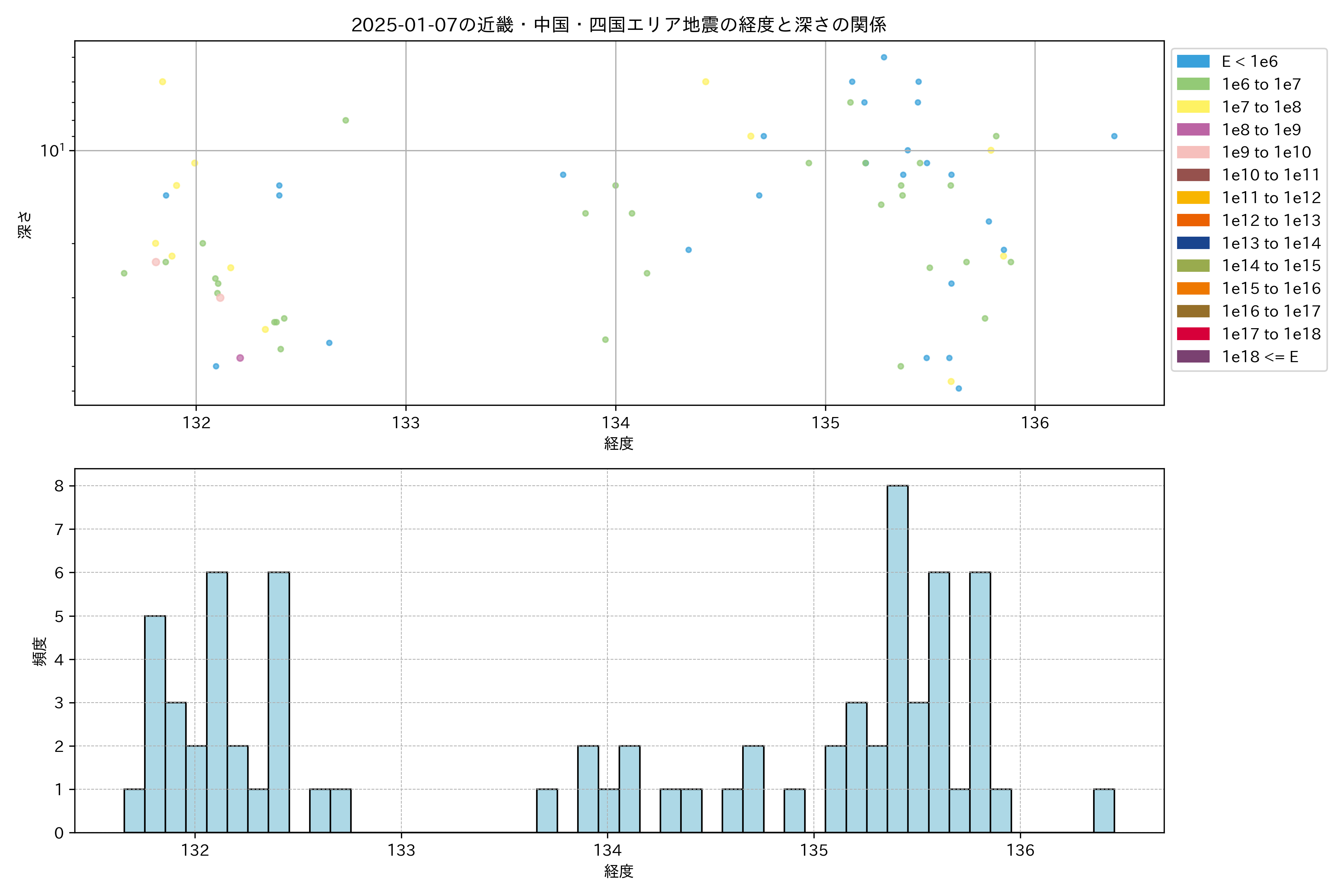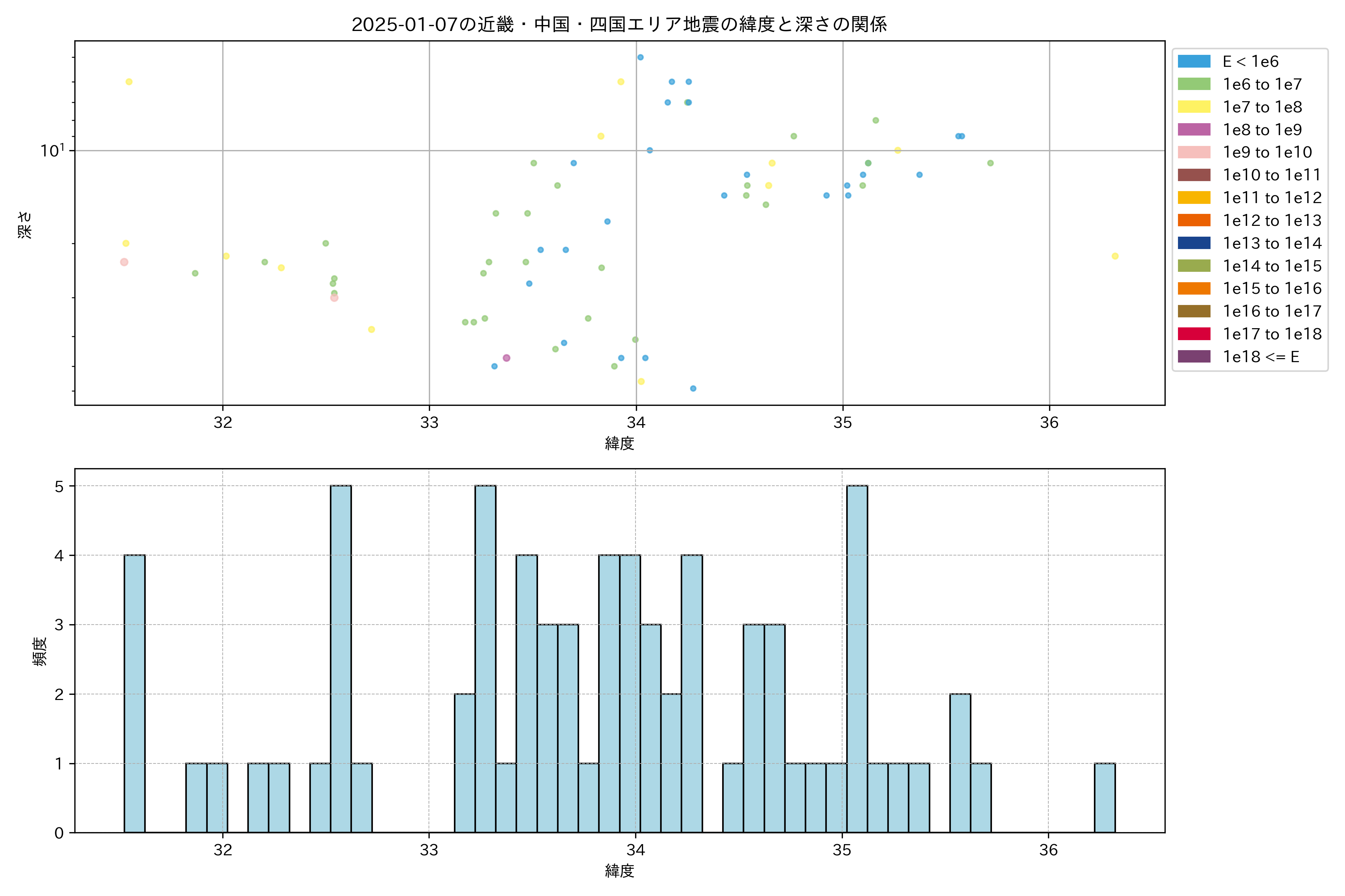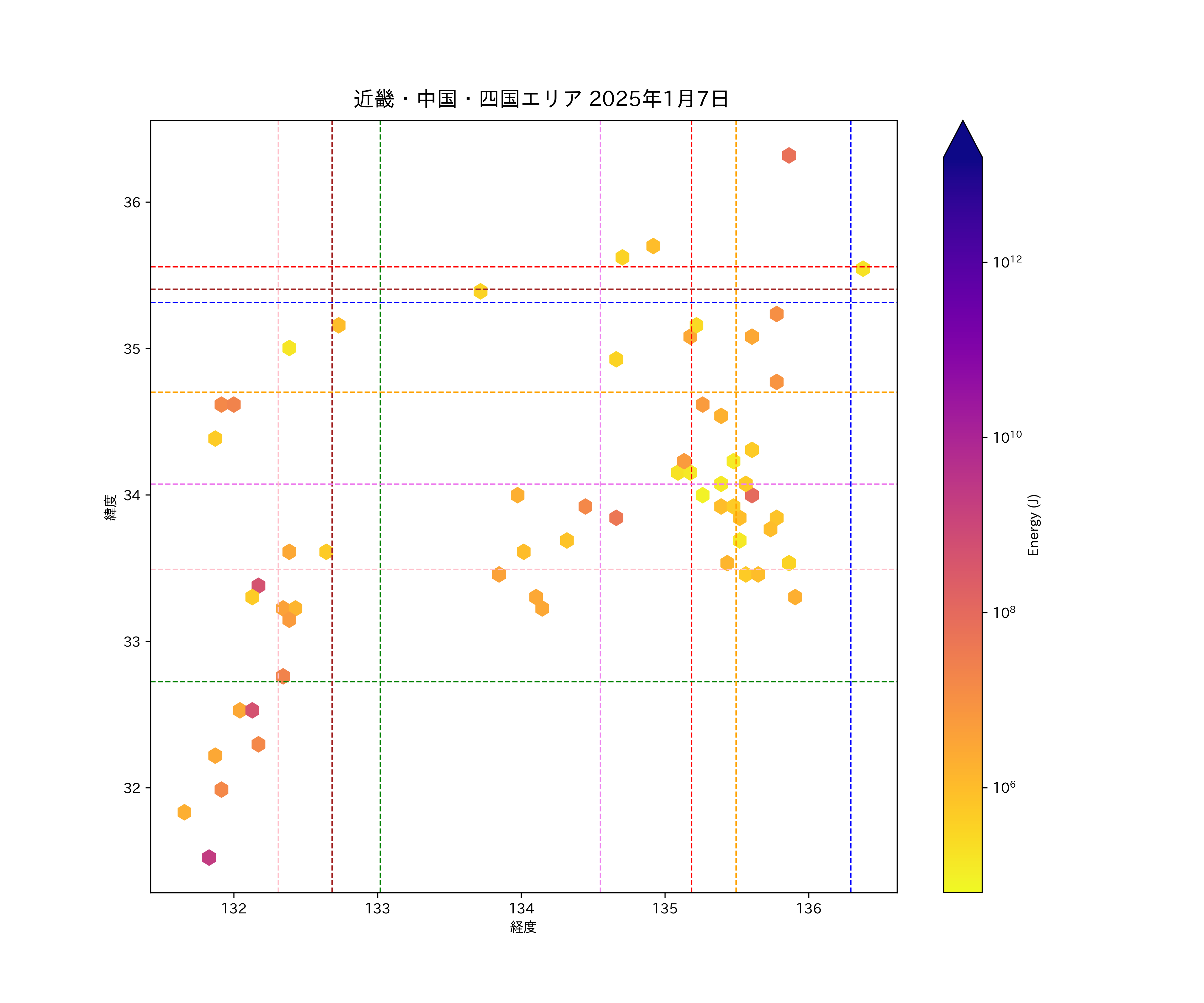 2025年01月07日近畿・中国・四国エリア震源マップ