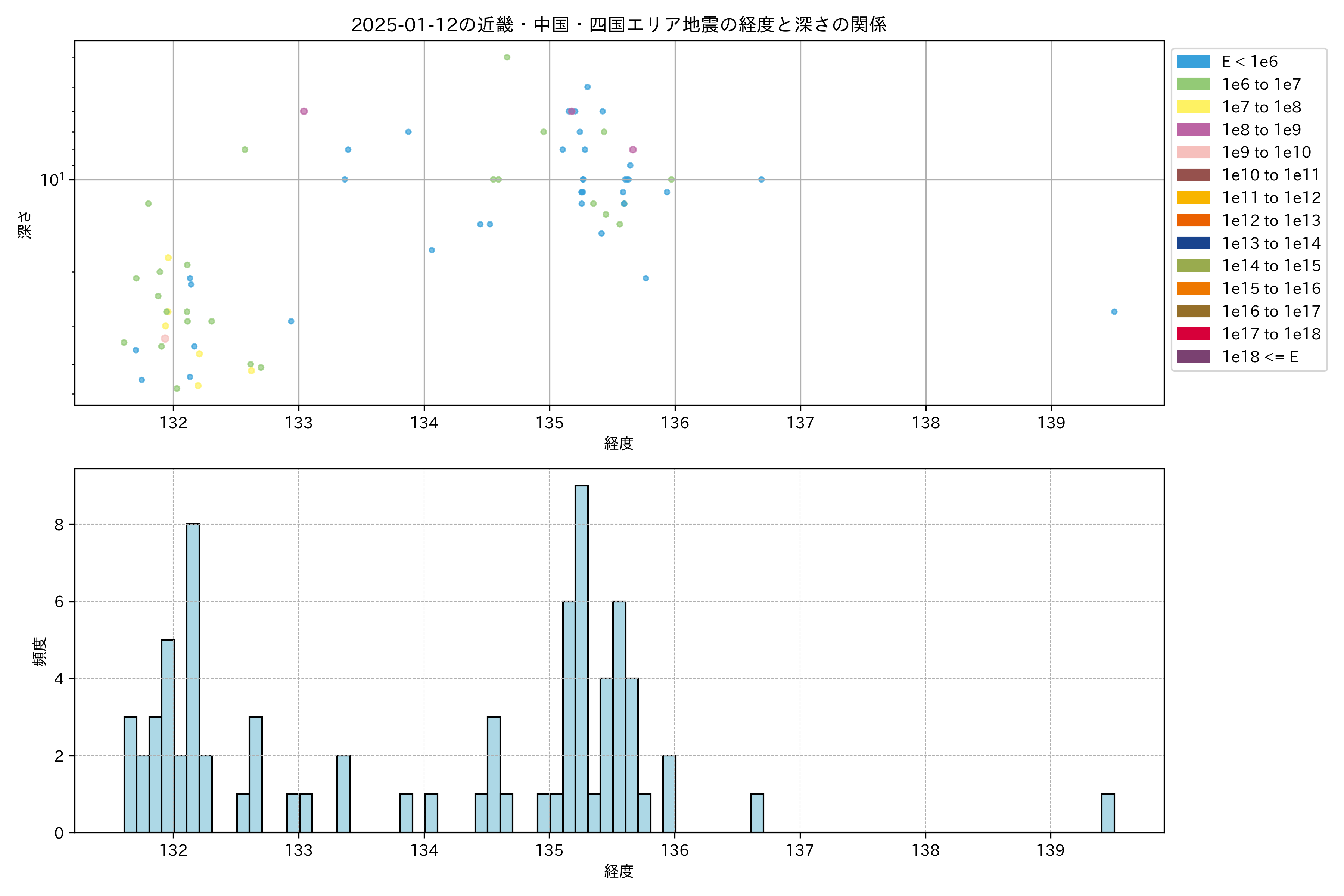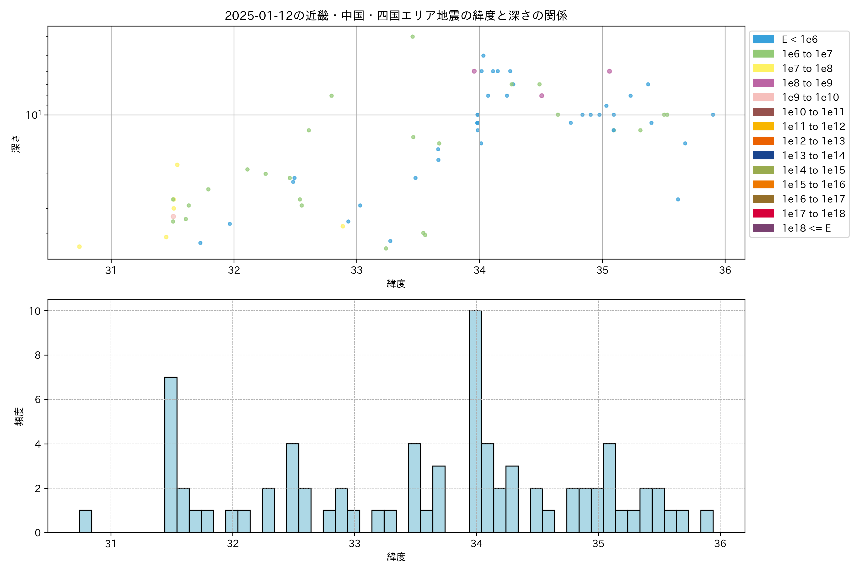 2025年01月12日近畿・中国・四国エリア震源マップ