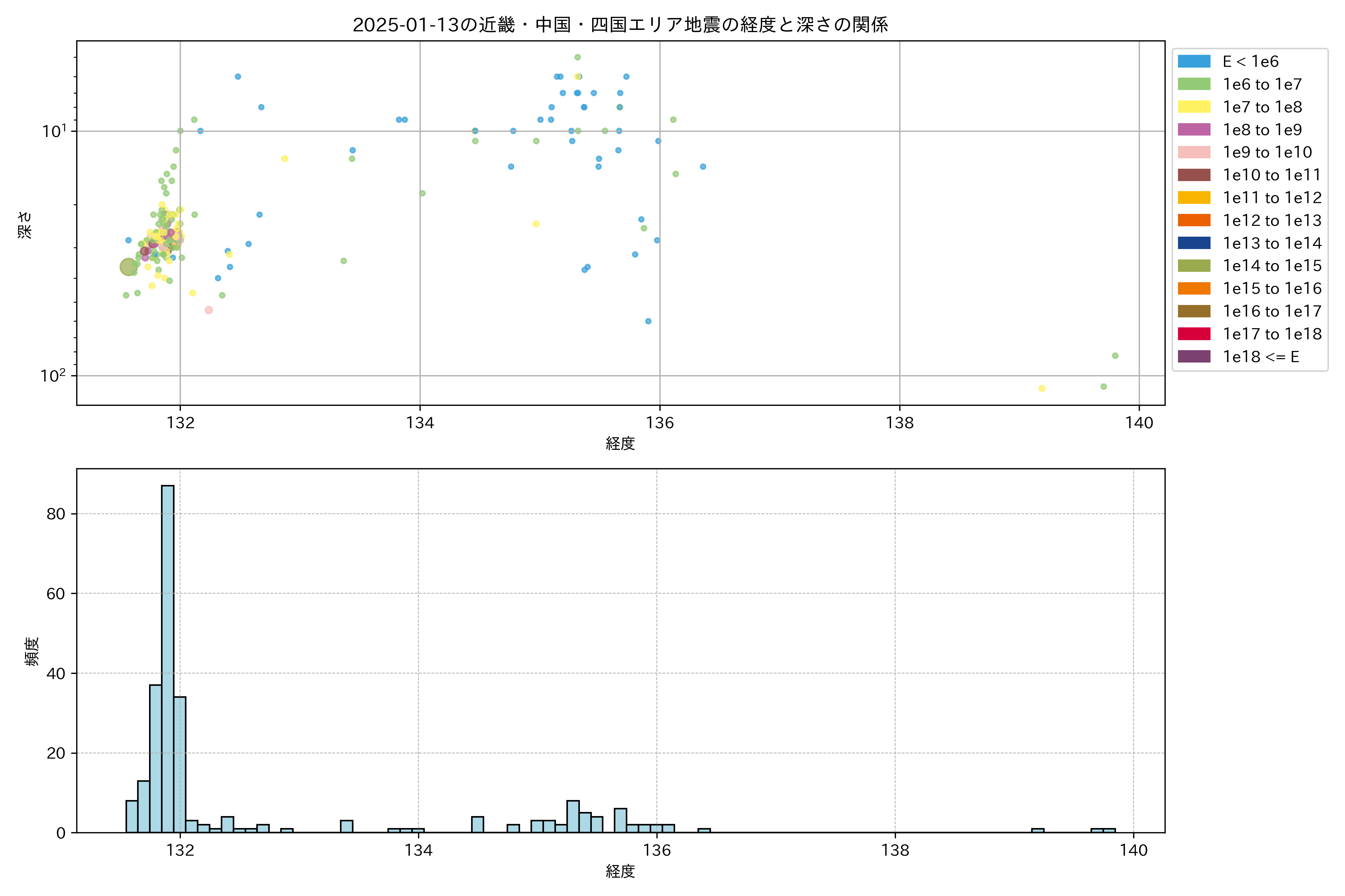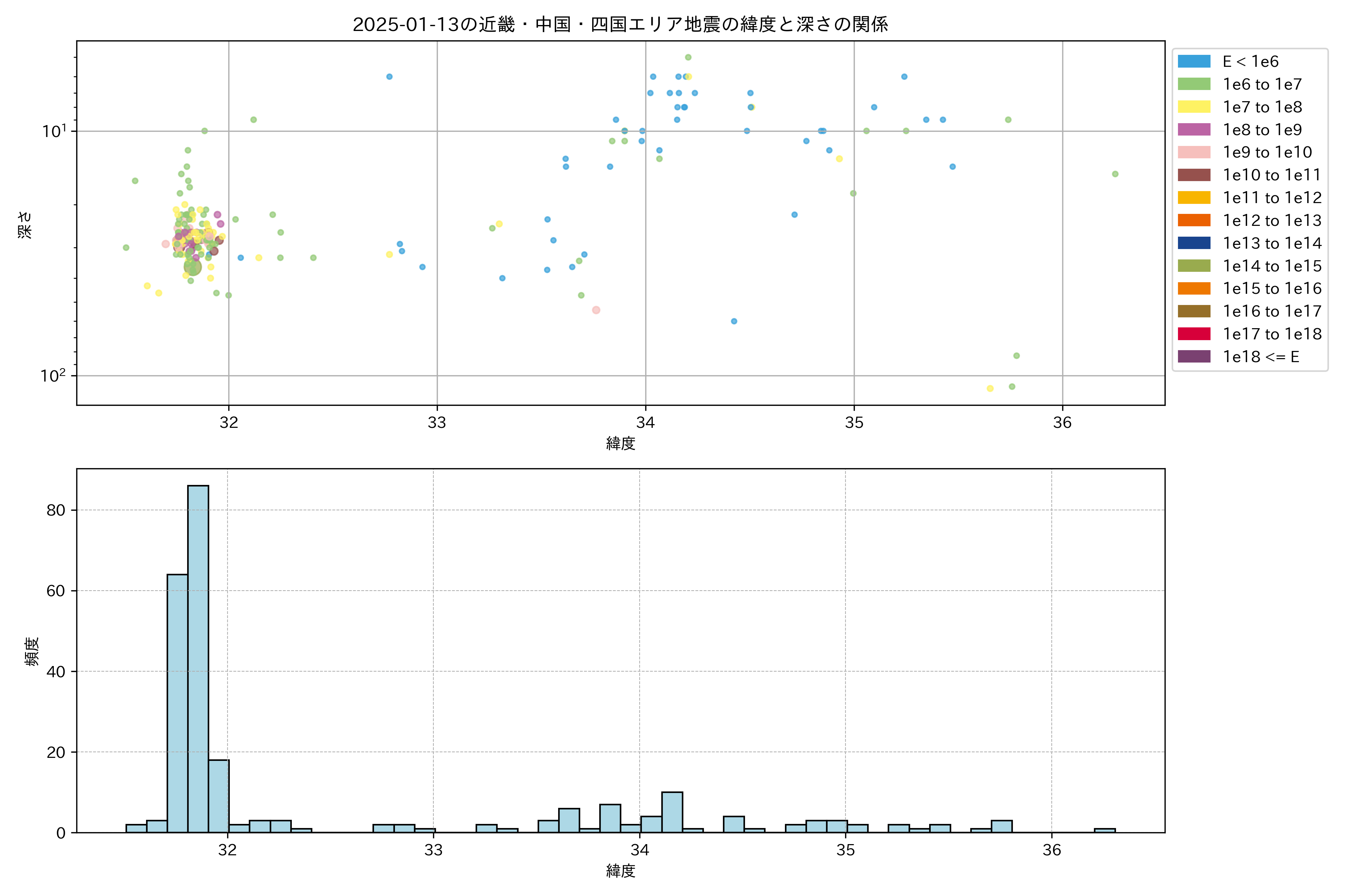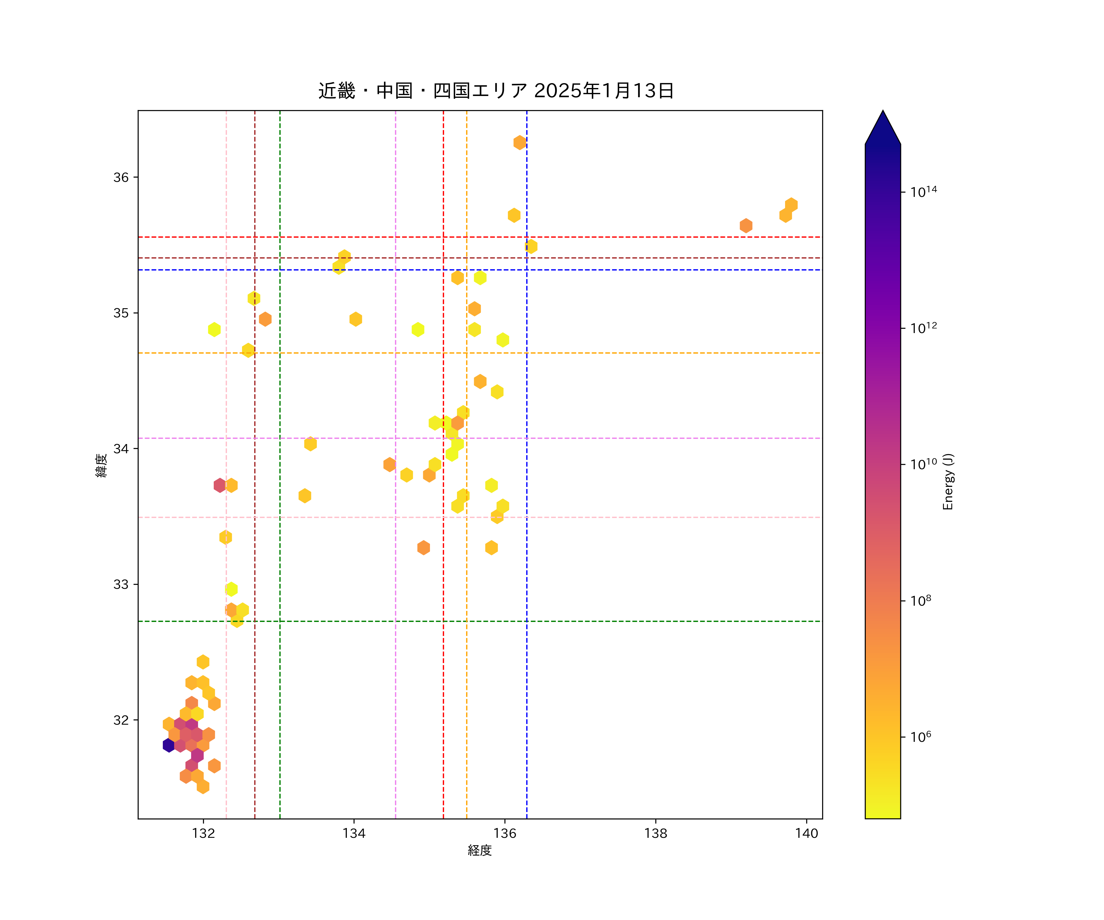 2025年01月13日近畿・中国・四国エリア震源マップ