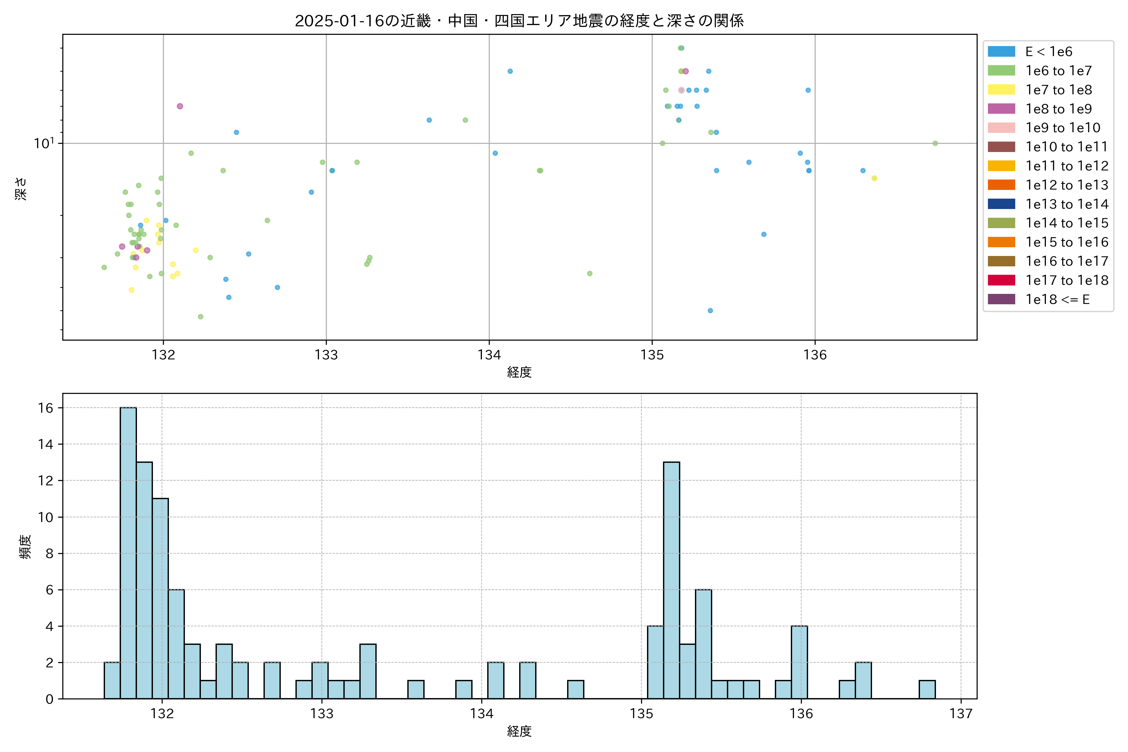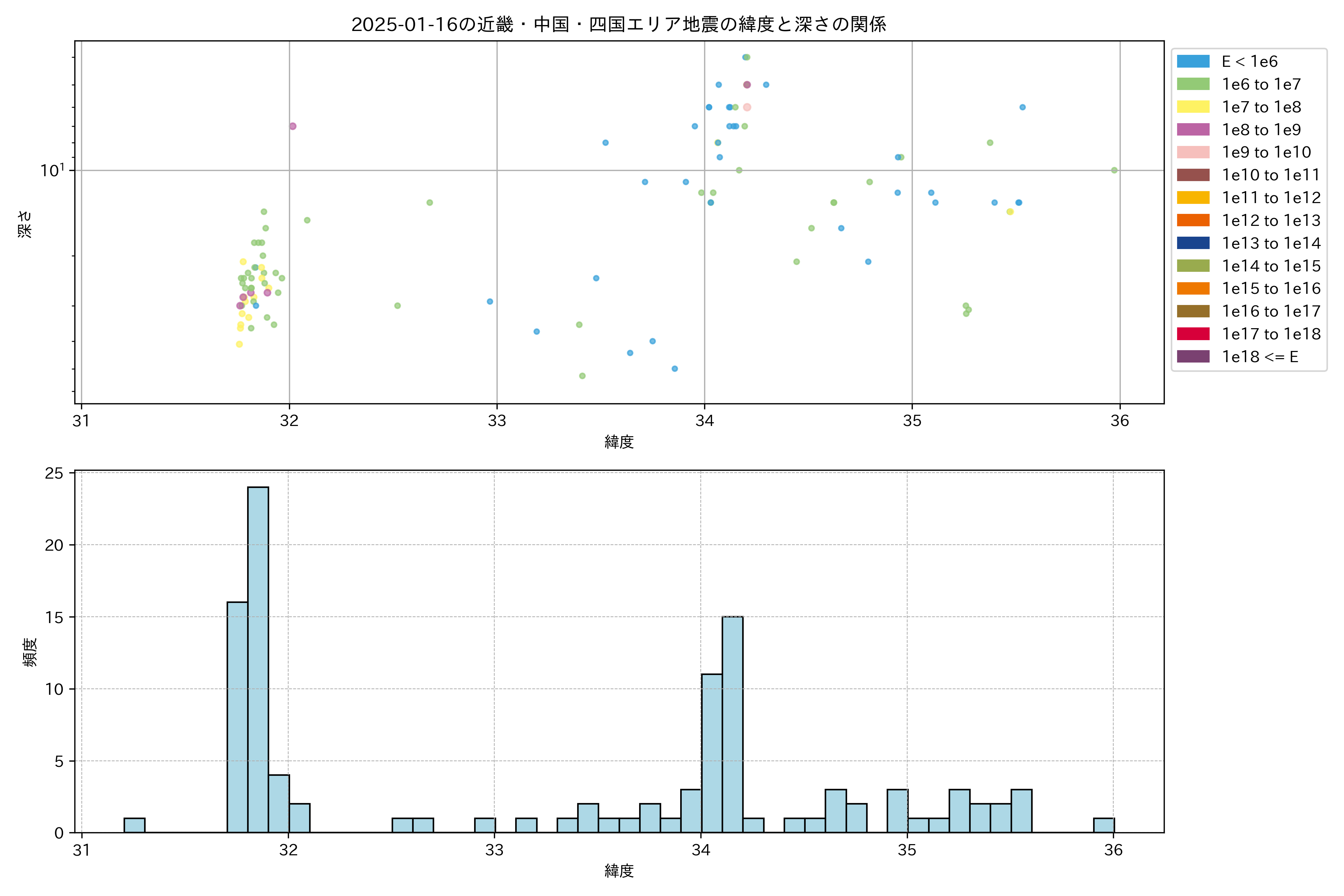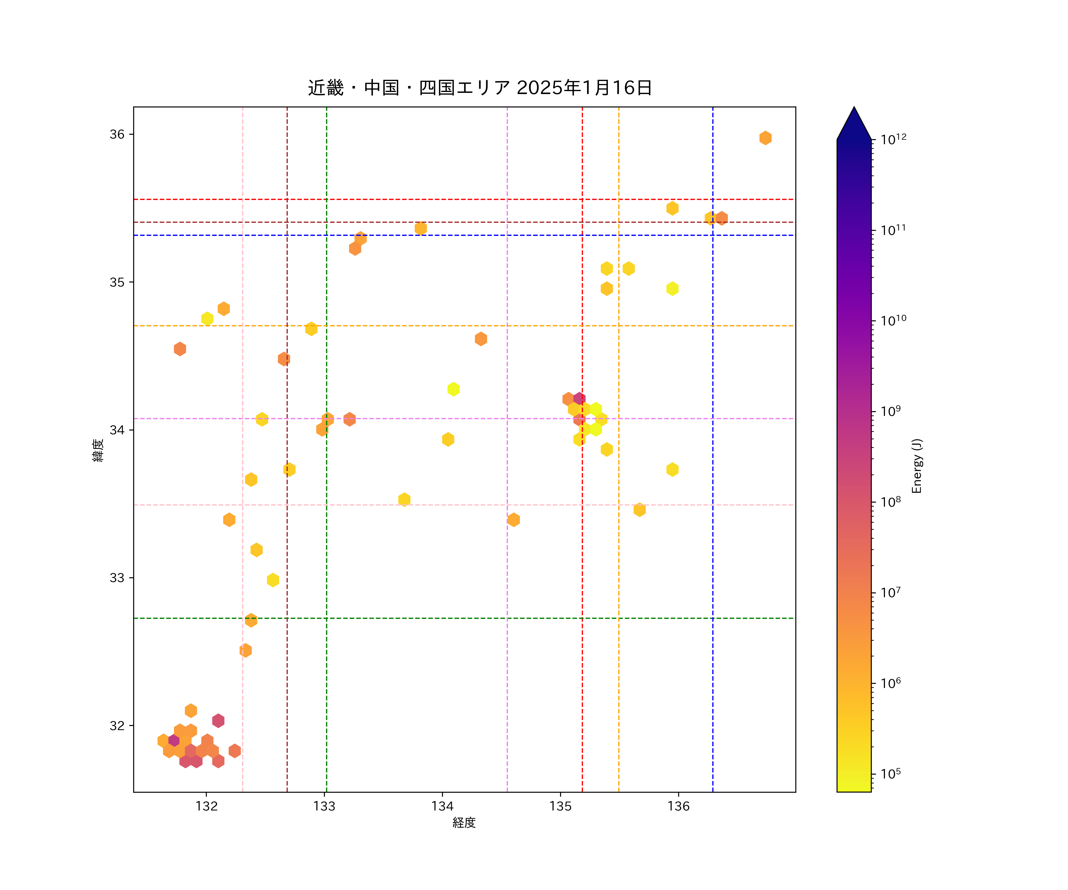 2025年01月16日近畿・中国・四国エリア震源マップ