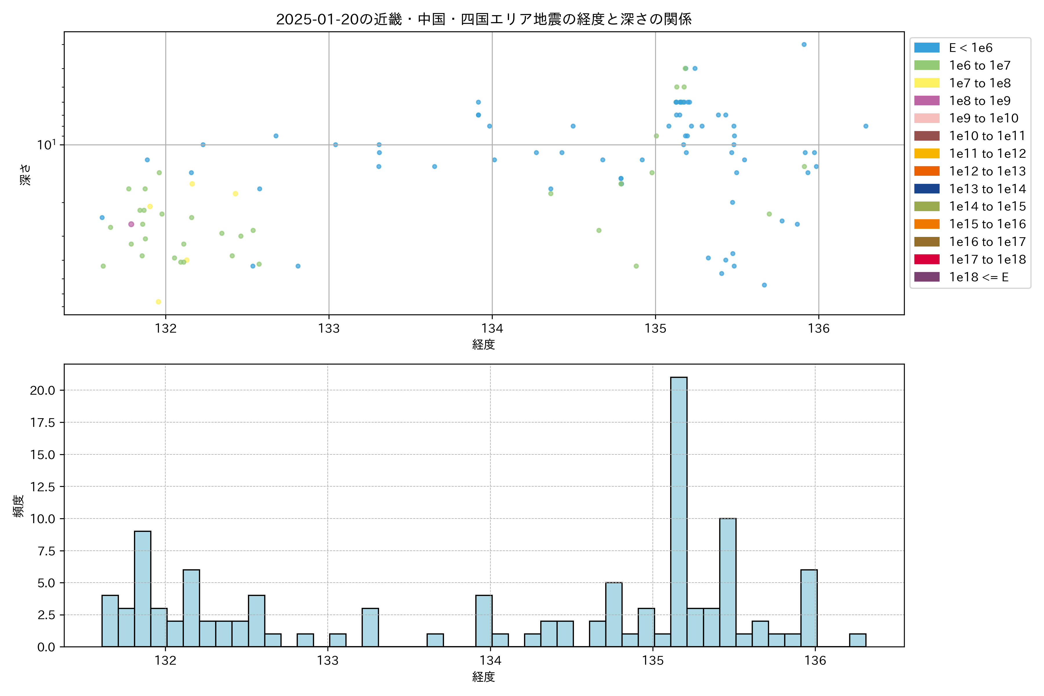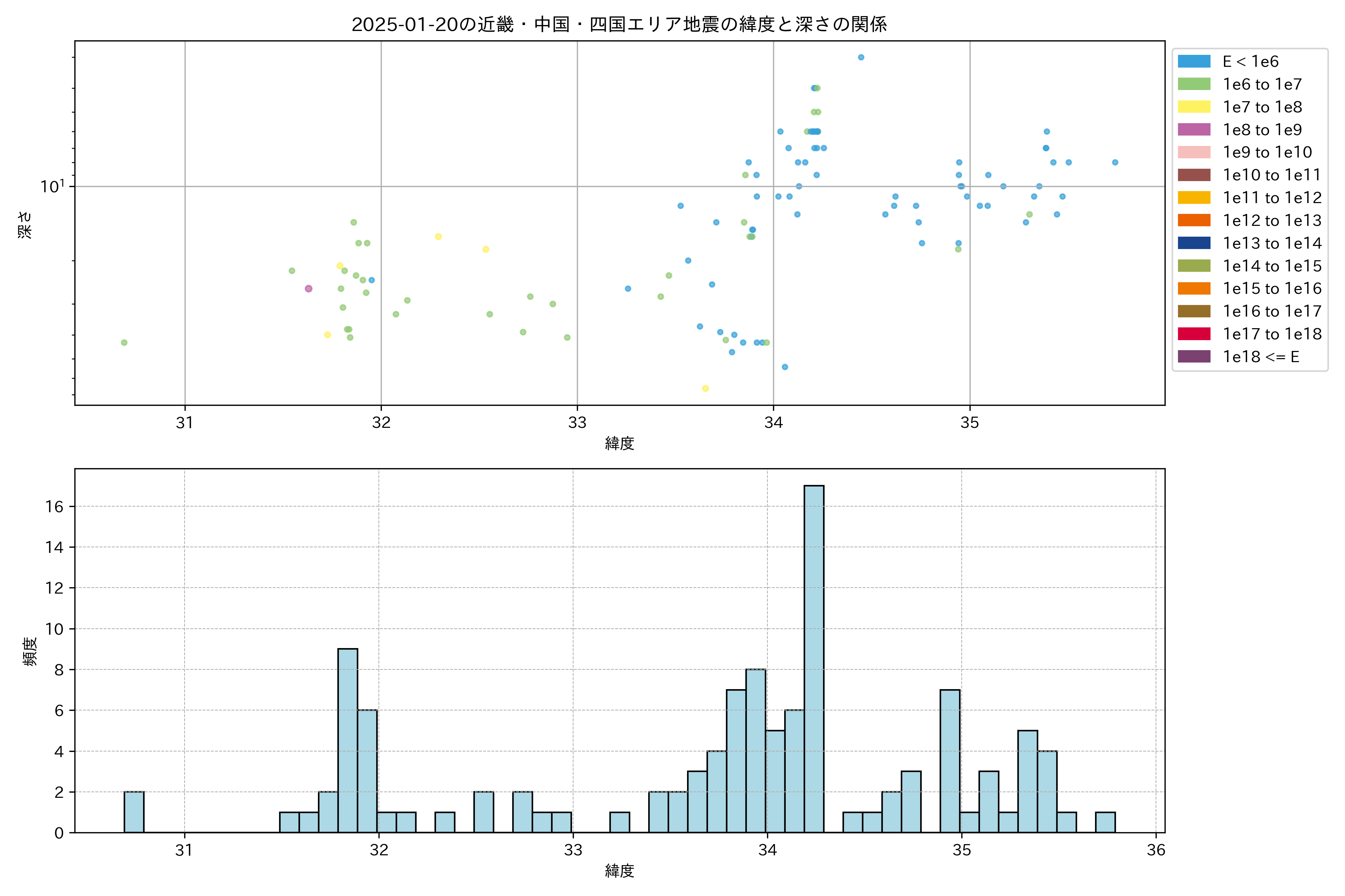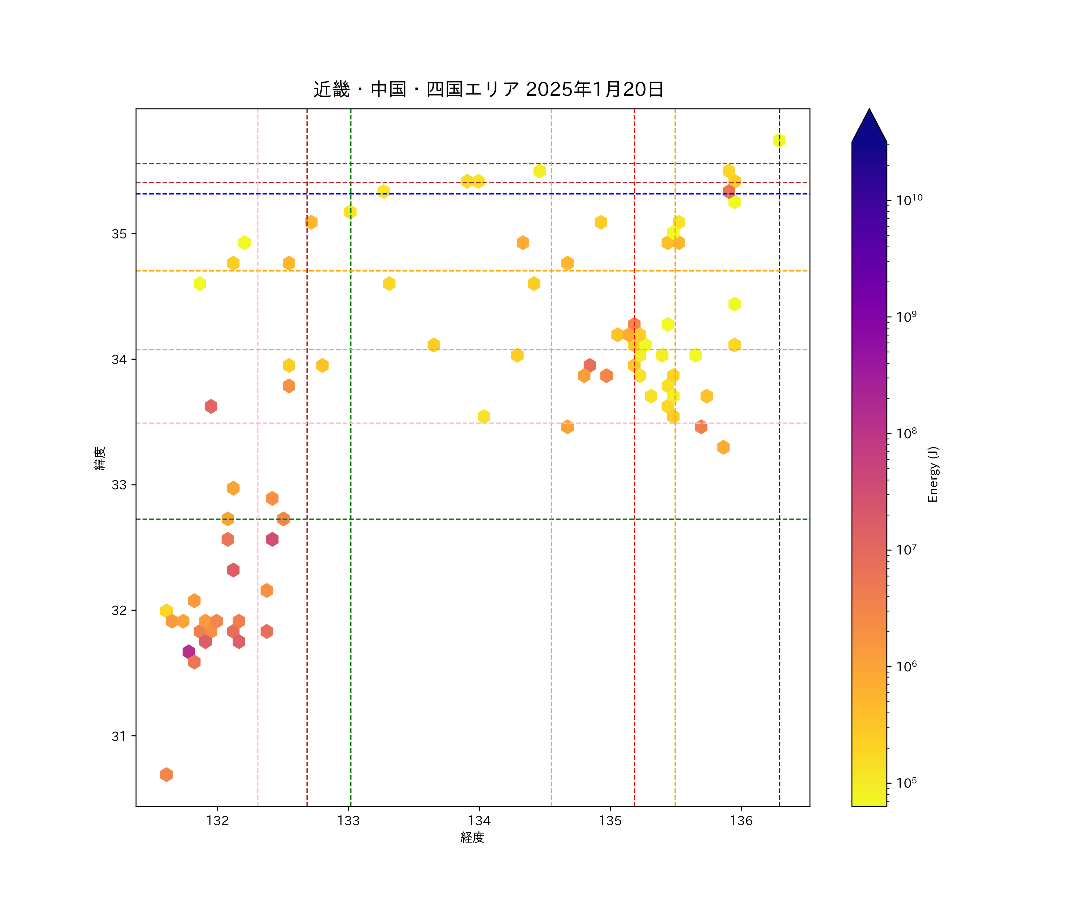 2025年01月20日近畿・中国・四国エリア震源マップ