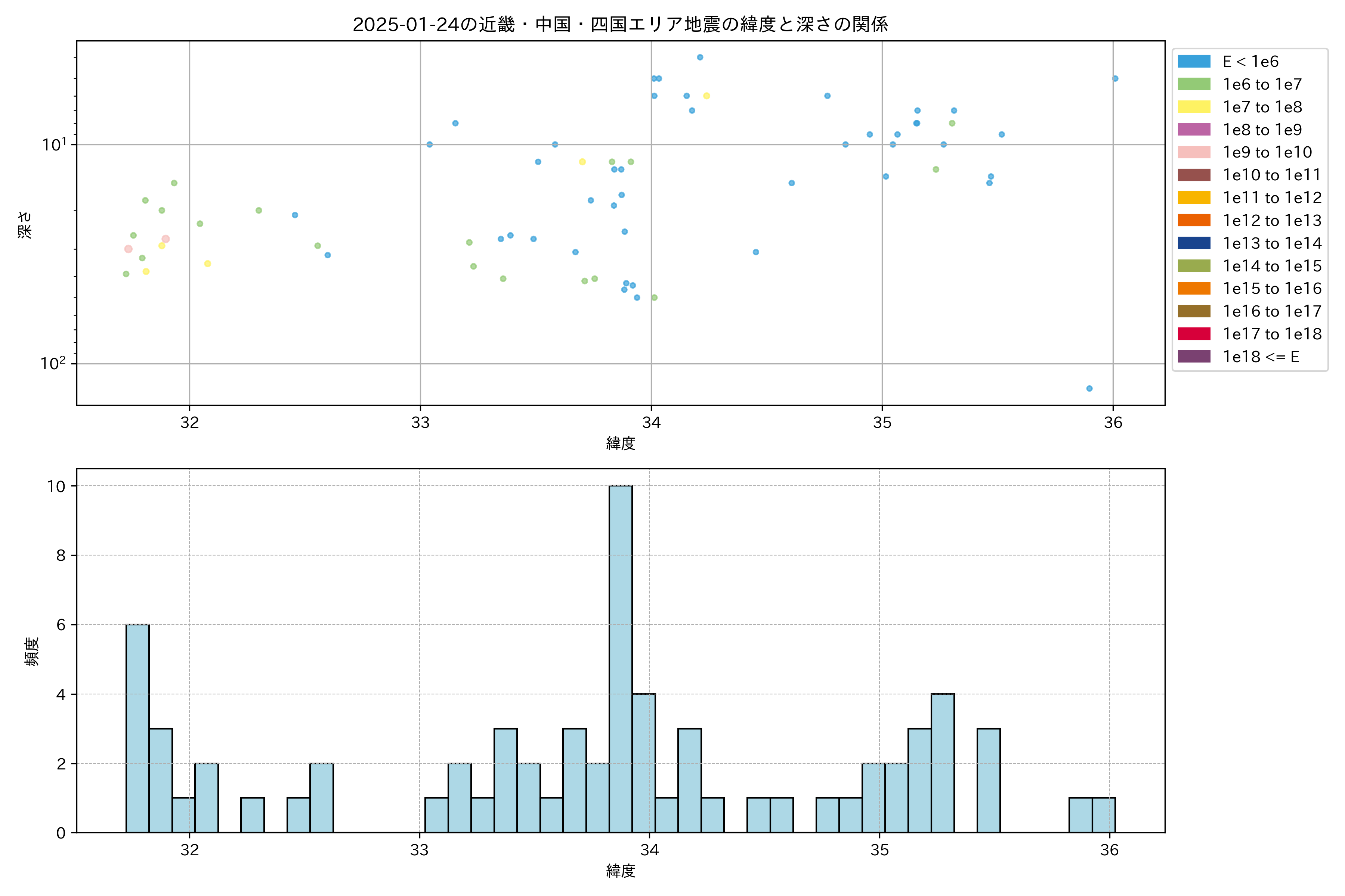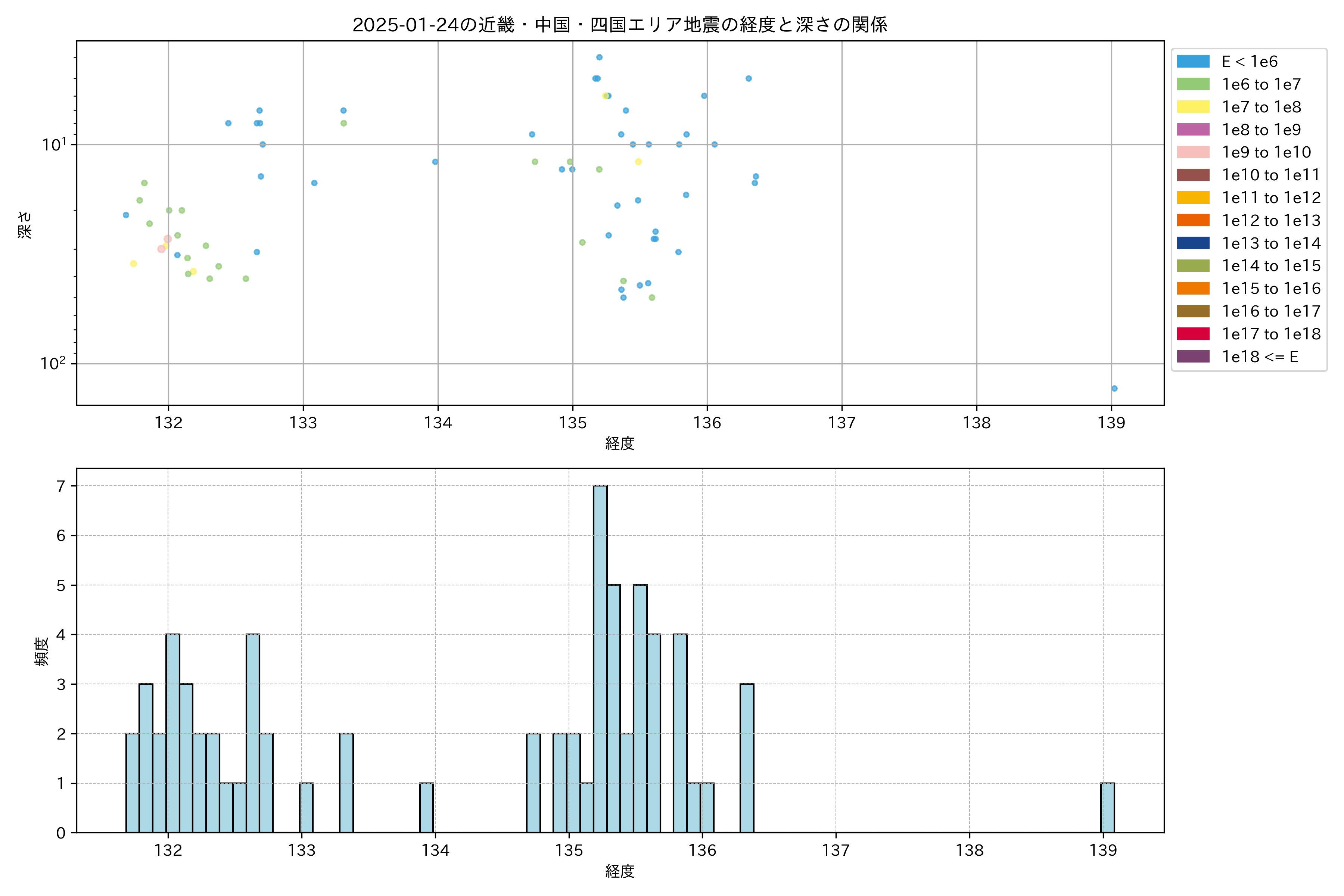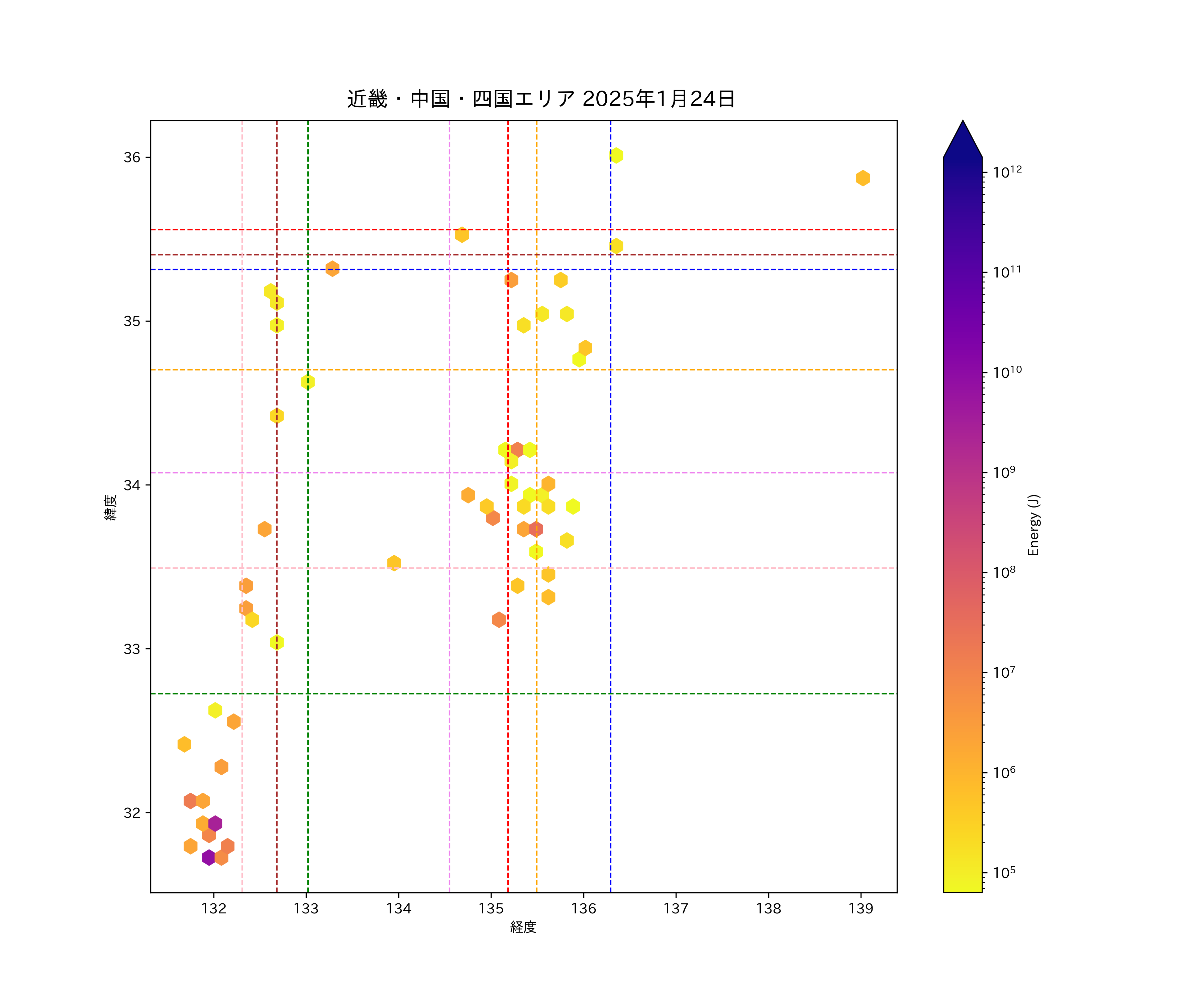 2025年01月24日近畿・中国・四国エリア震源マップ