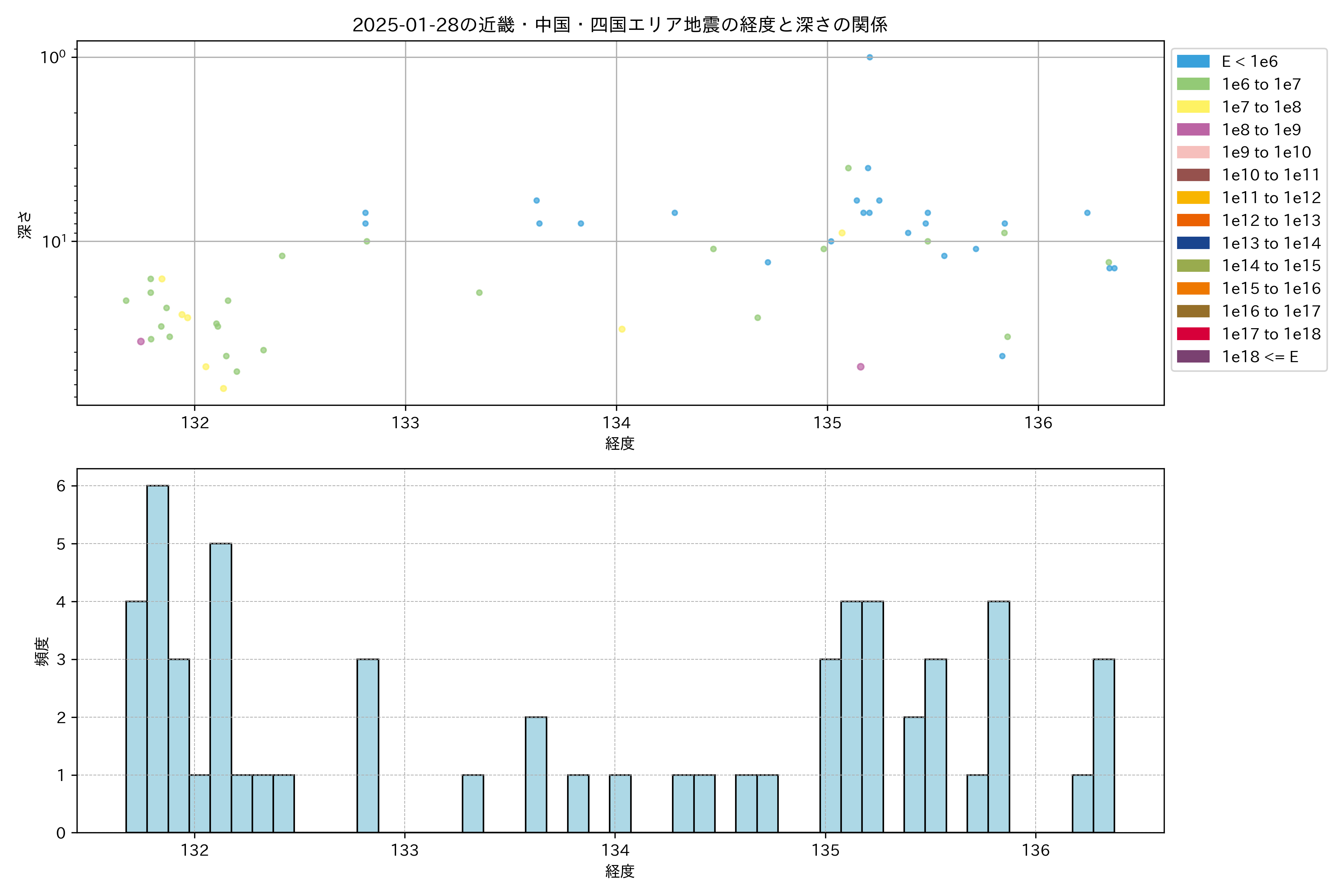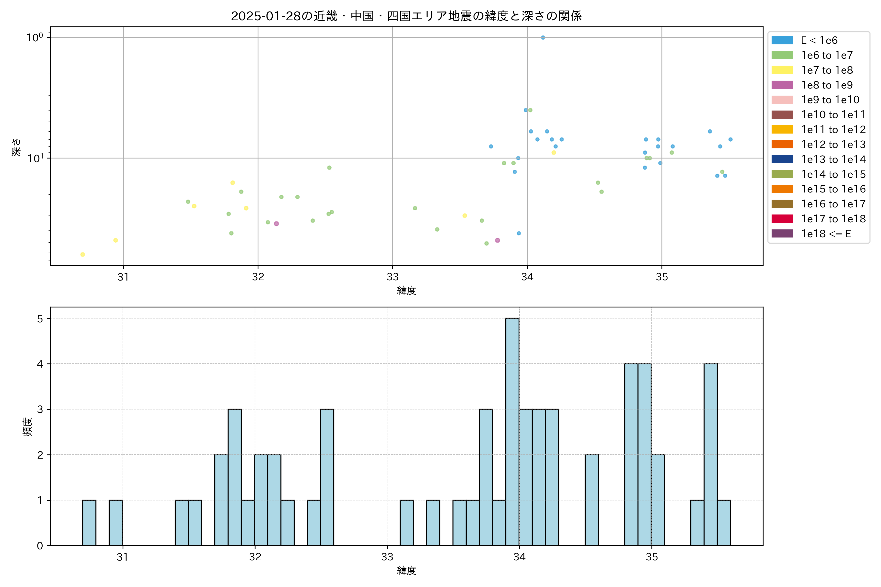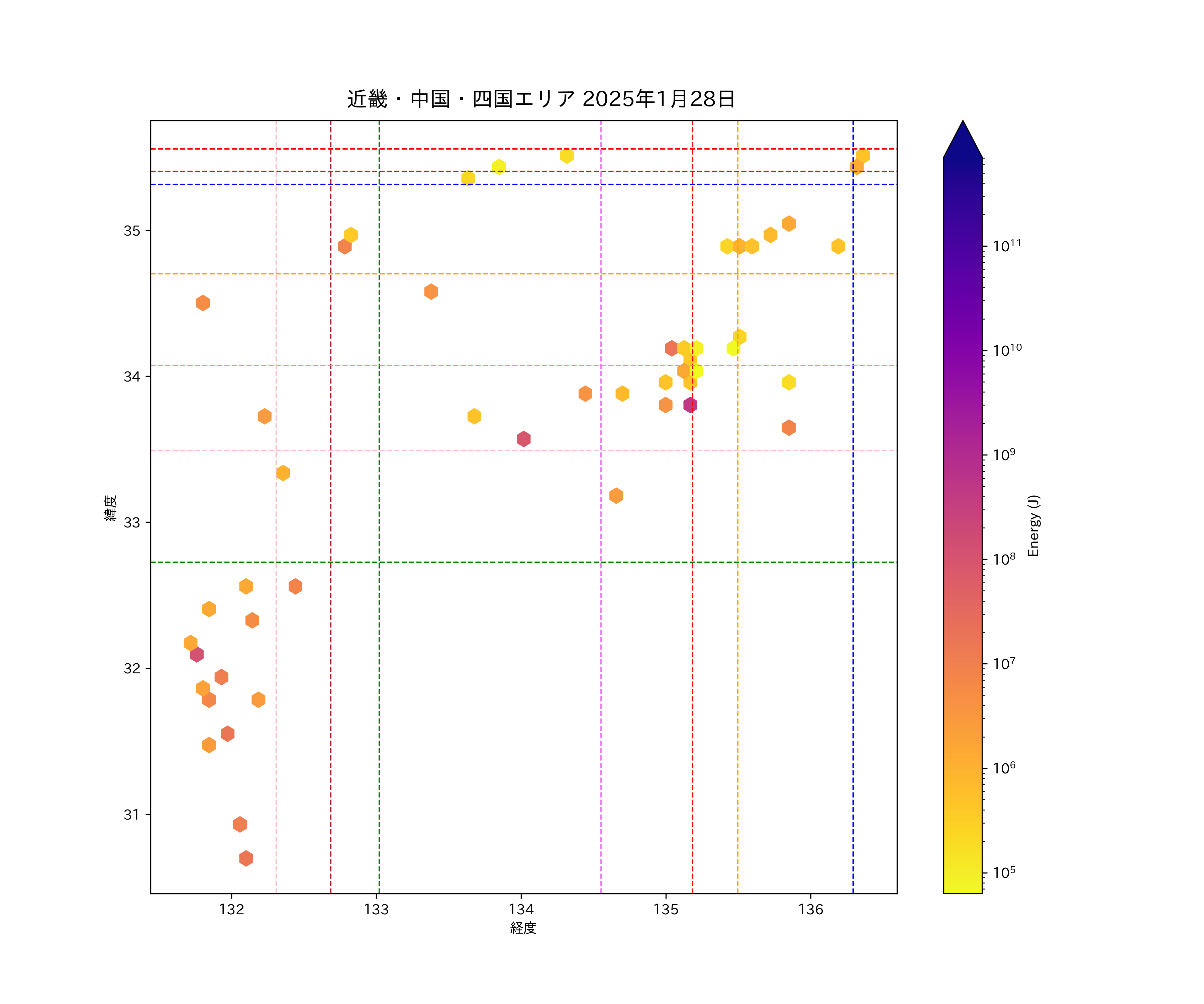 2025年01月28日近畿・中国・四国エリア震源マップ