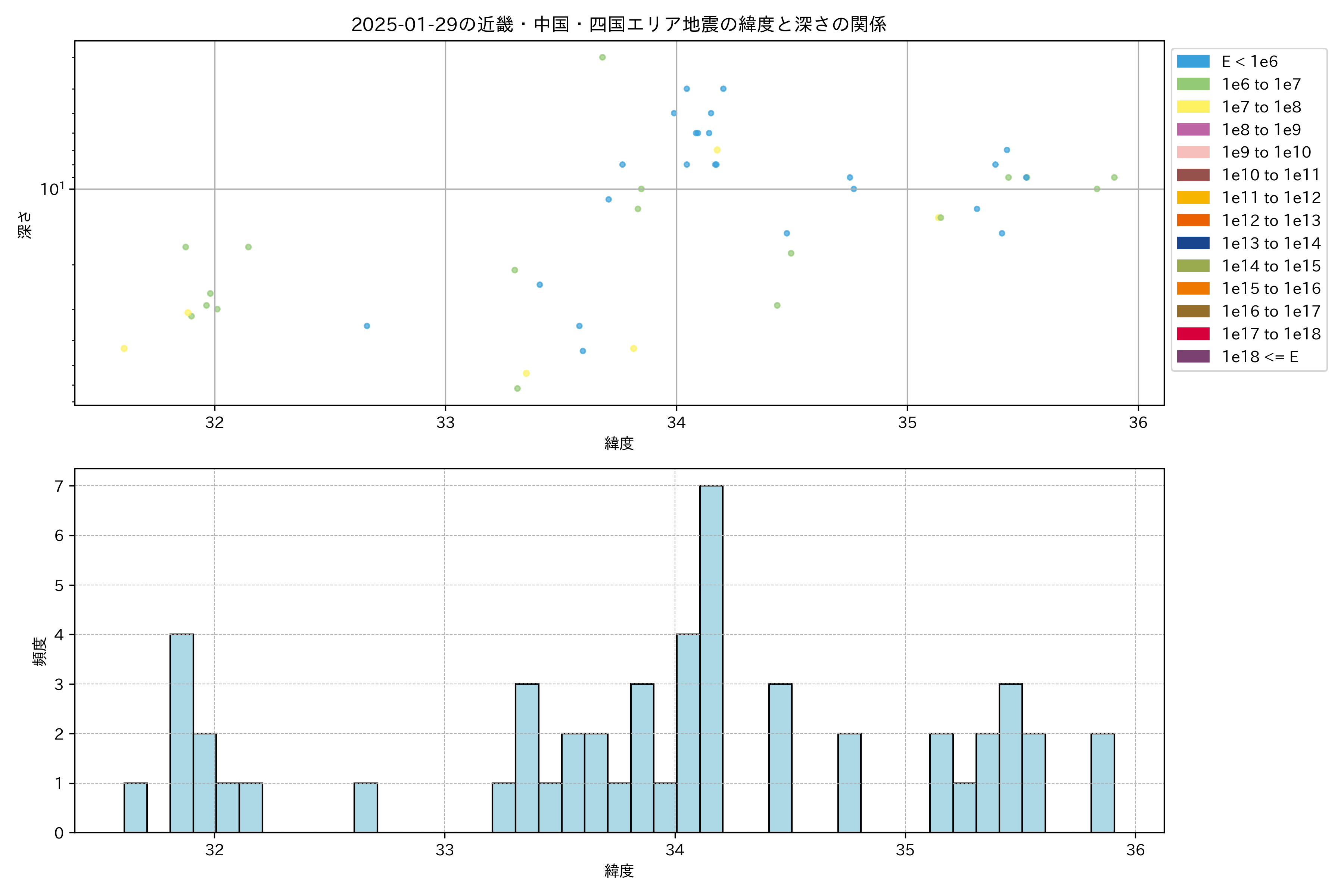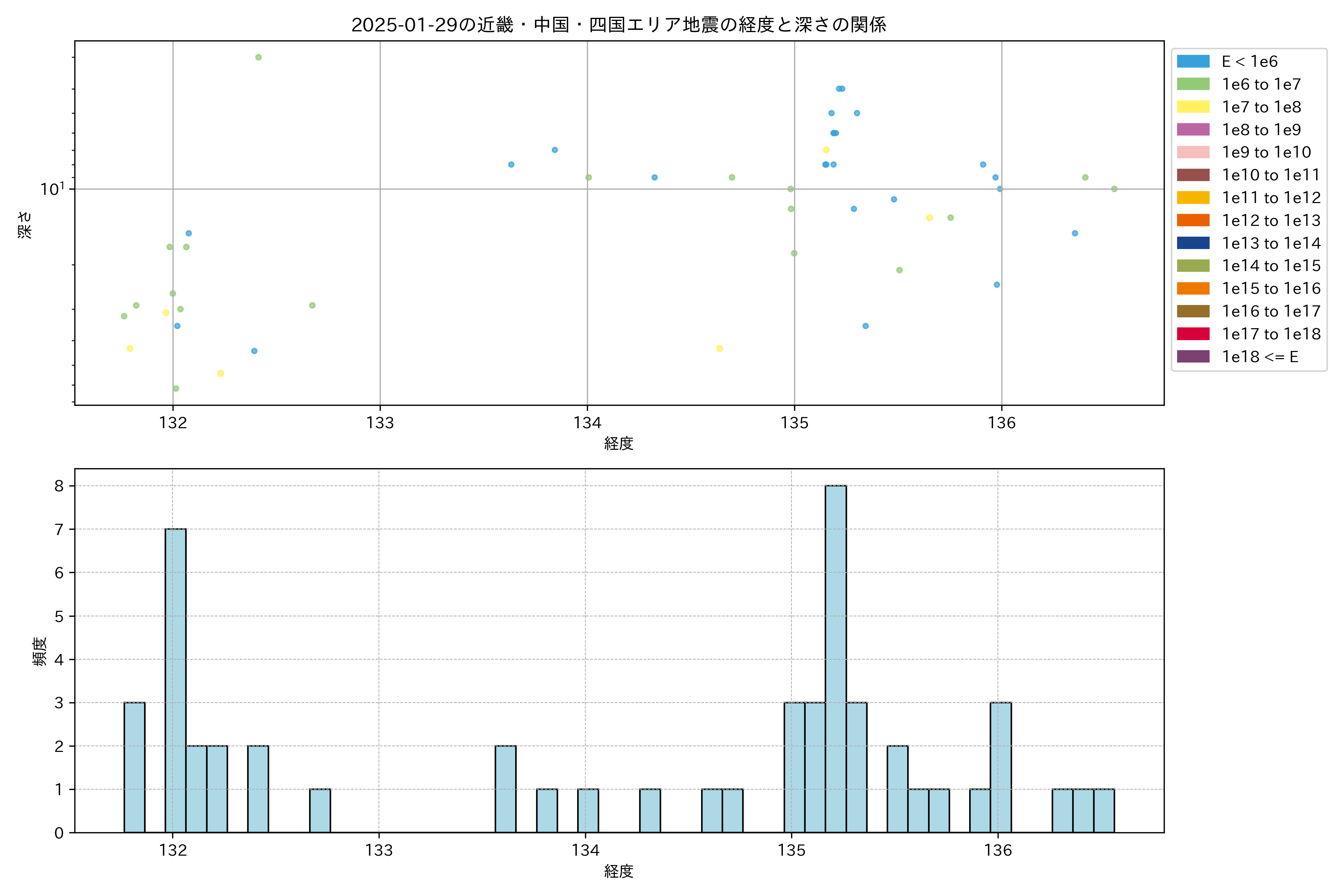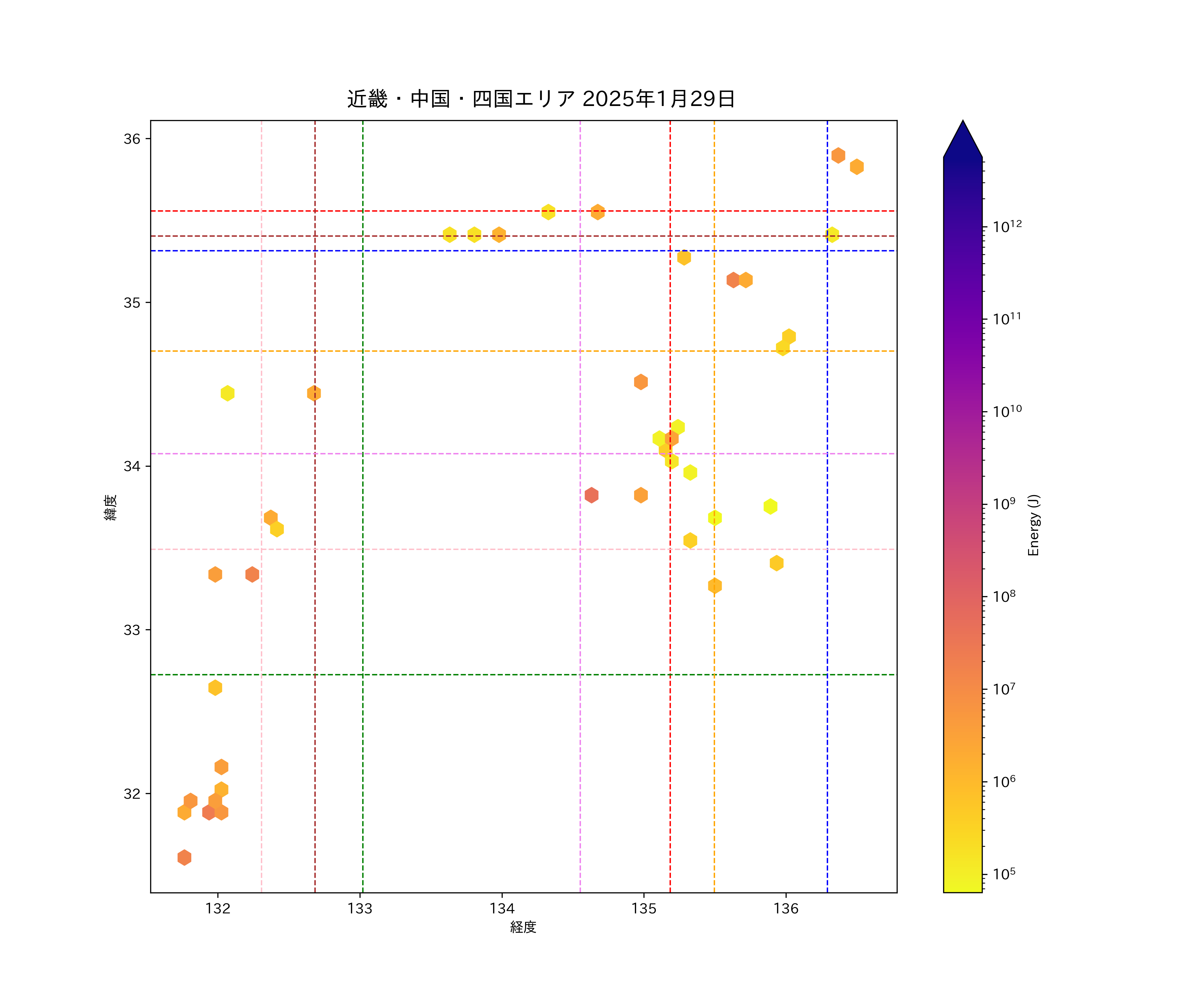 2025年01月29日近畿・中国・四国エリア震源マップ