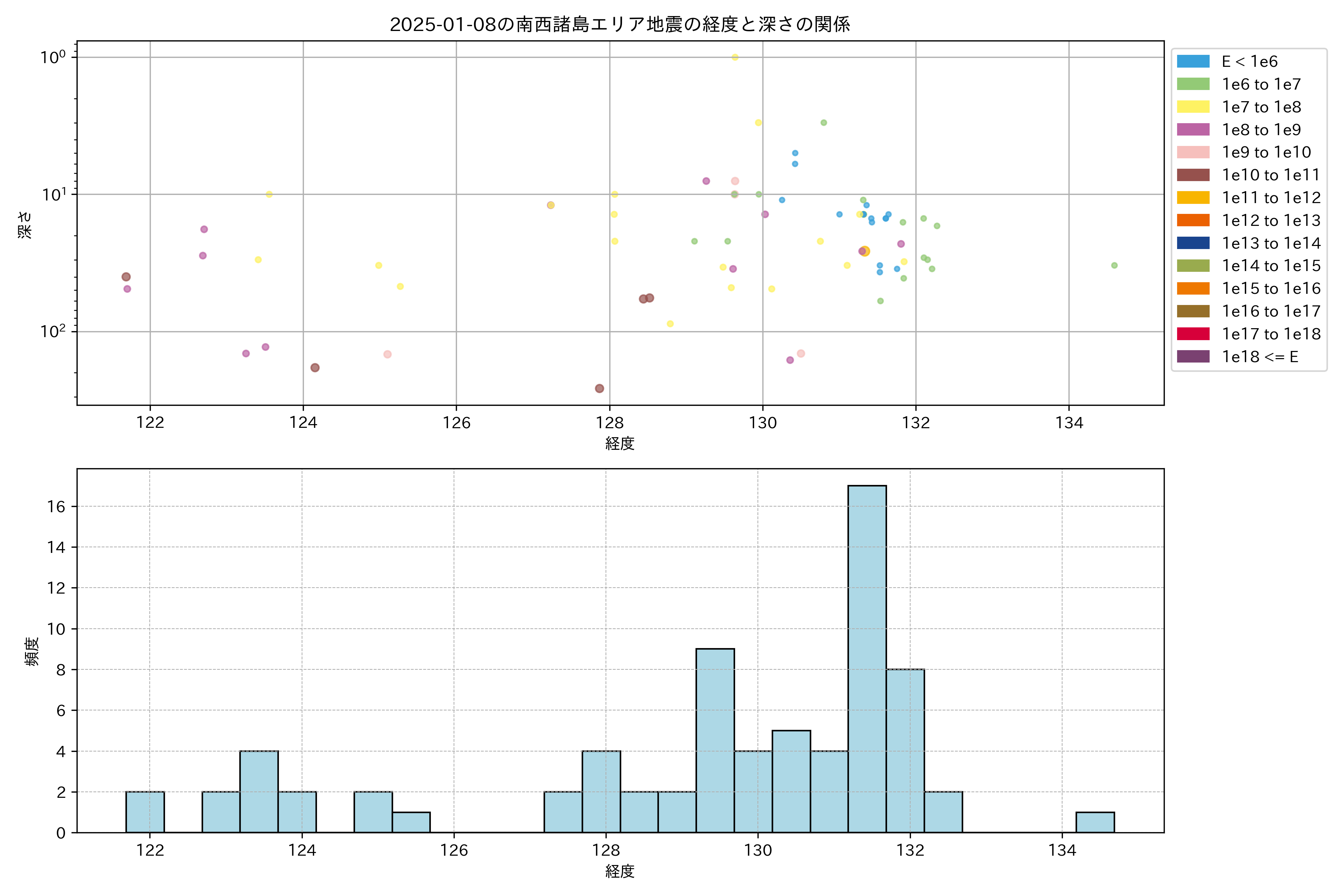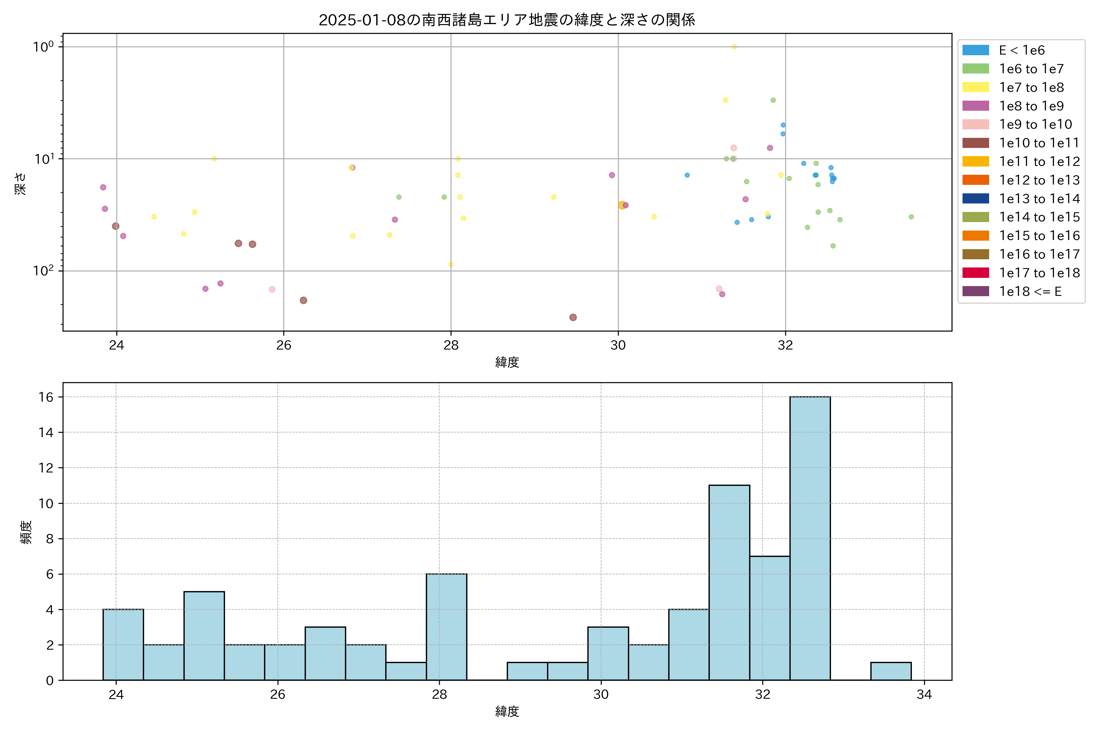 2025年01月08日南西諸島エリア震源マップ