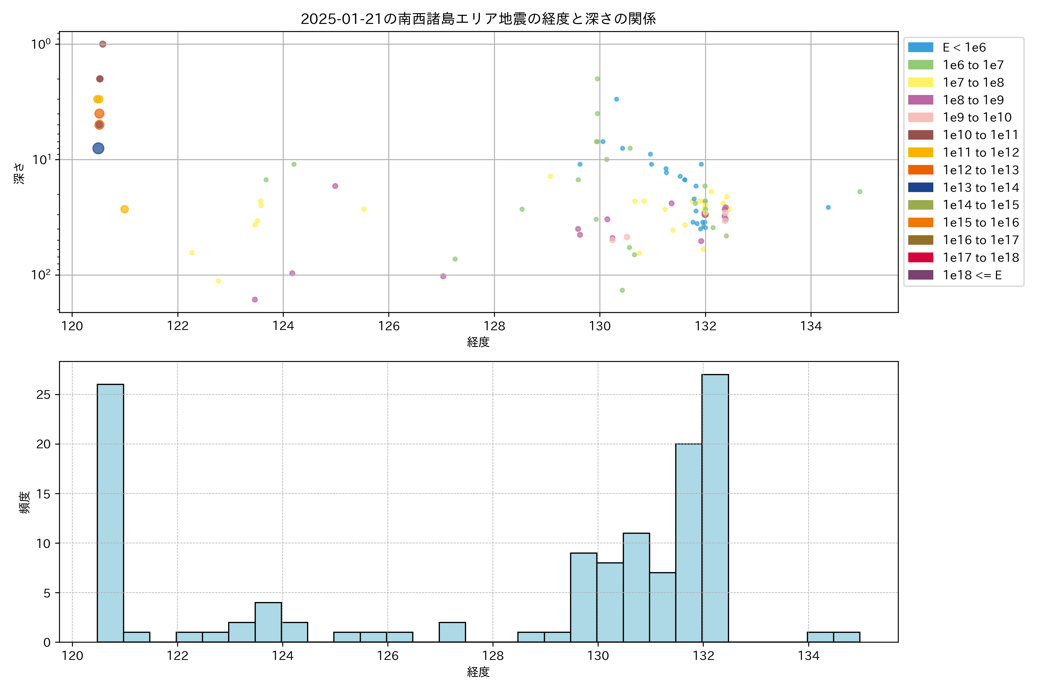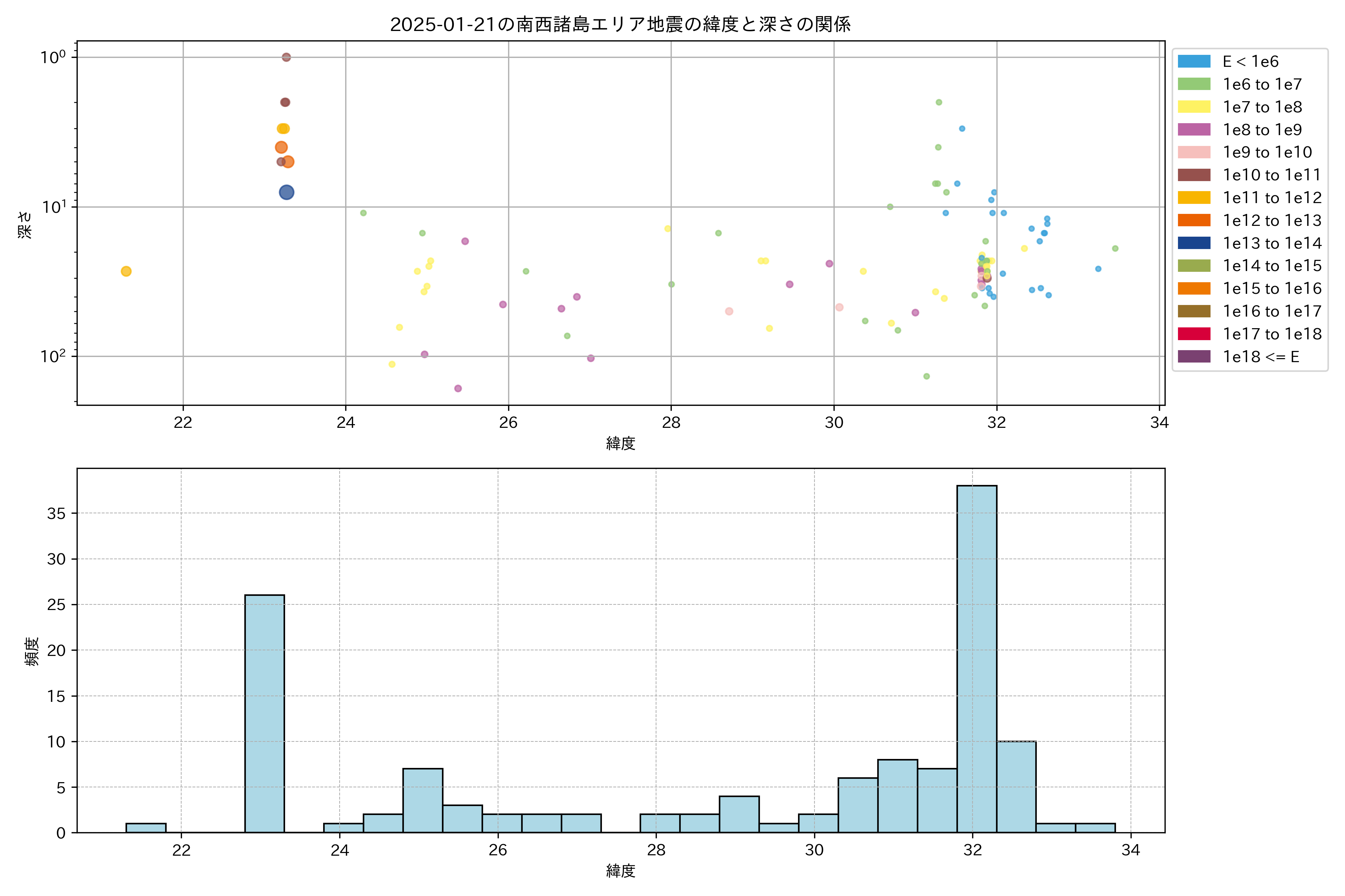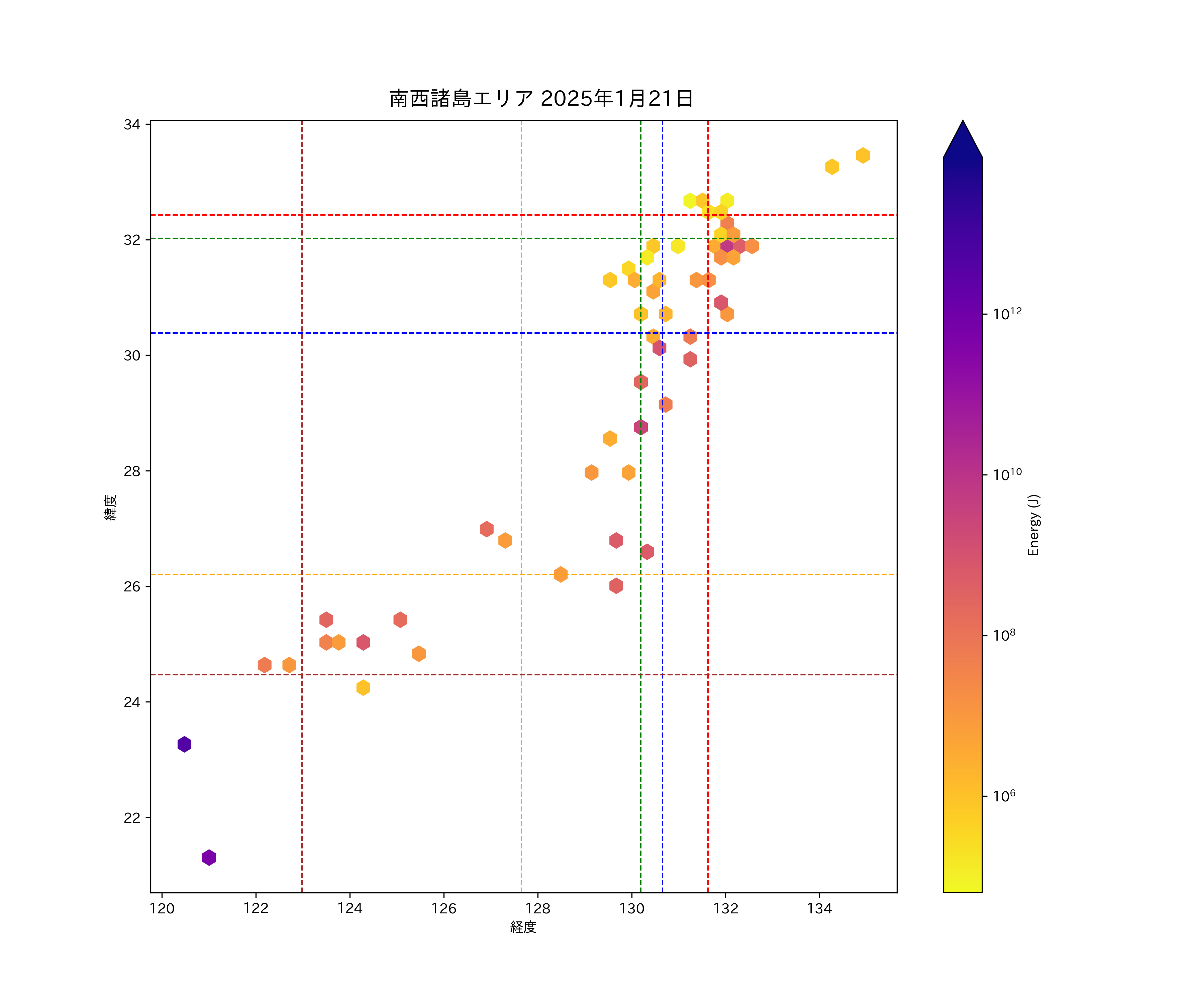 2025年01月21日南西諸島エリア震源マップ