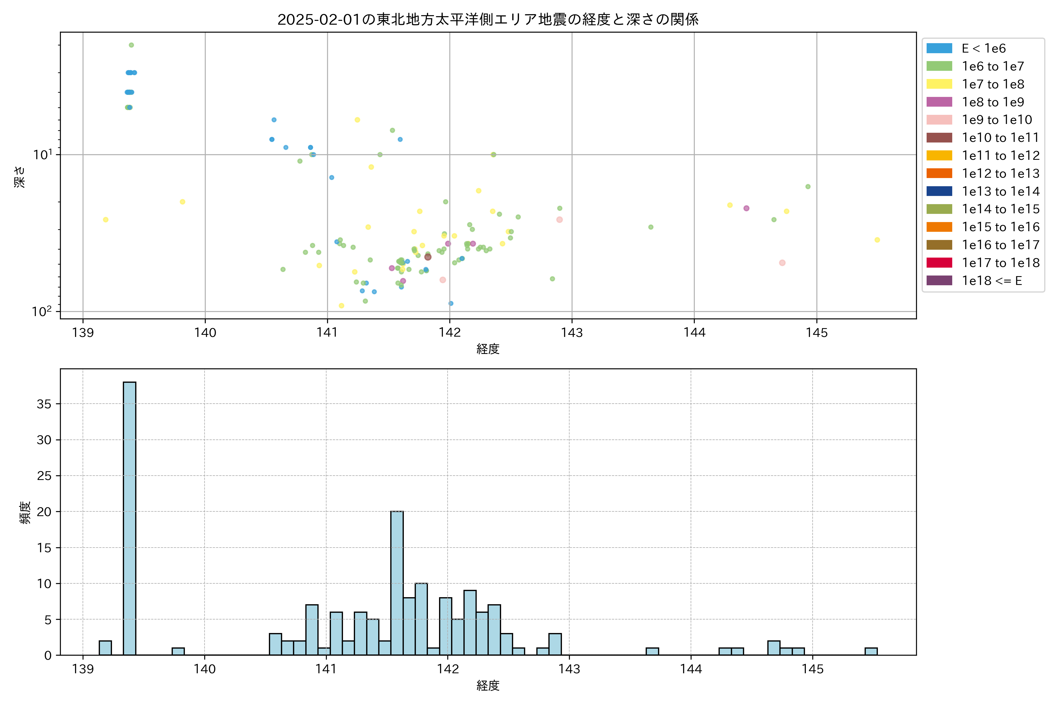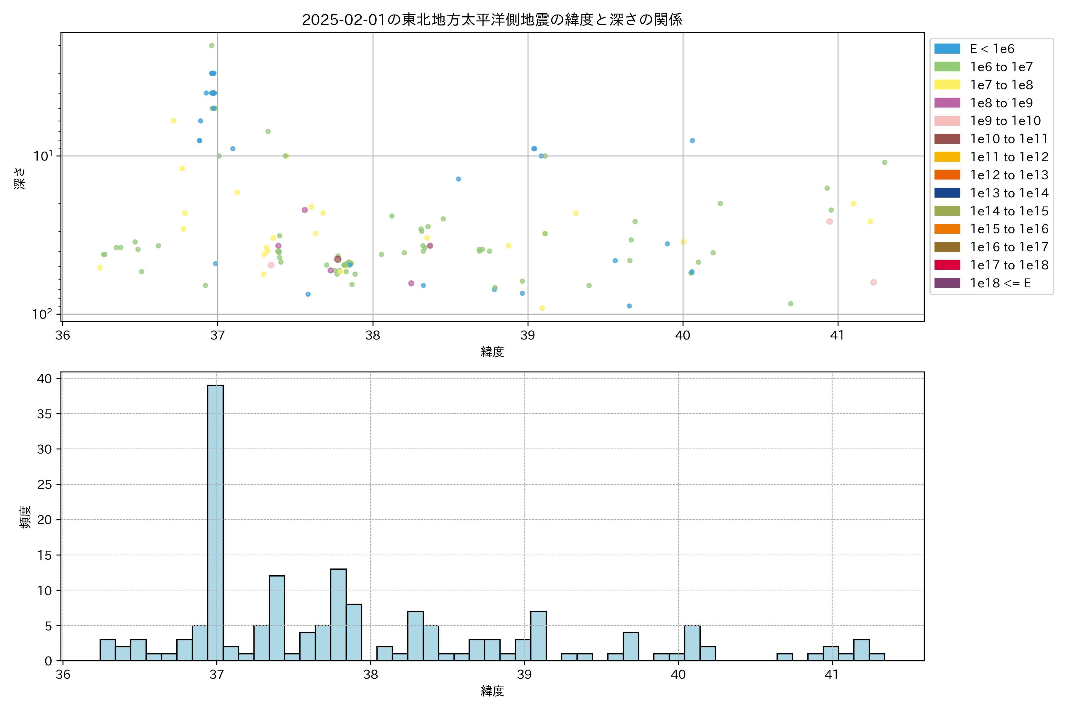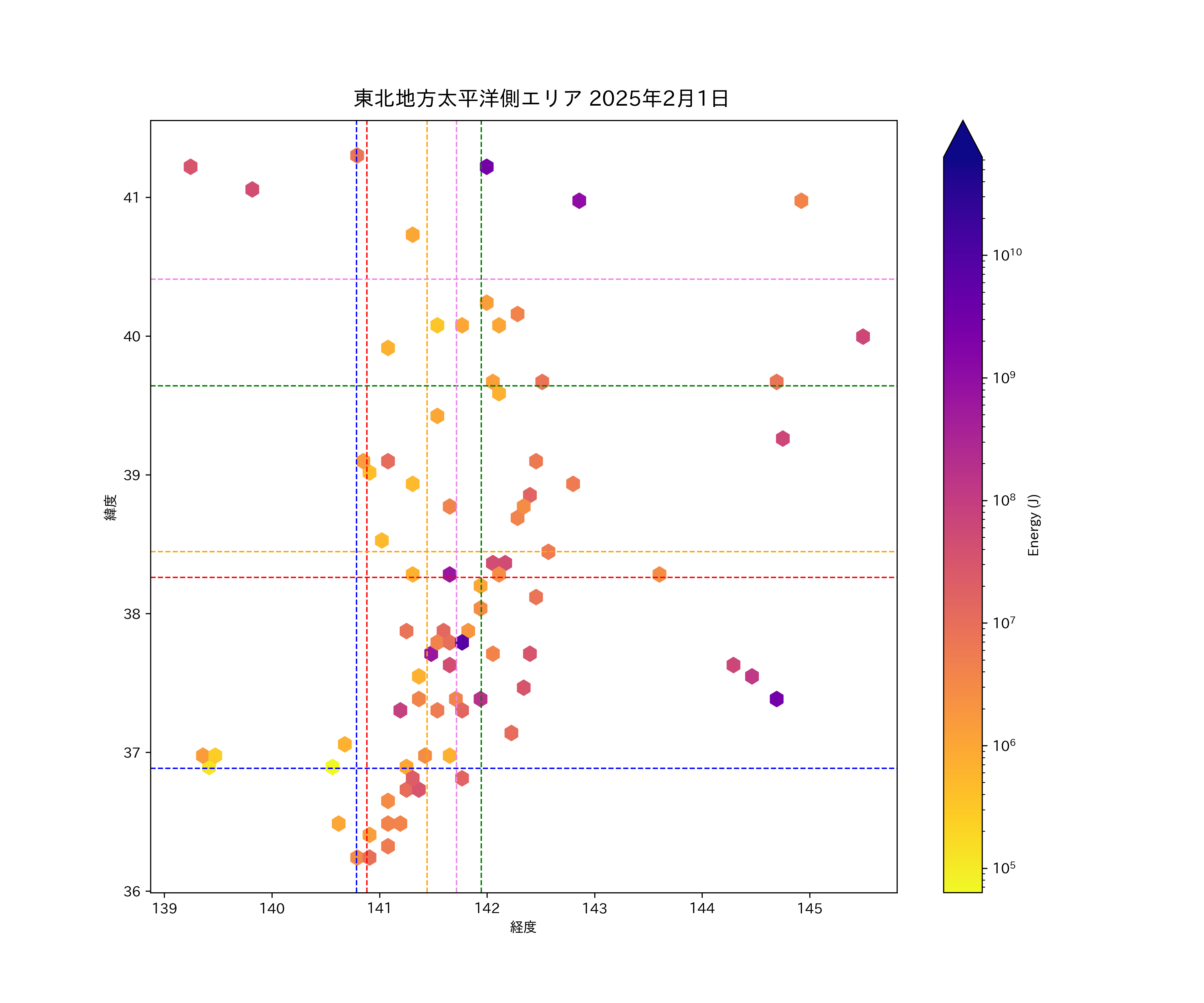 2025年02月01日東北太平洋側エリア震源マップ
