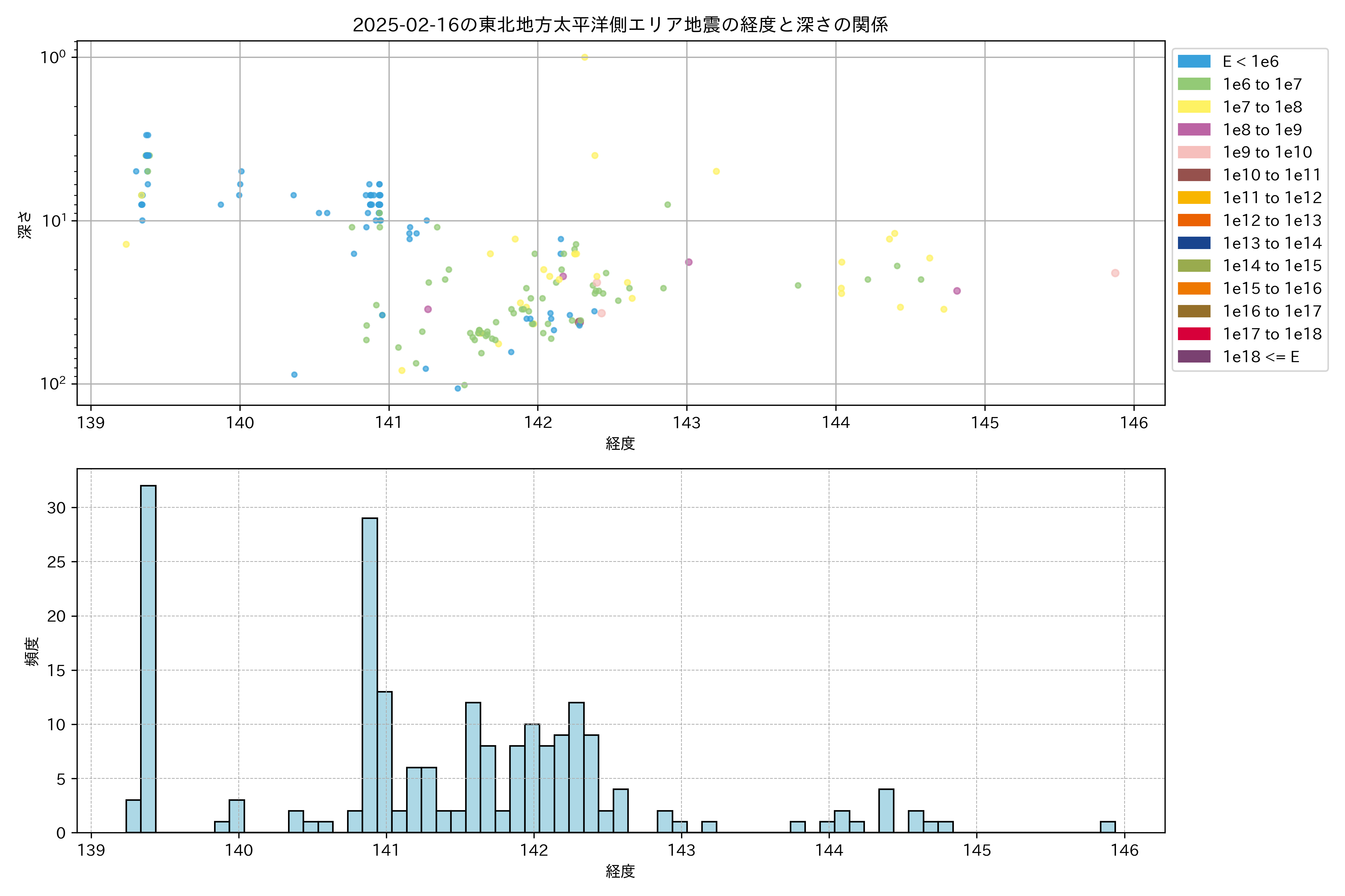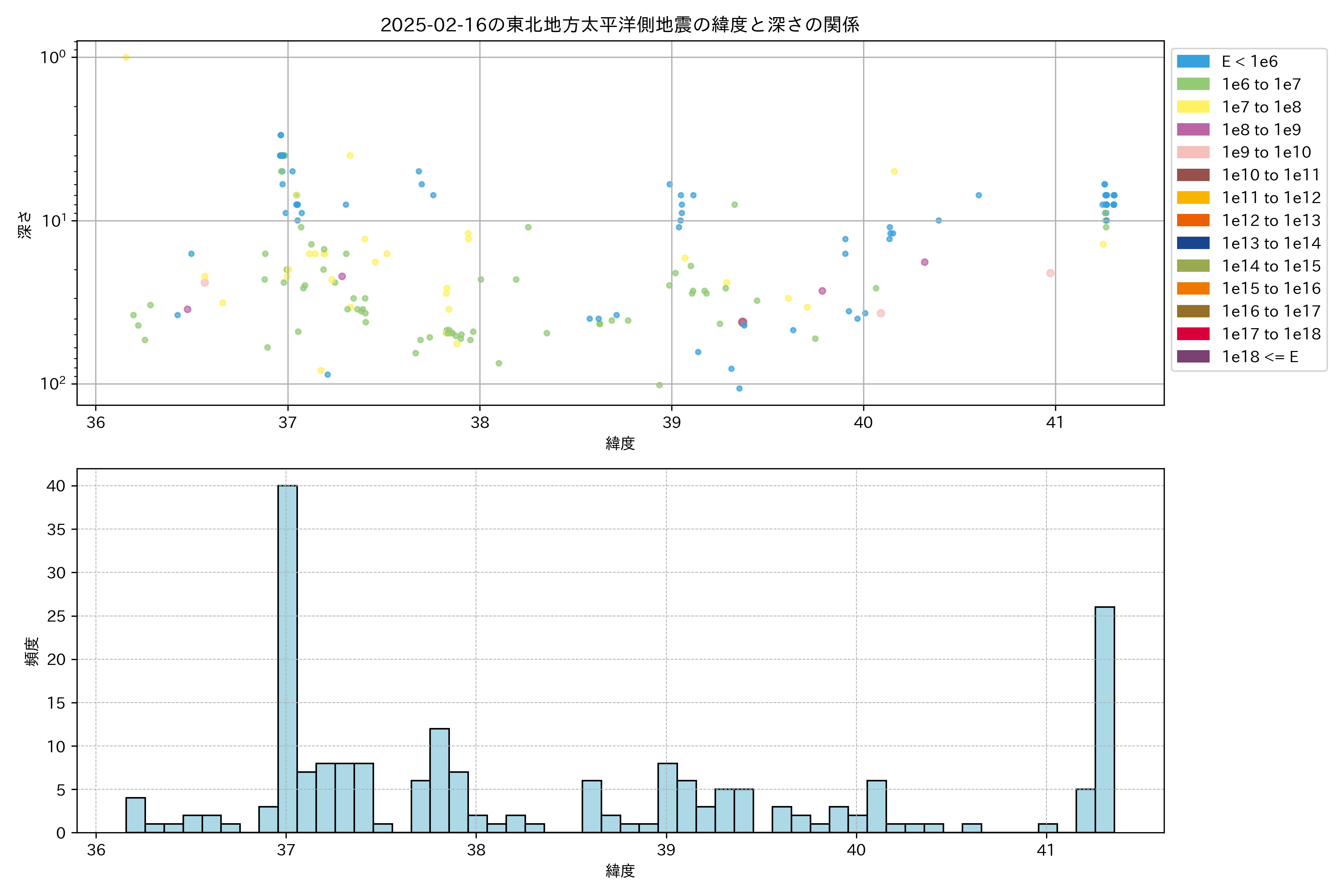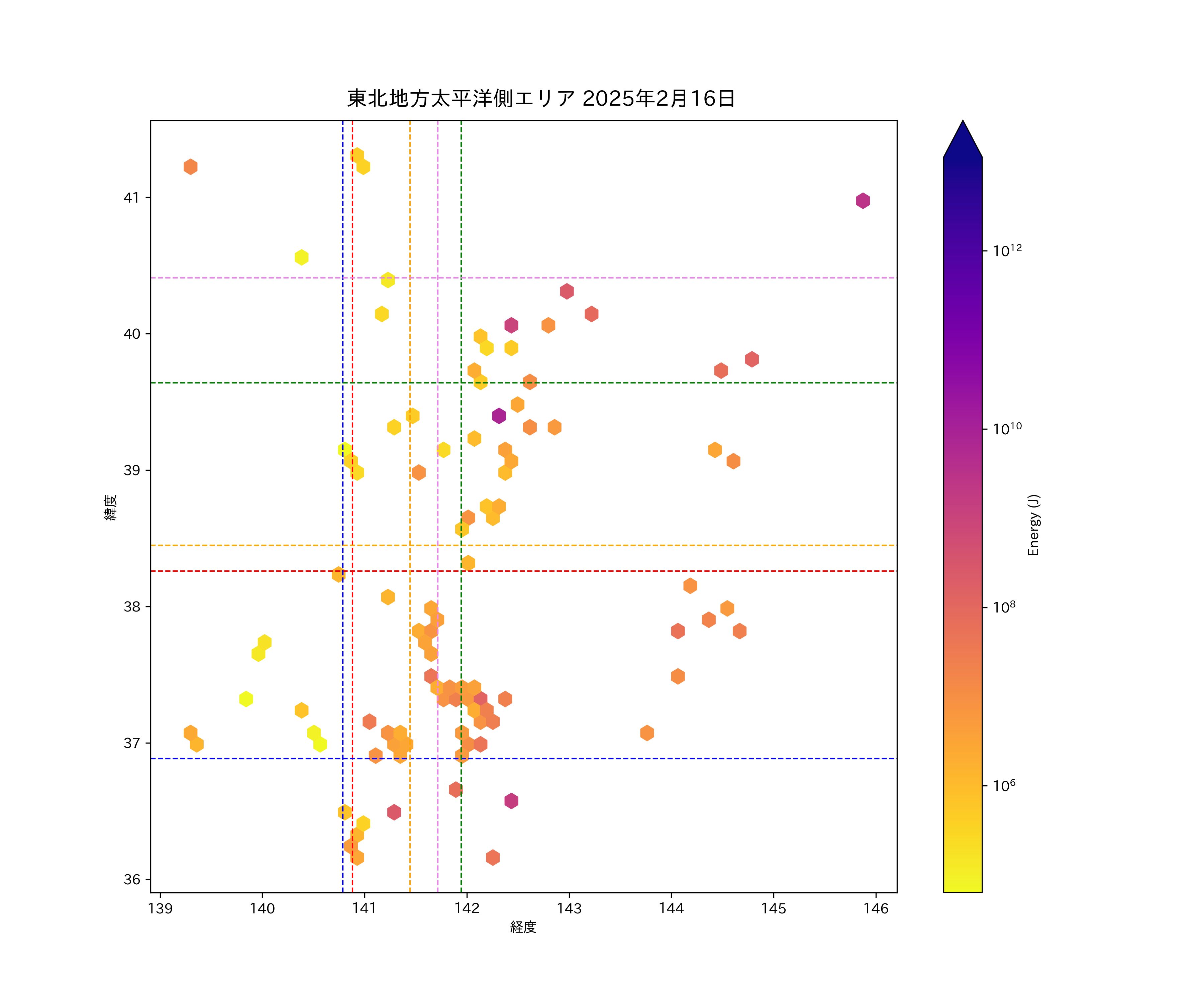 2025年02月16日東北太平洋側エリア震源マップ