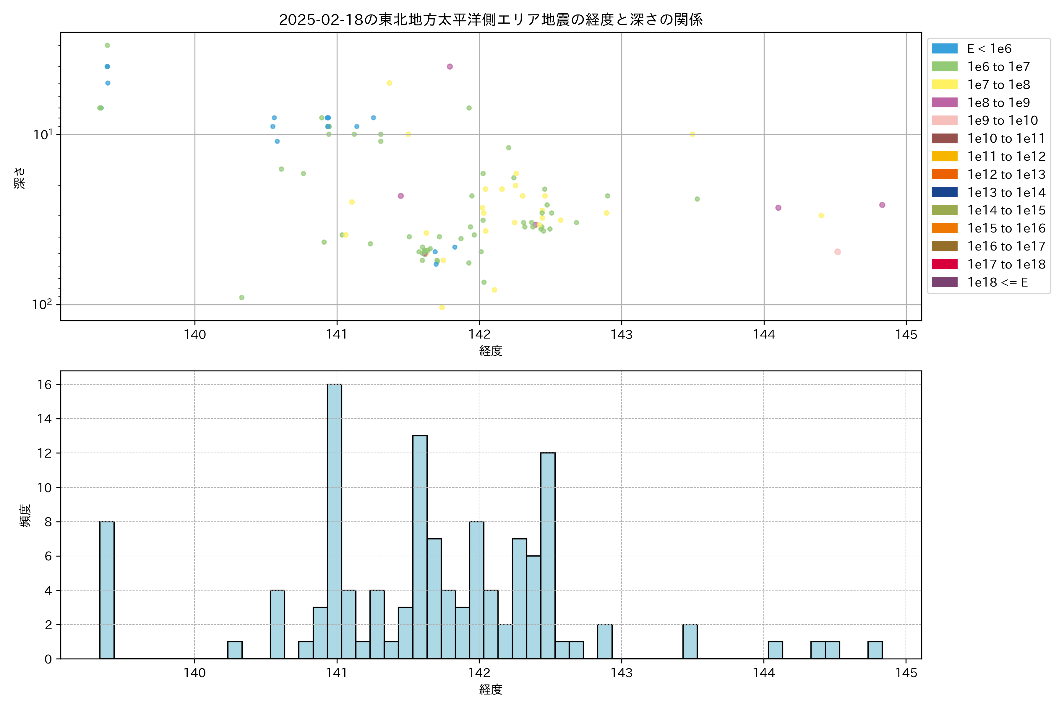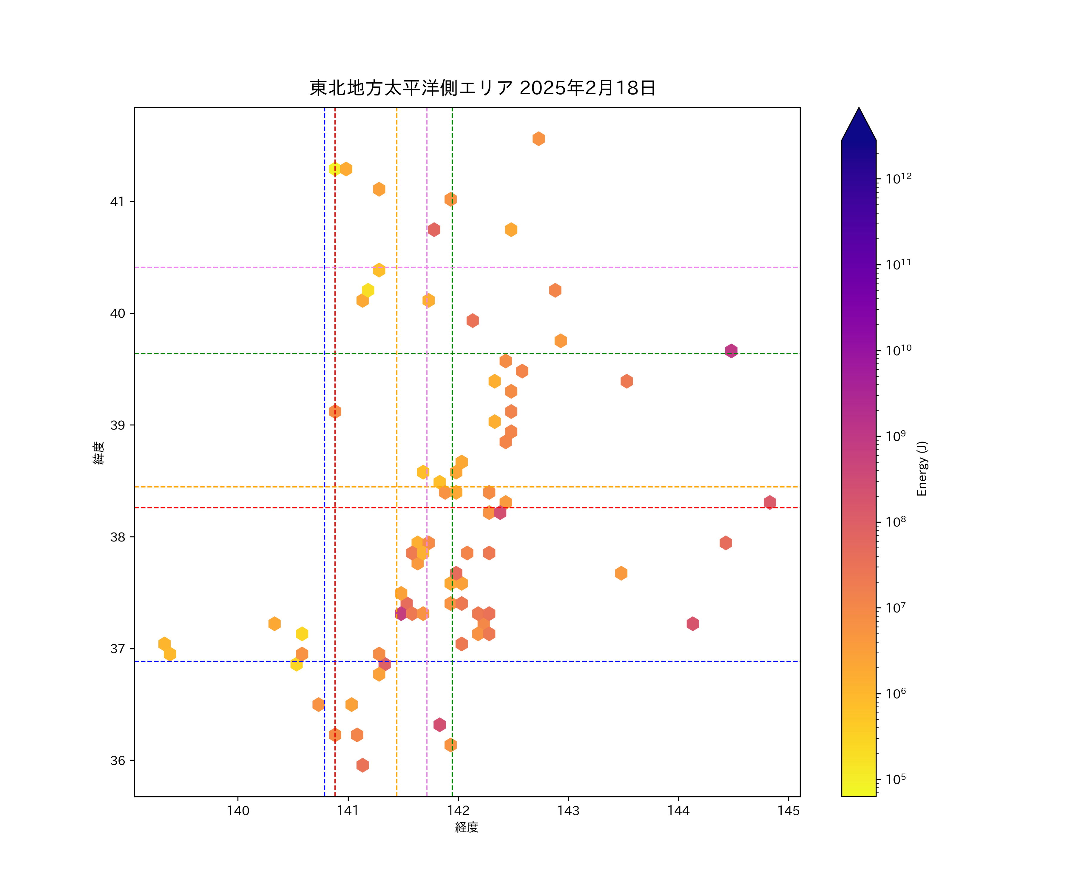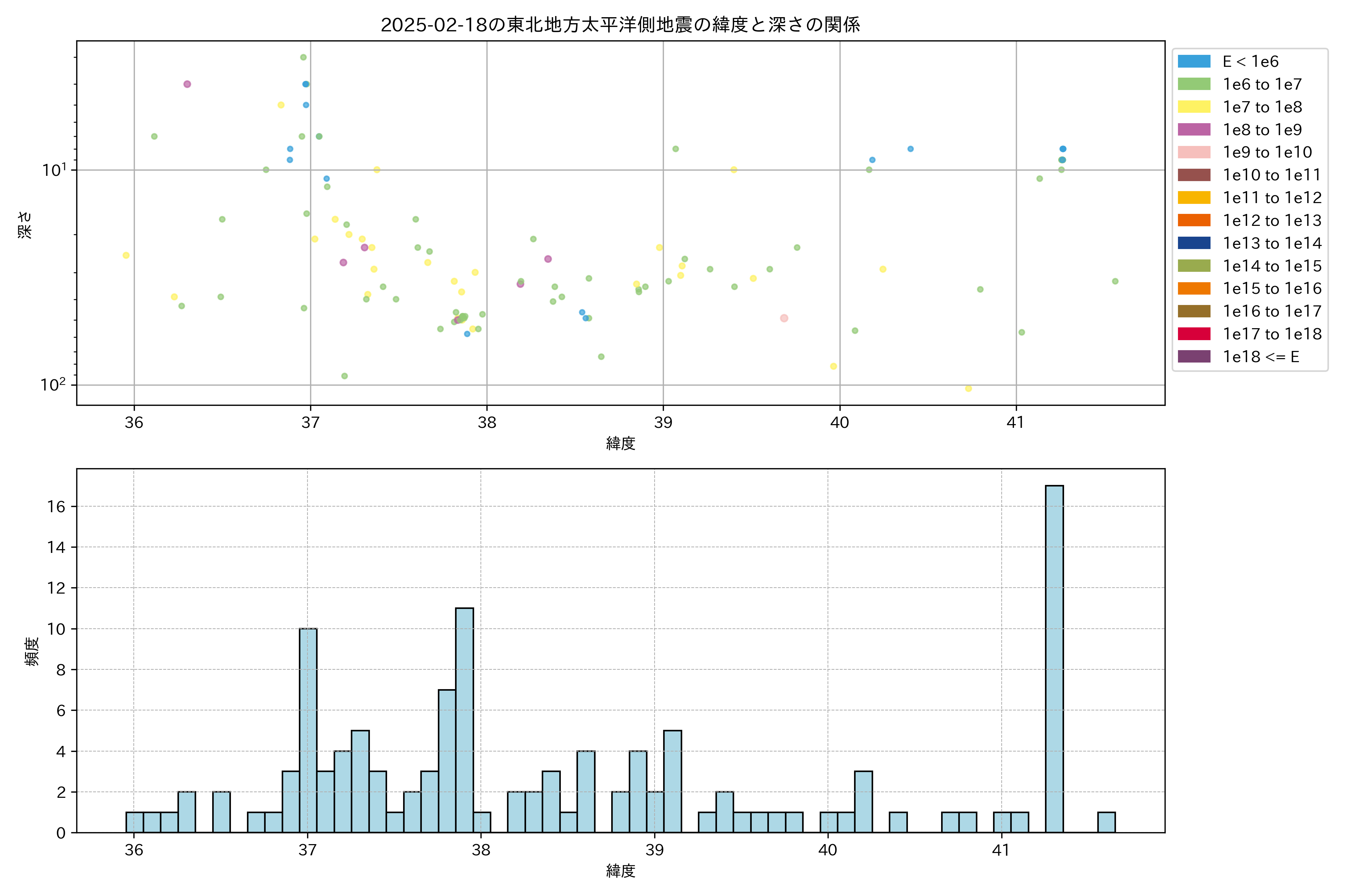 2025年02月18日東北太平洋側エリア震源マップ
