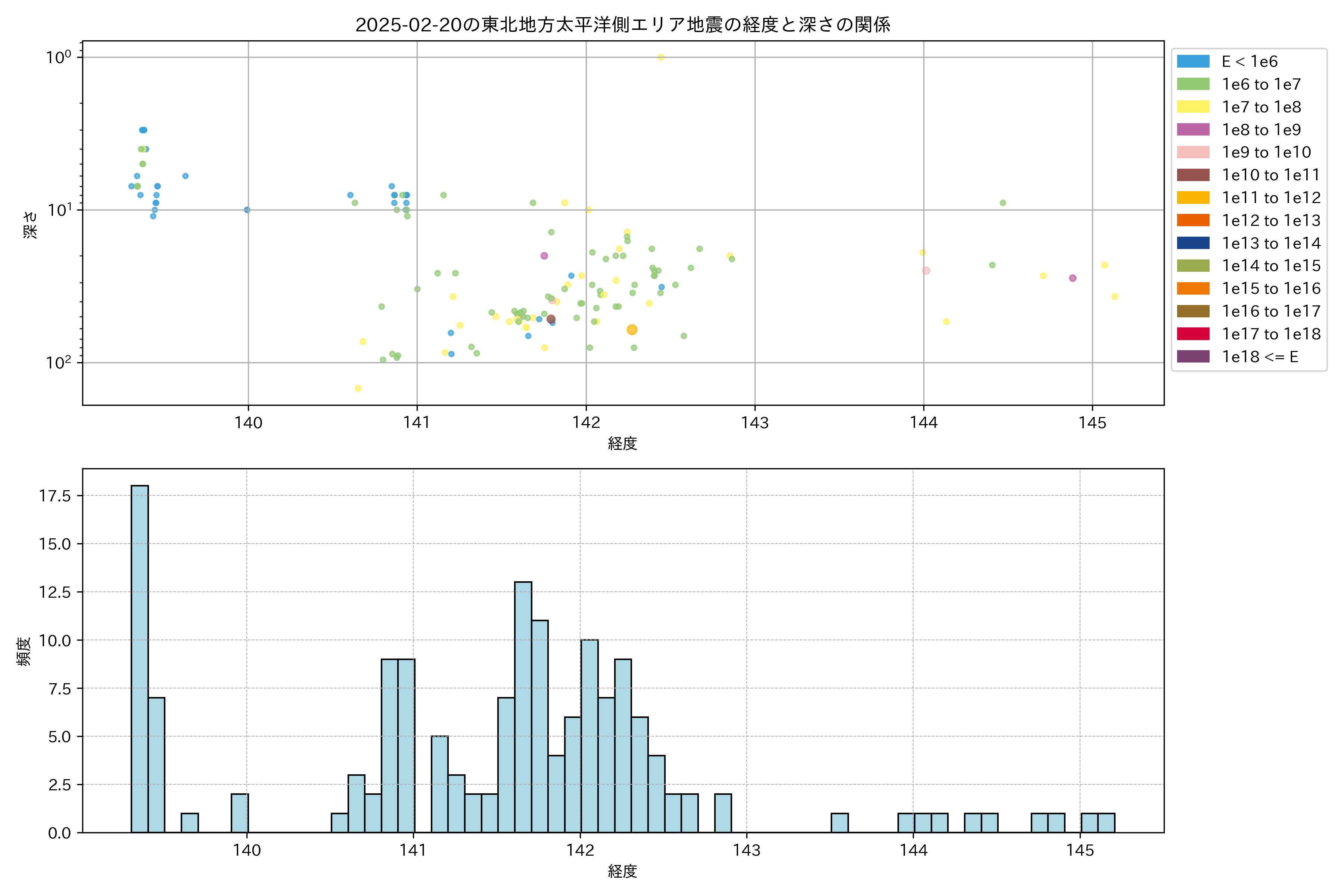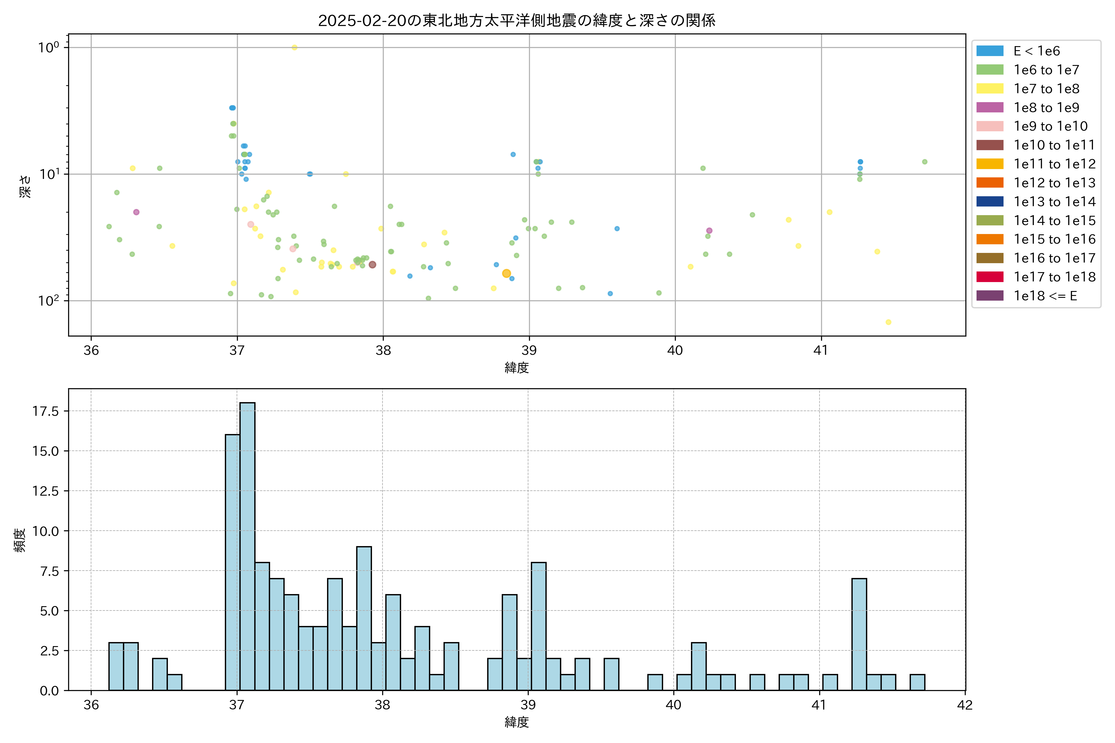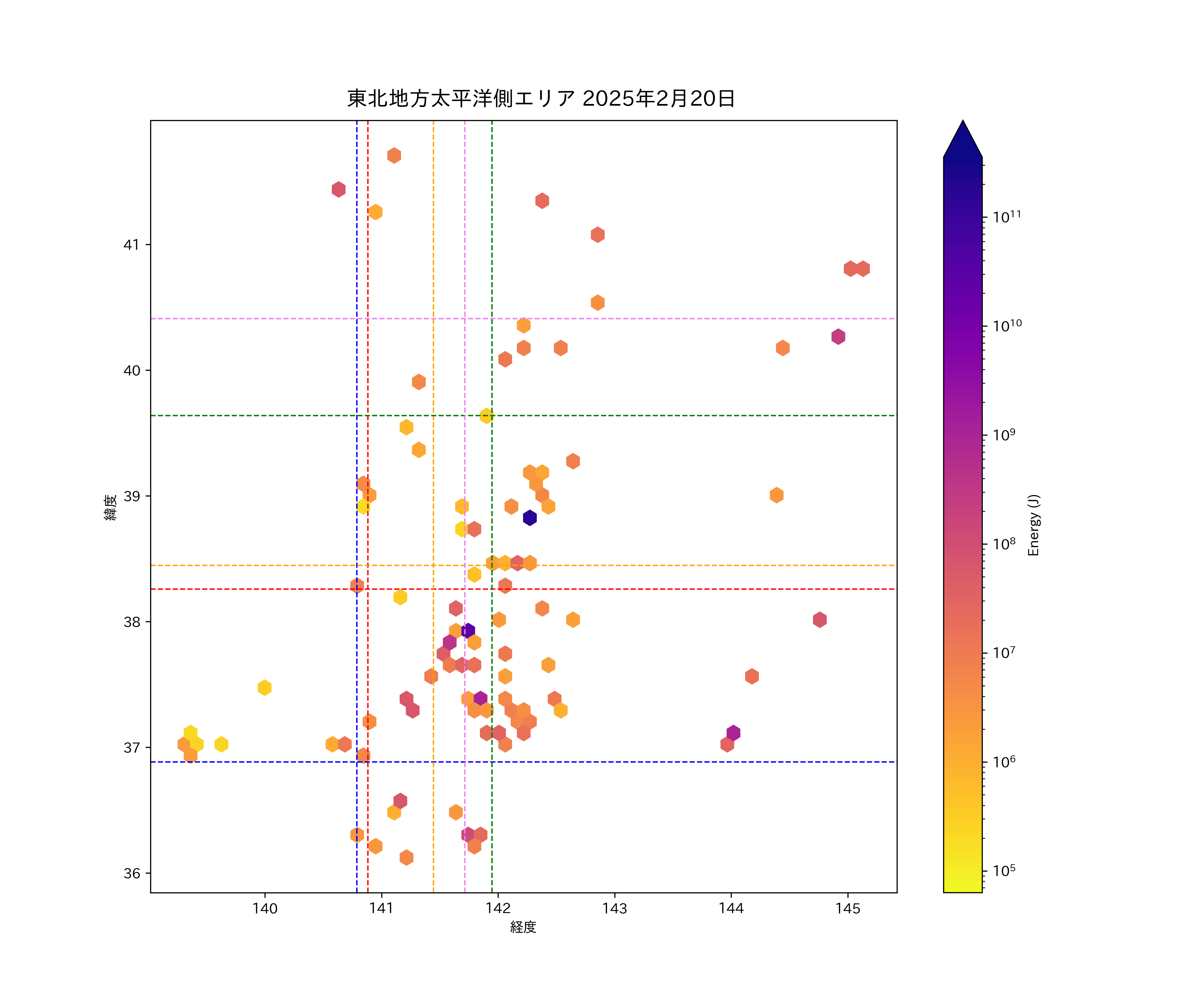 2025年02月20日東北太平洋側エリア震源マップ