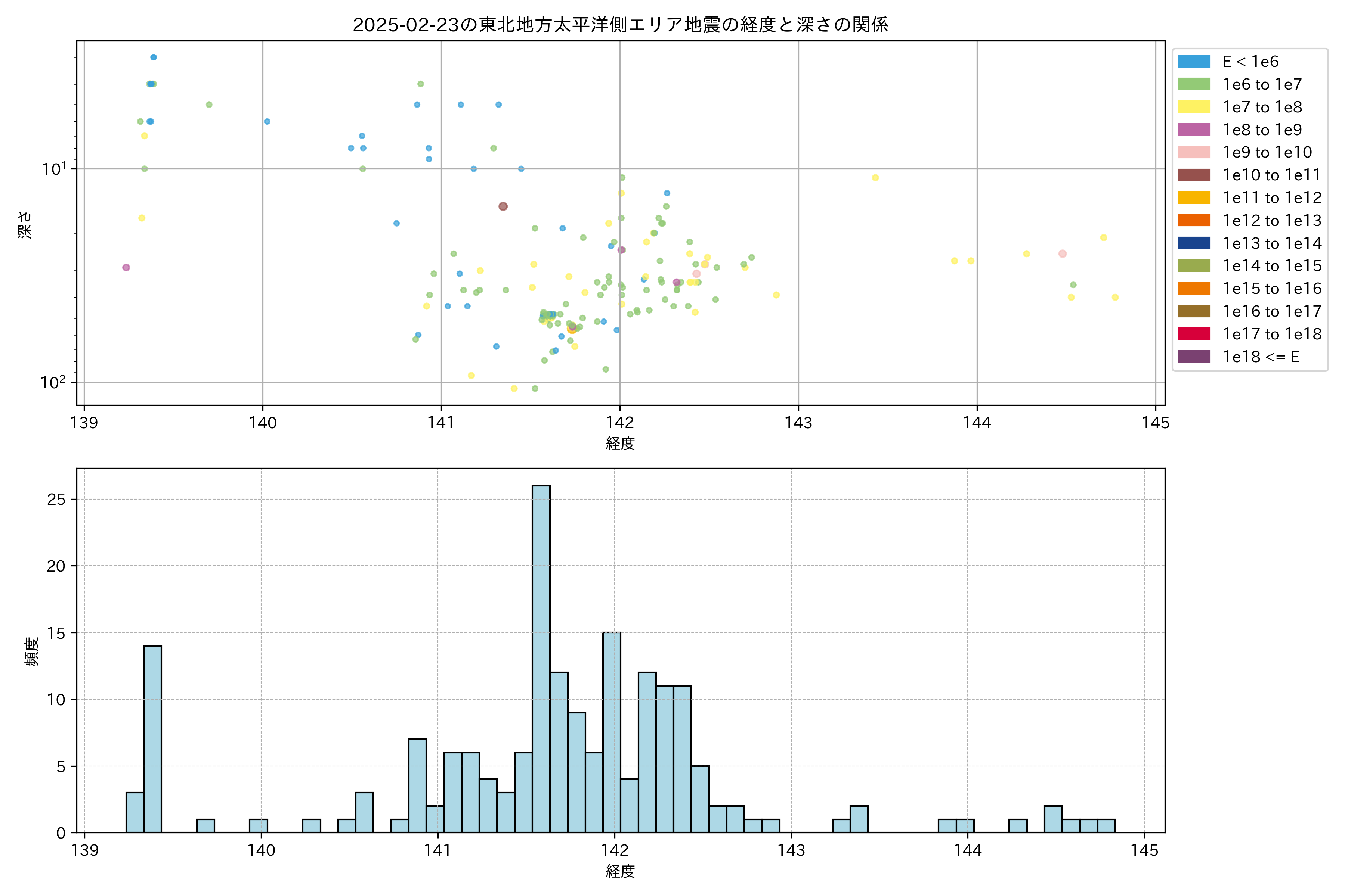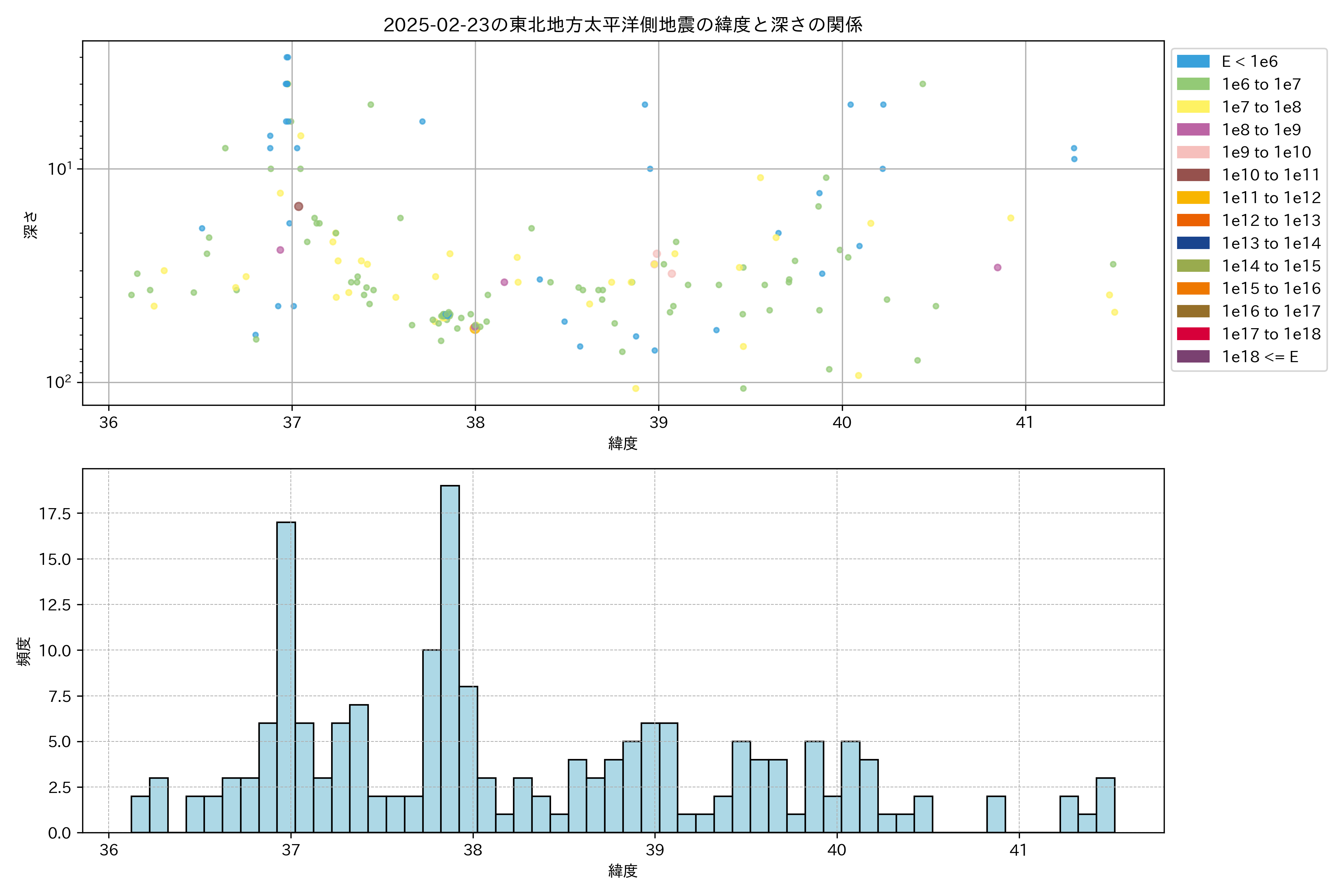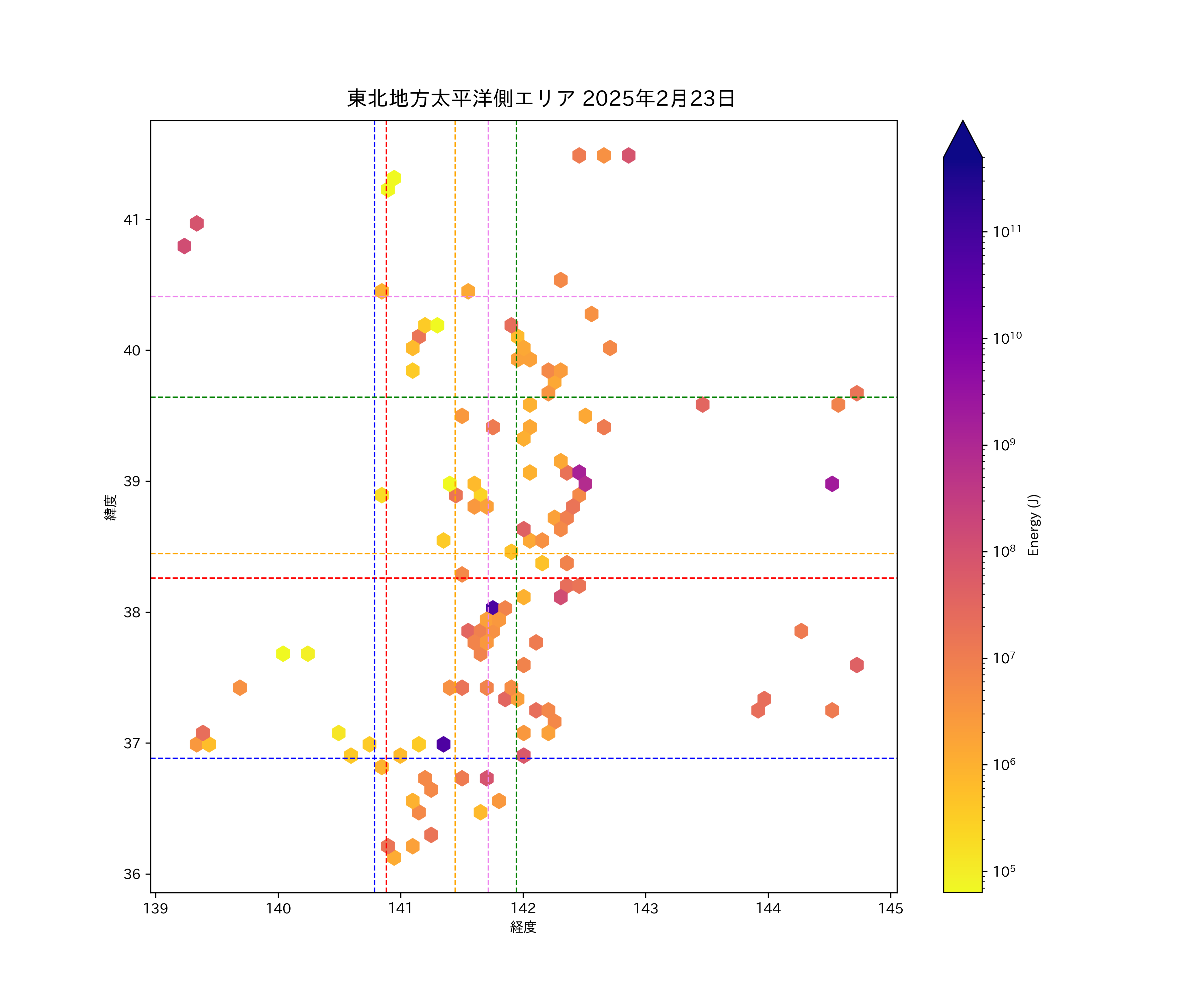 2025年02月23日東北太平洋側エリア震源マップ