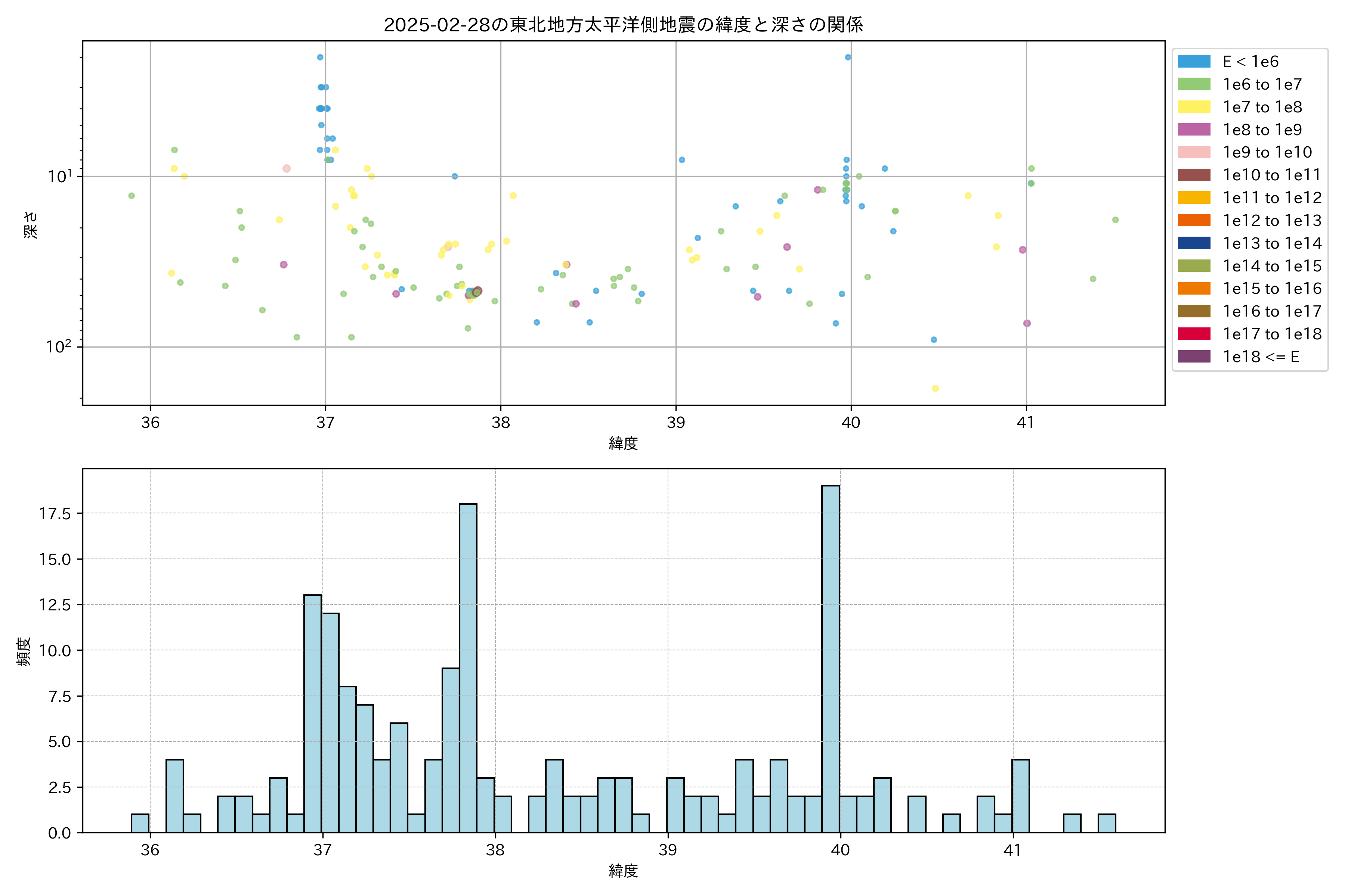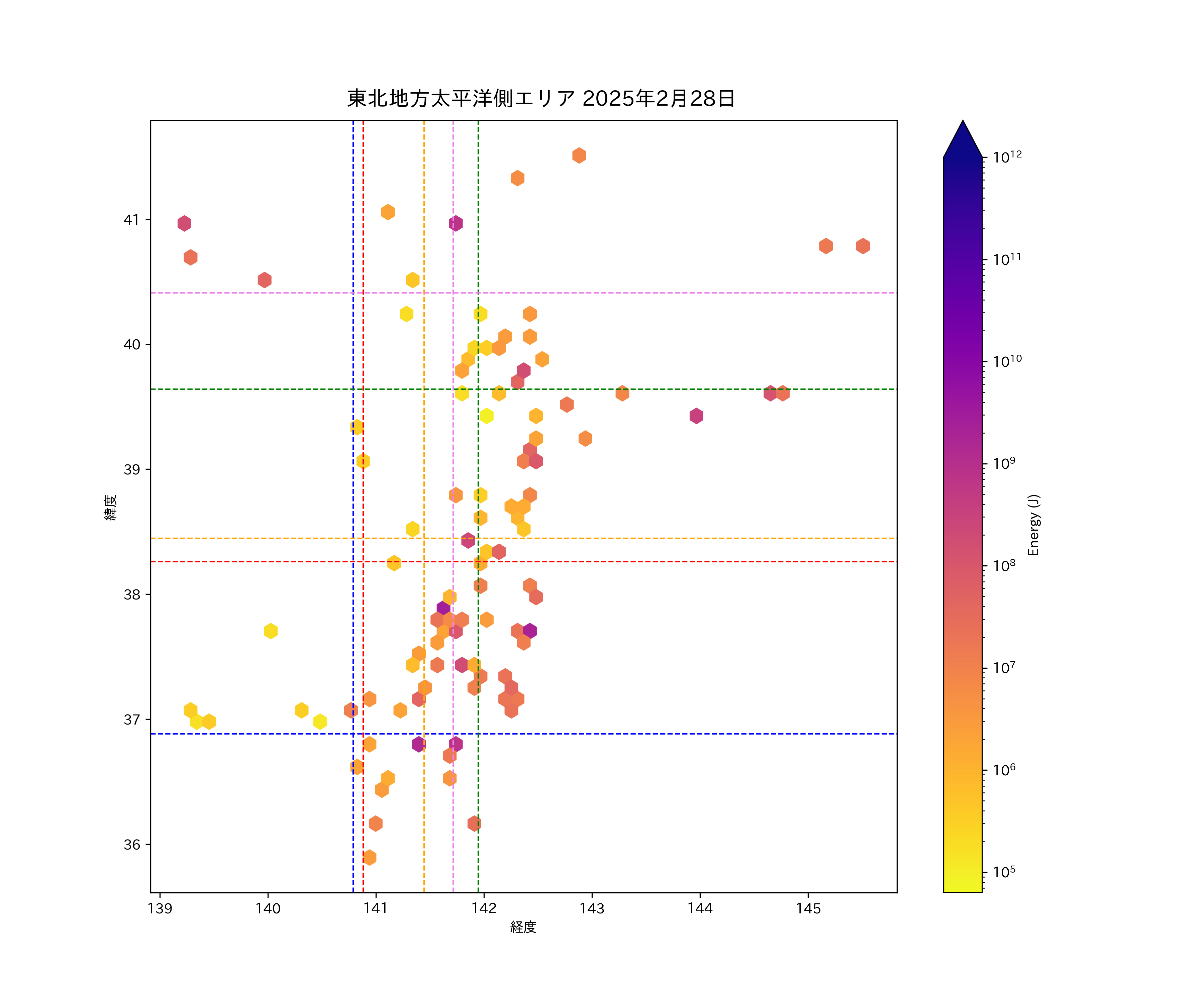2025年02月28日東北太平洋側エリア震源マップ