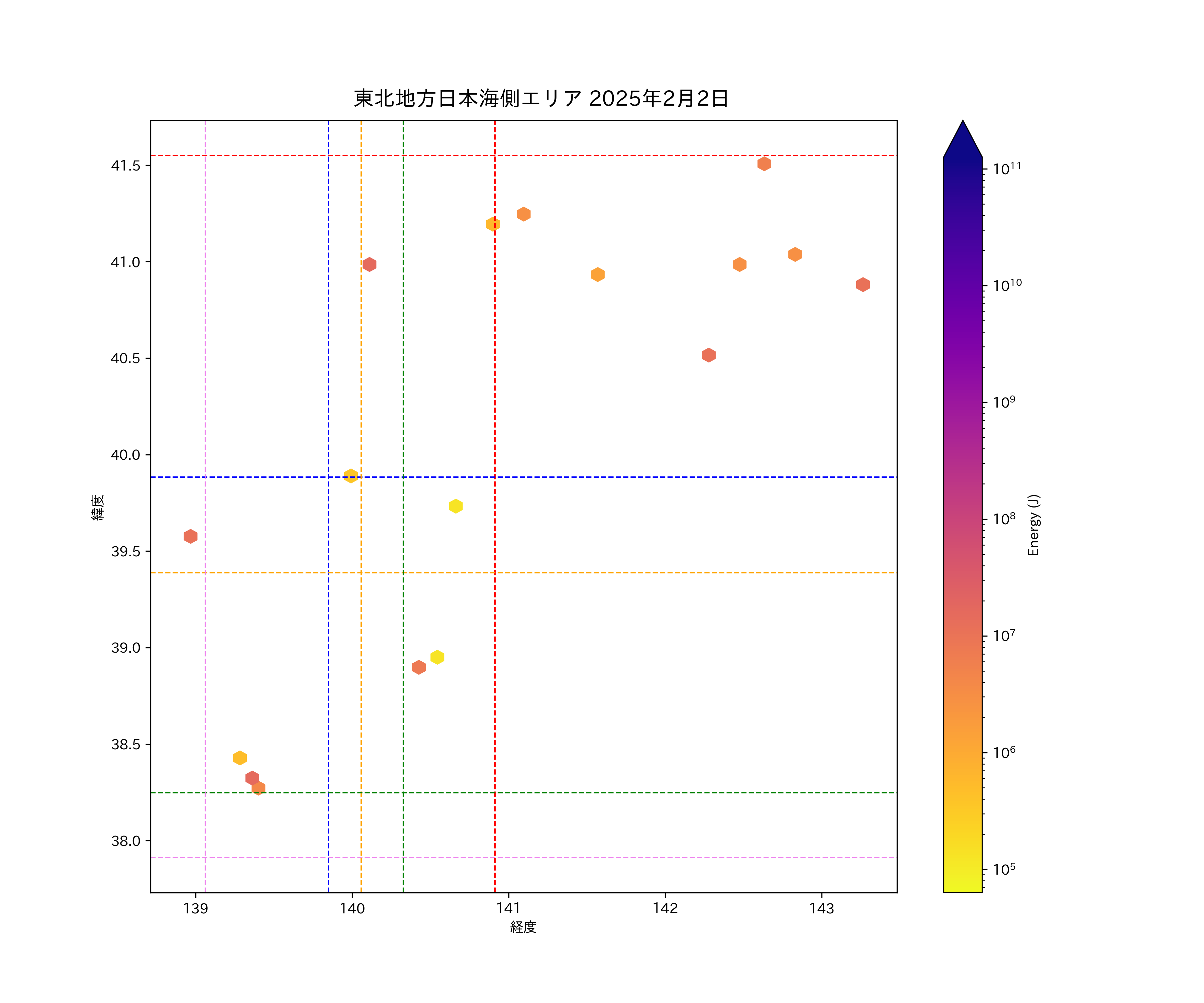 2025年02月02日東北日本海側エリア震源マップ