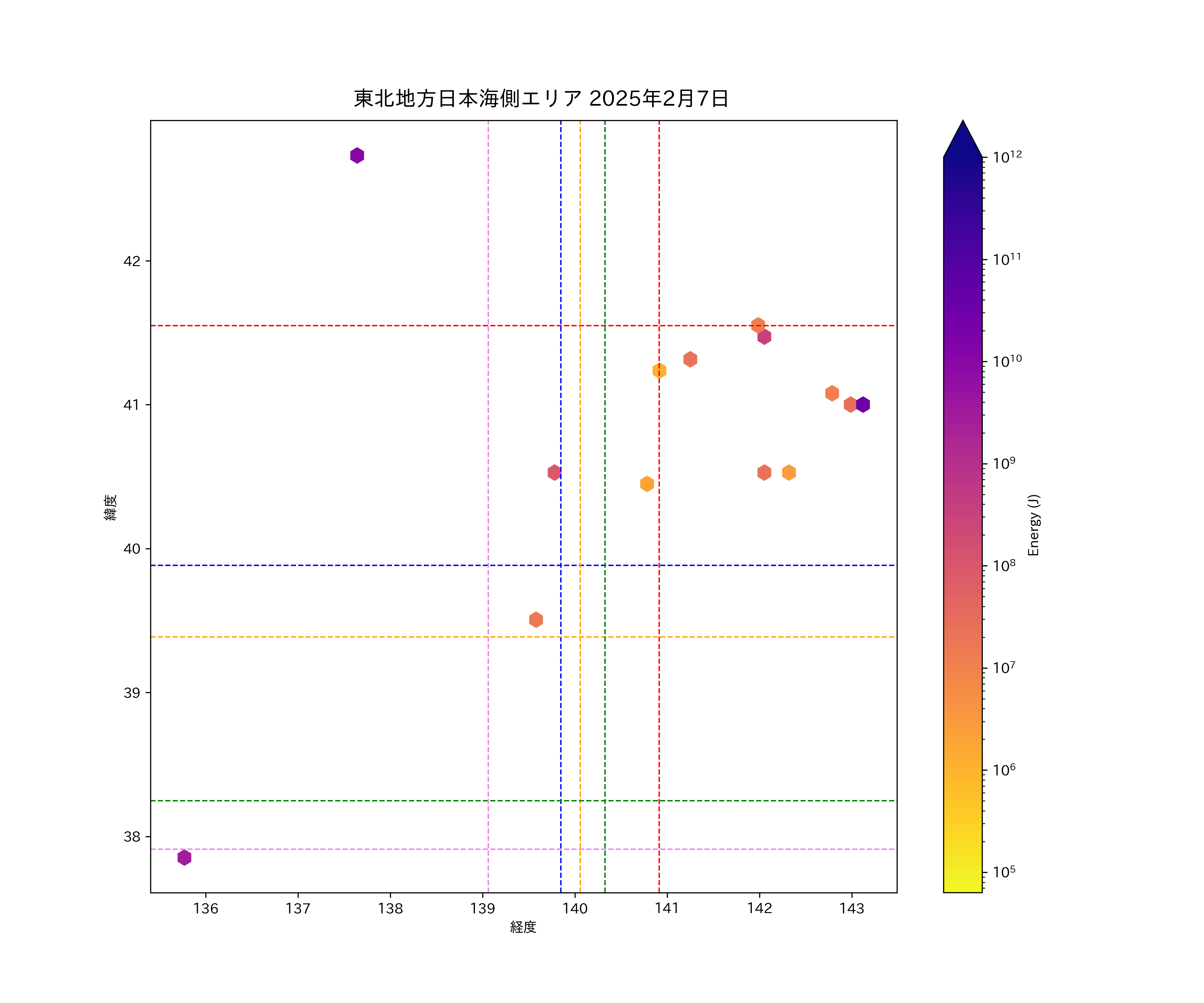 2025年02月07日東北日本海側エリア震源マップ