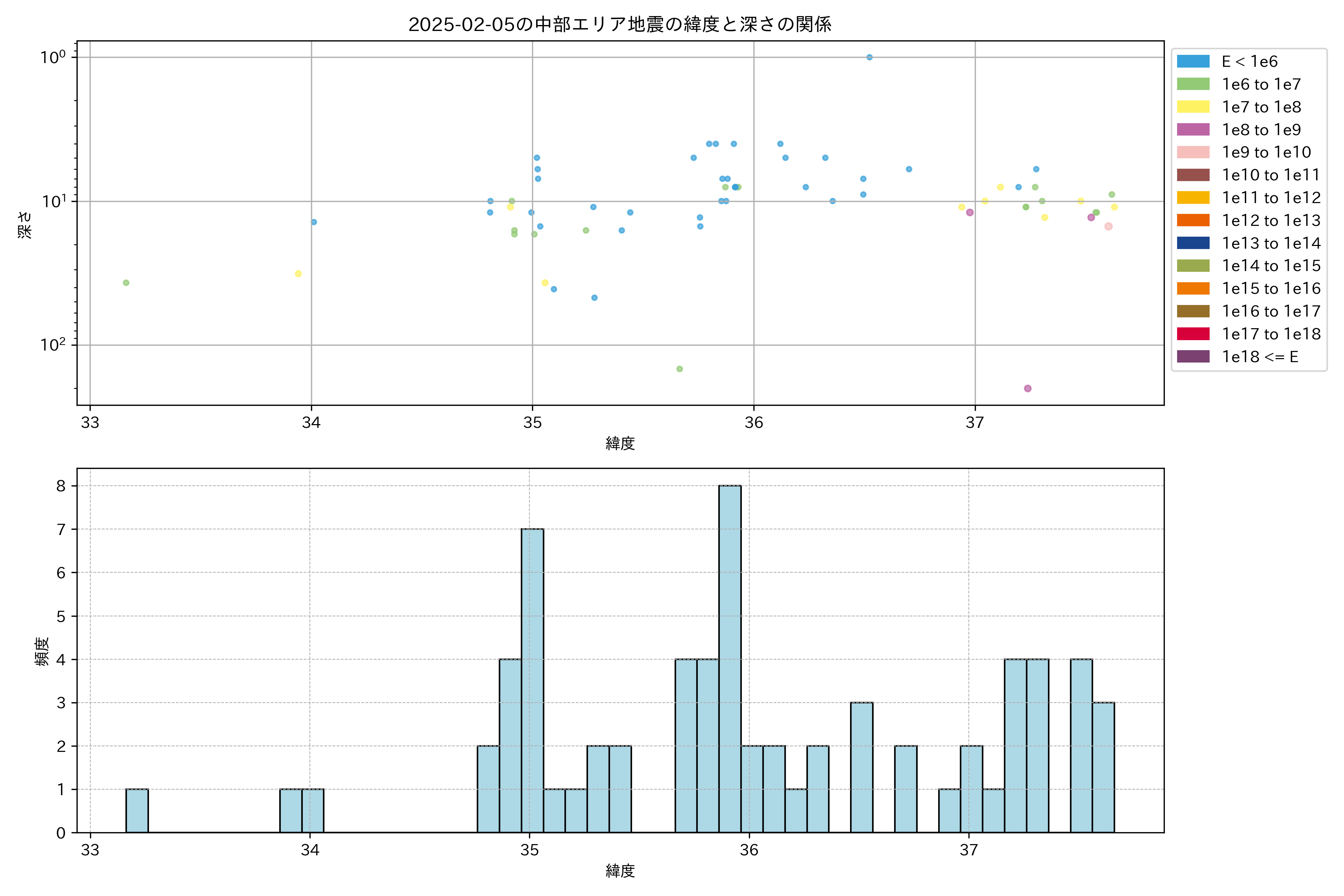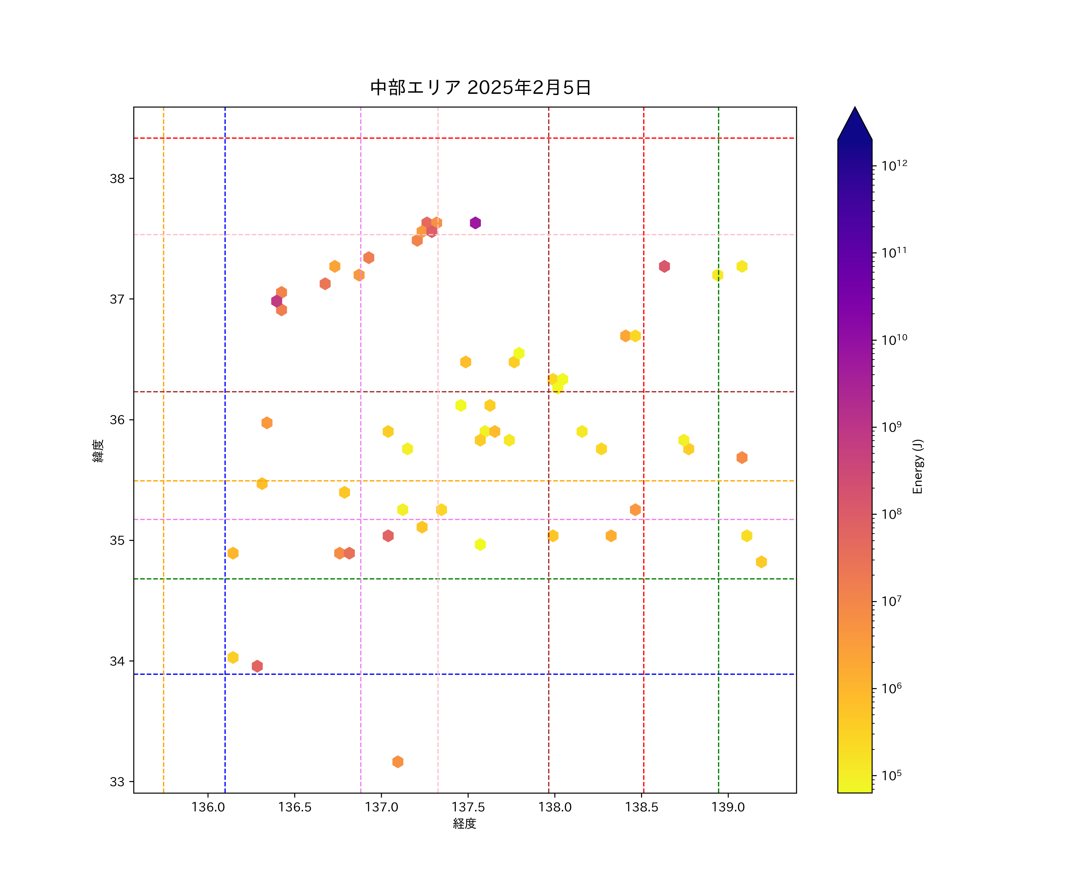 2025年02月05日中部エリア震源マップ