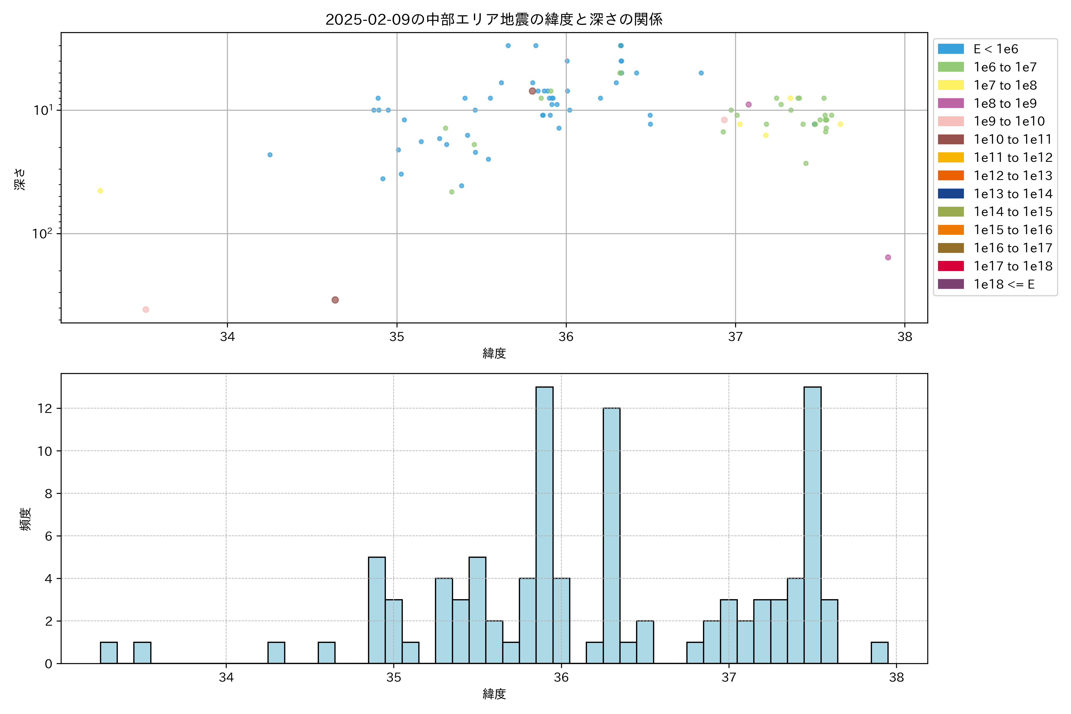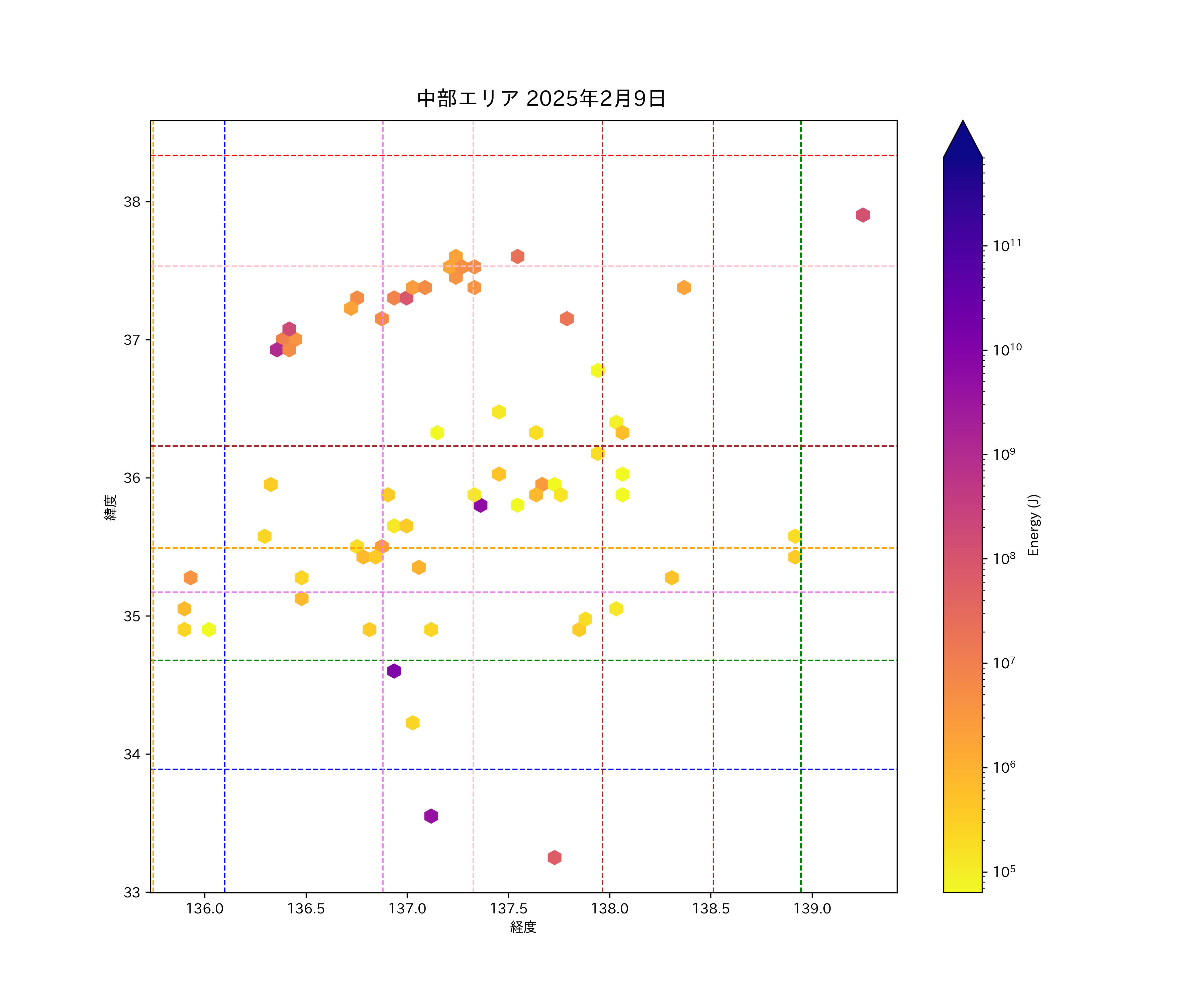 2025年02月09日中部エリア震源マップ