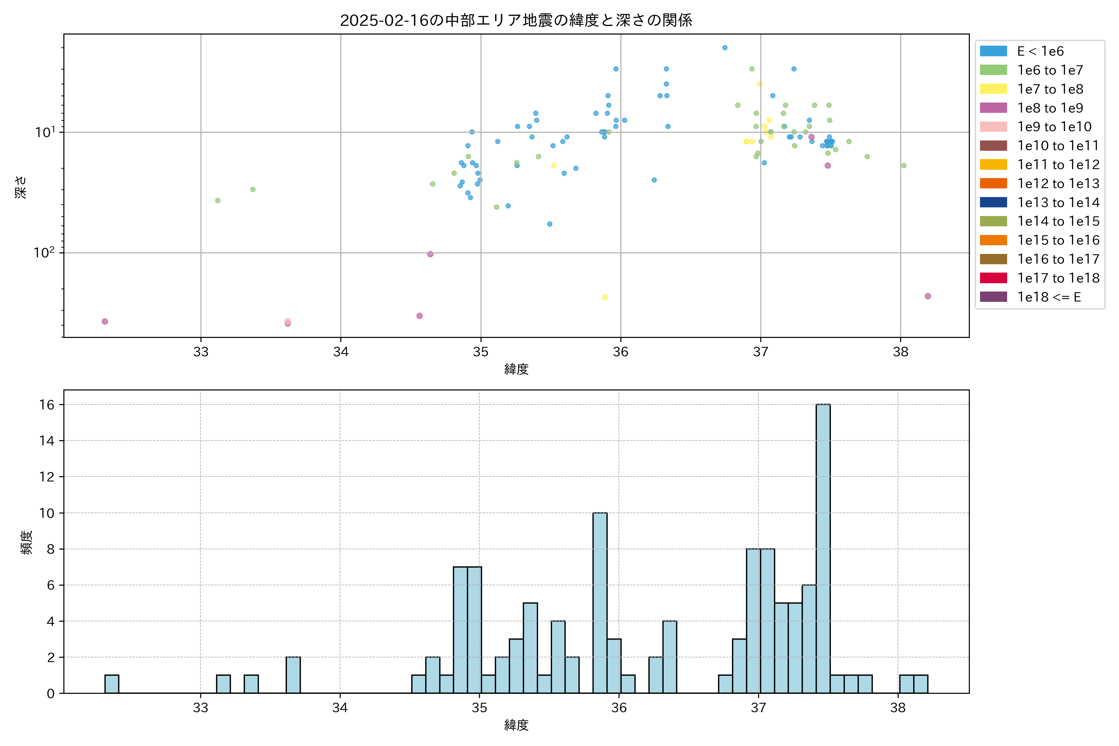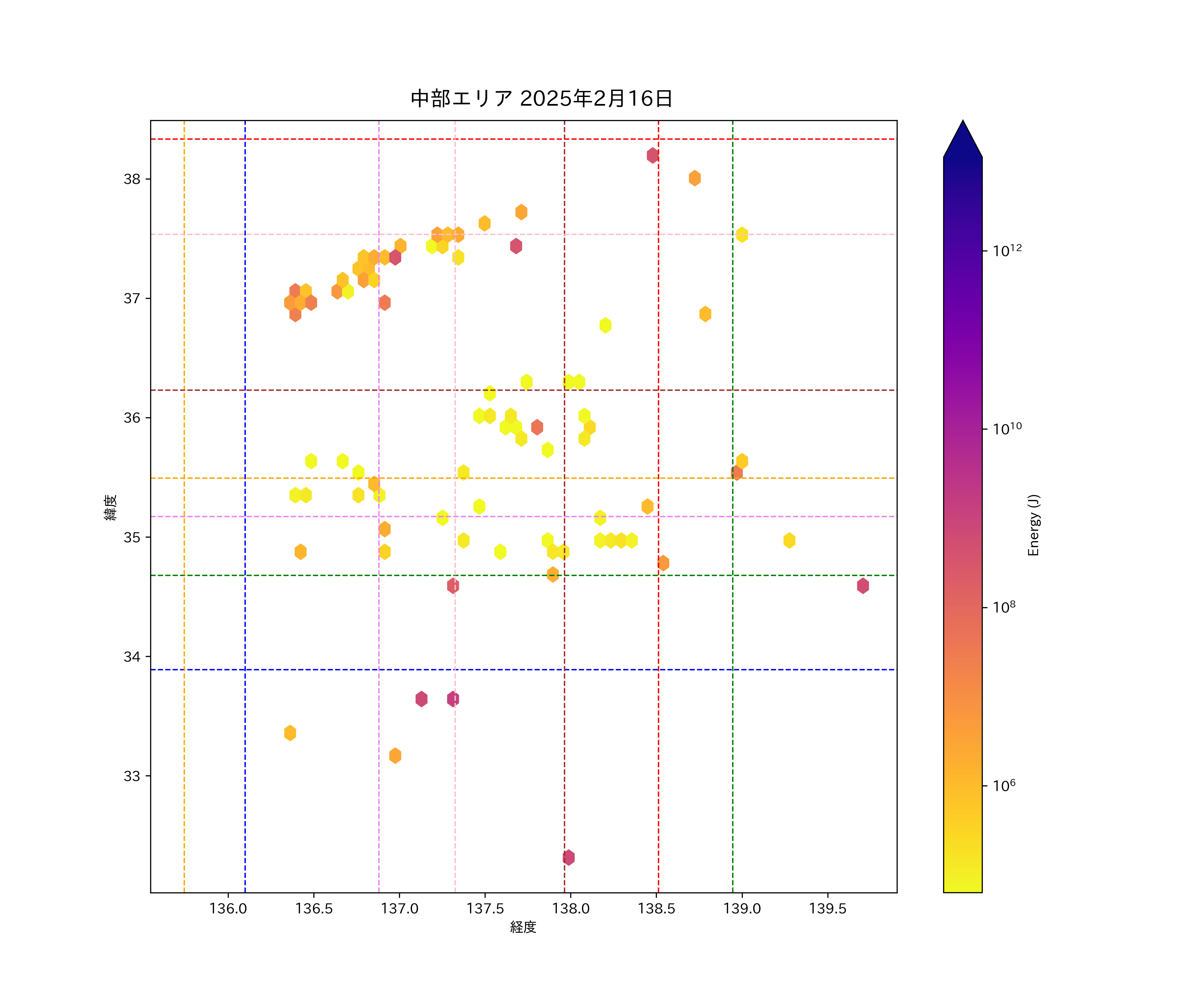 2025年02月16日中部エリア震源マップ