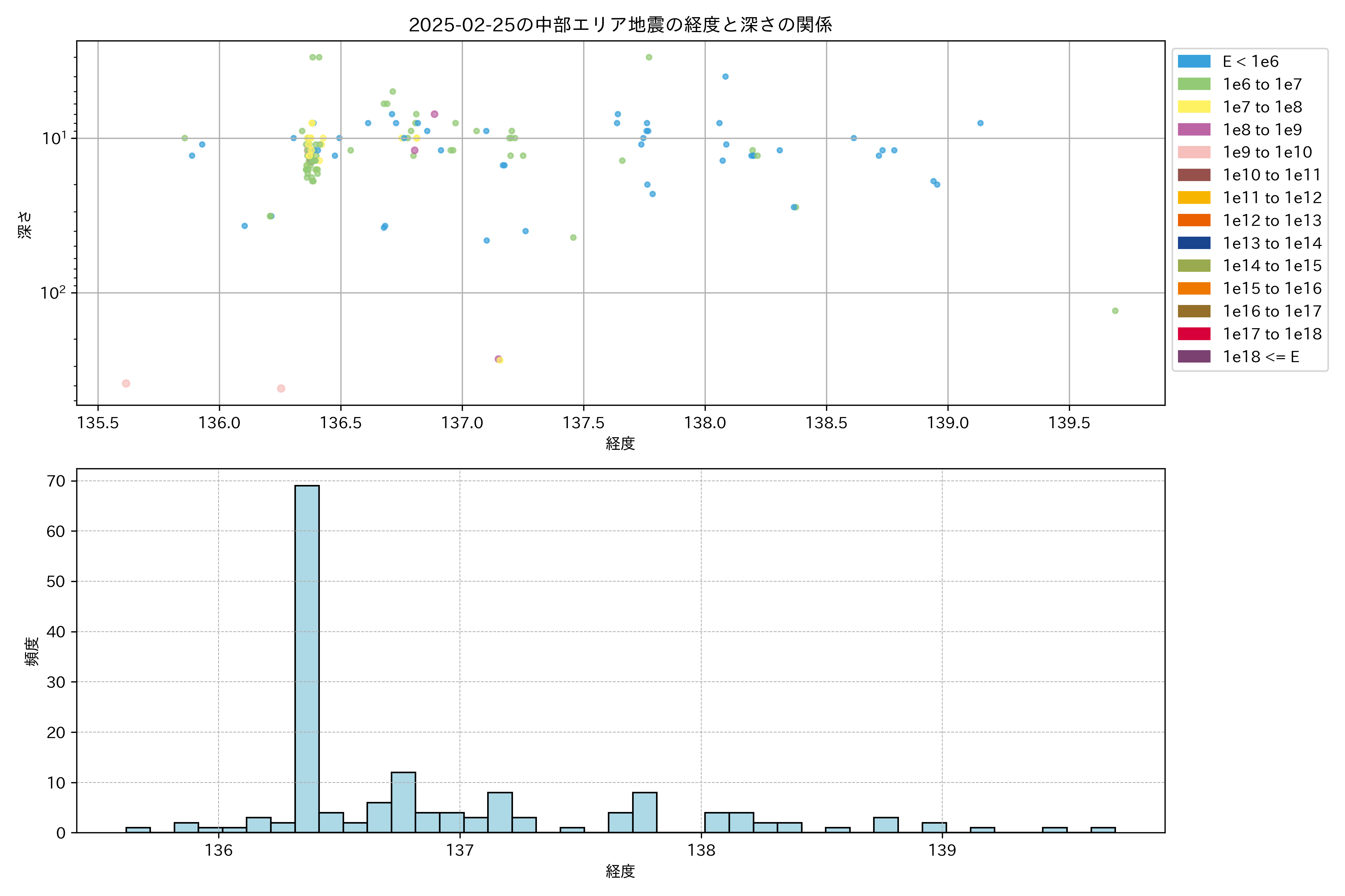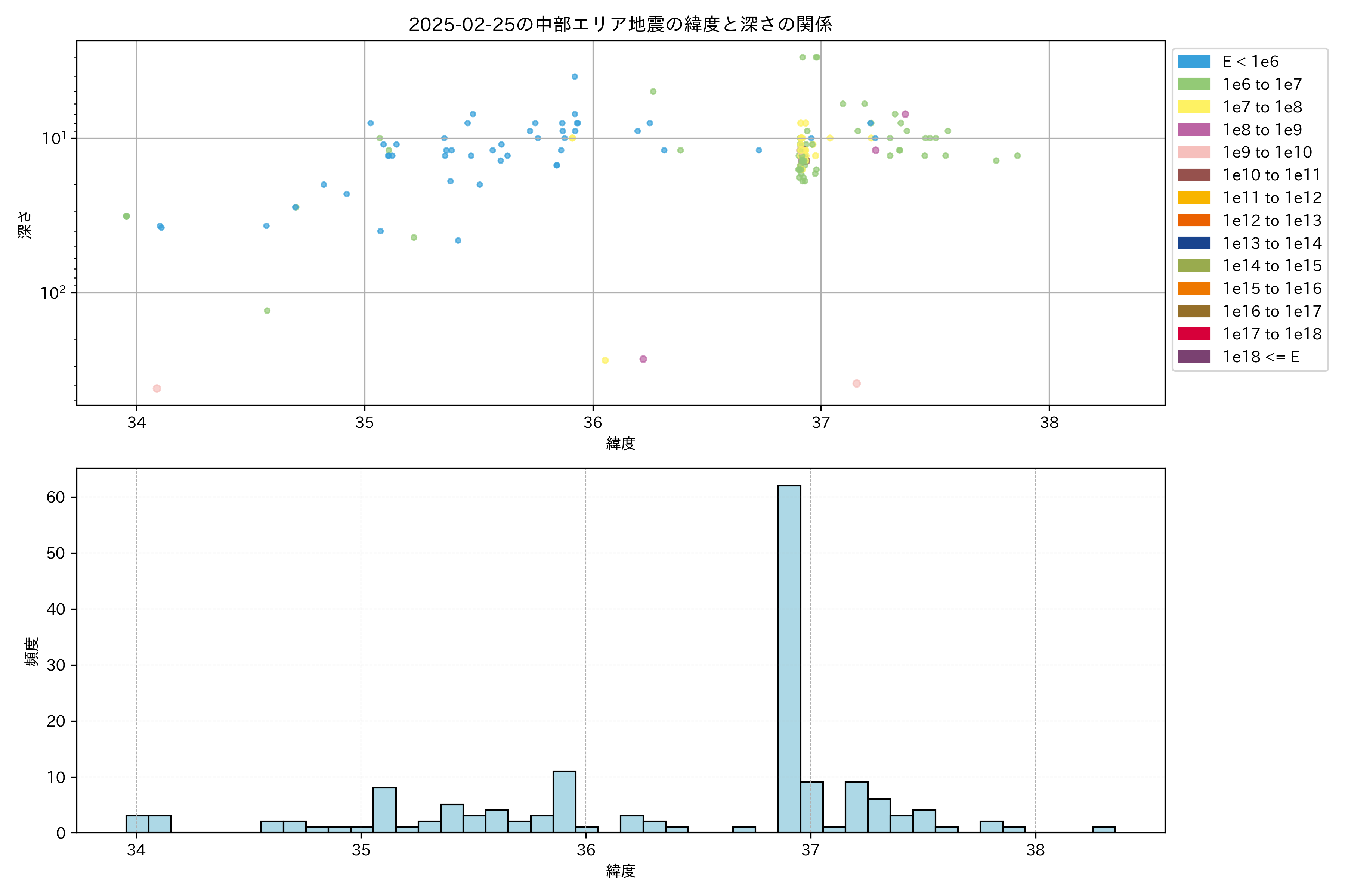 2025年02月25日中部エリア震源マップ