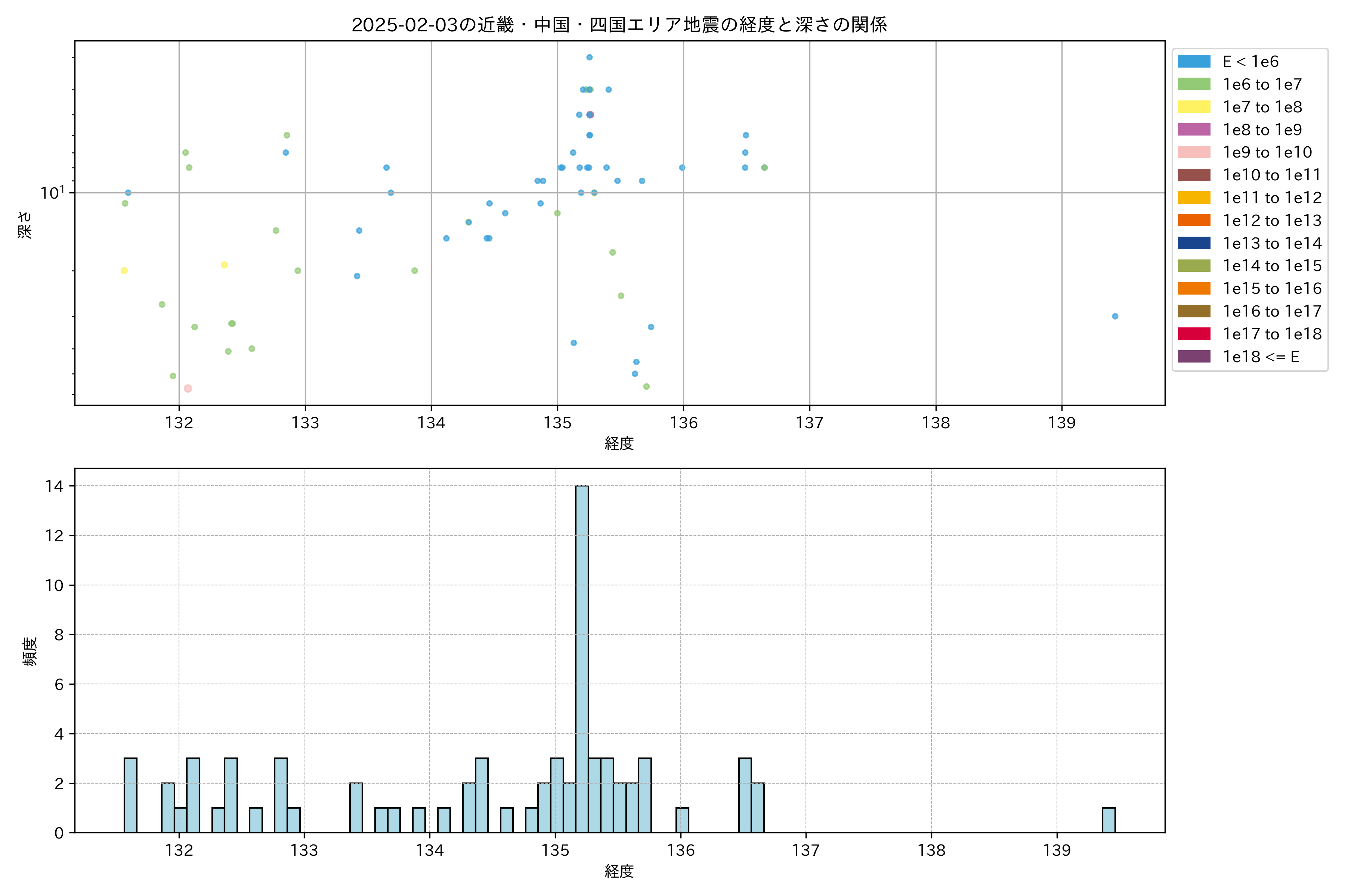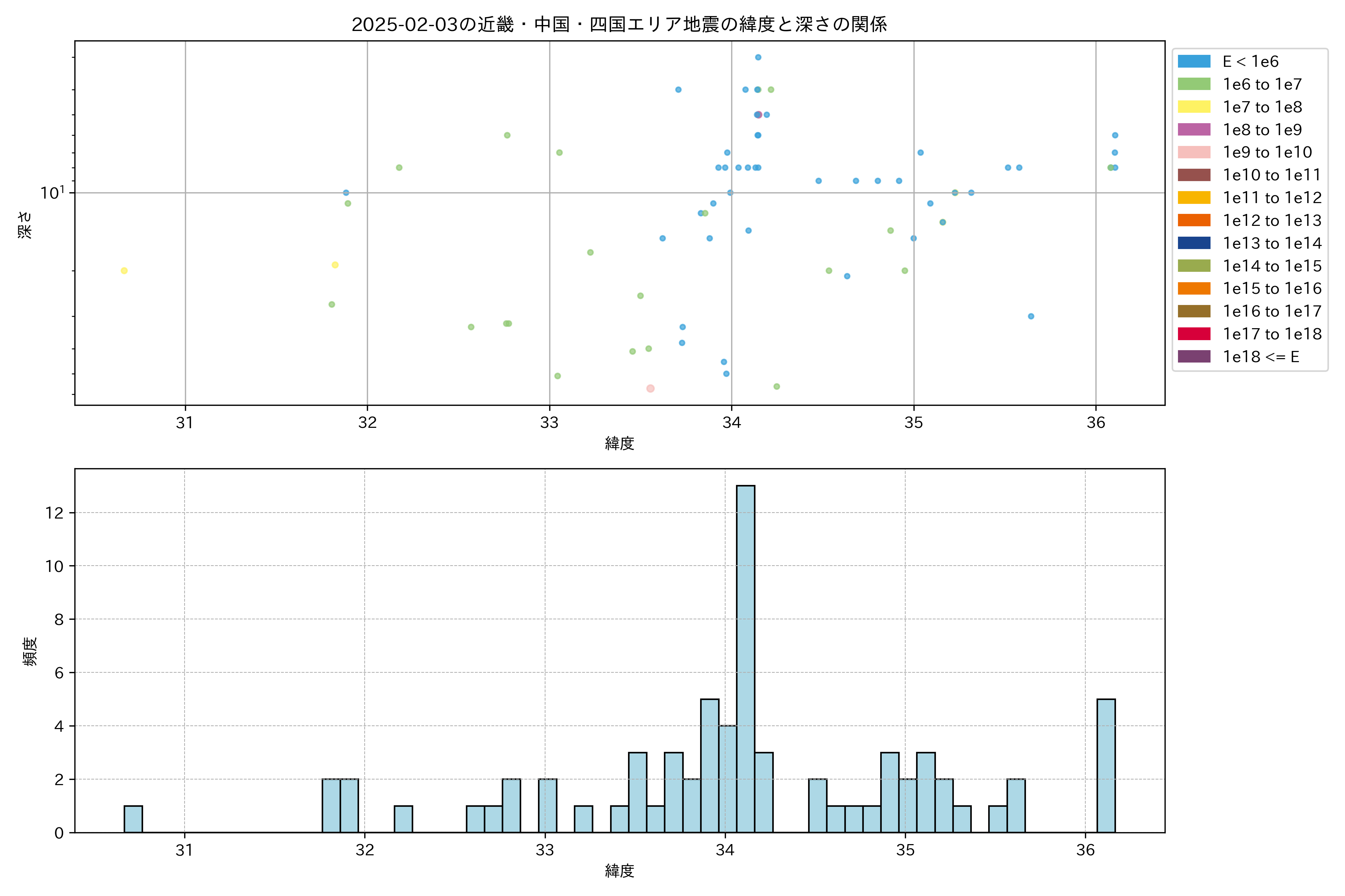 2025年02月03日近畿・中国・四国エリア震源マップ