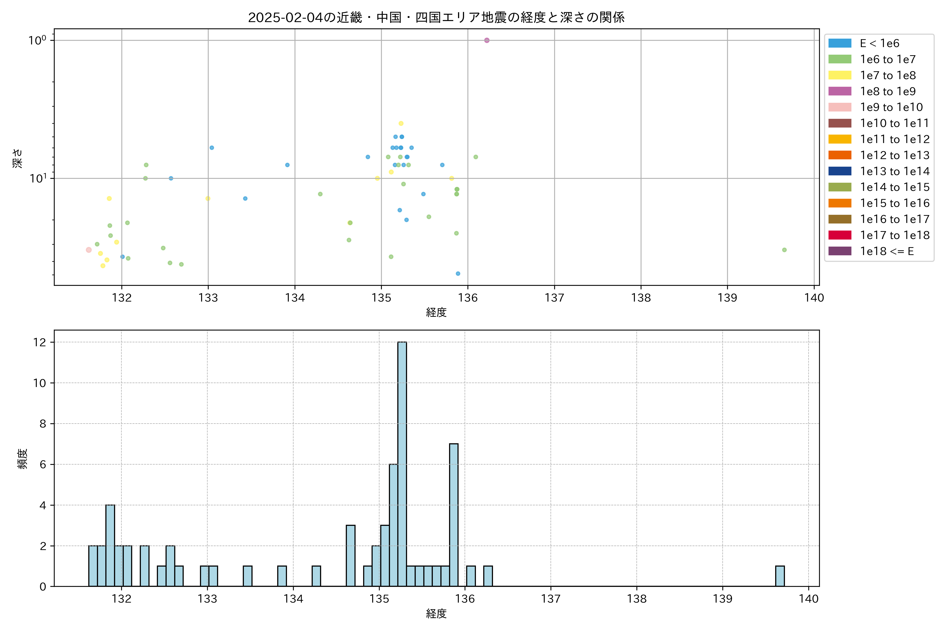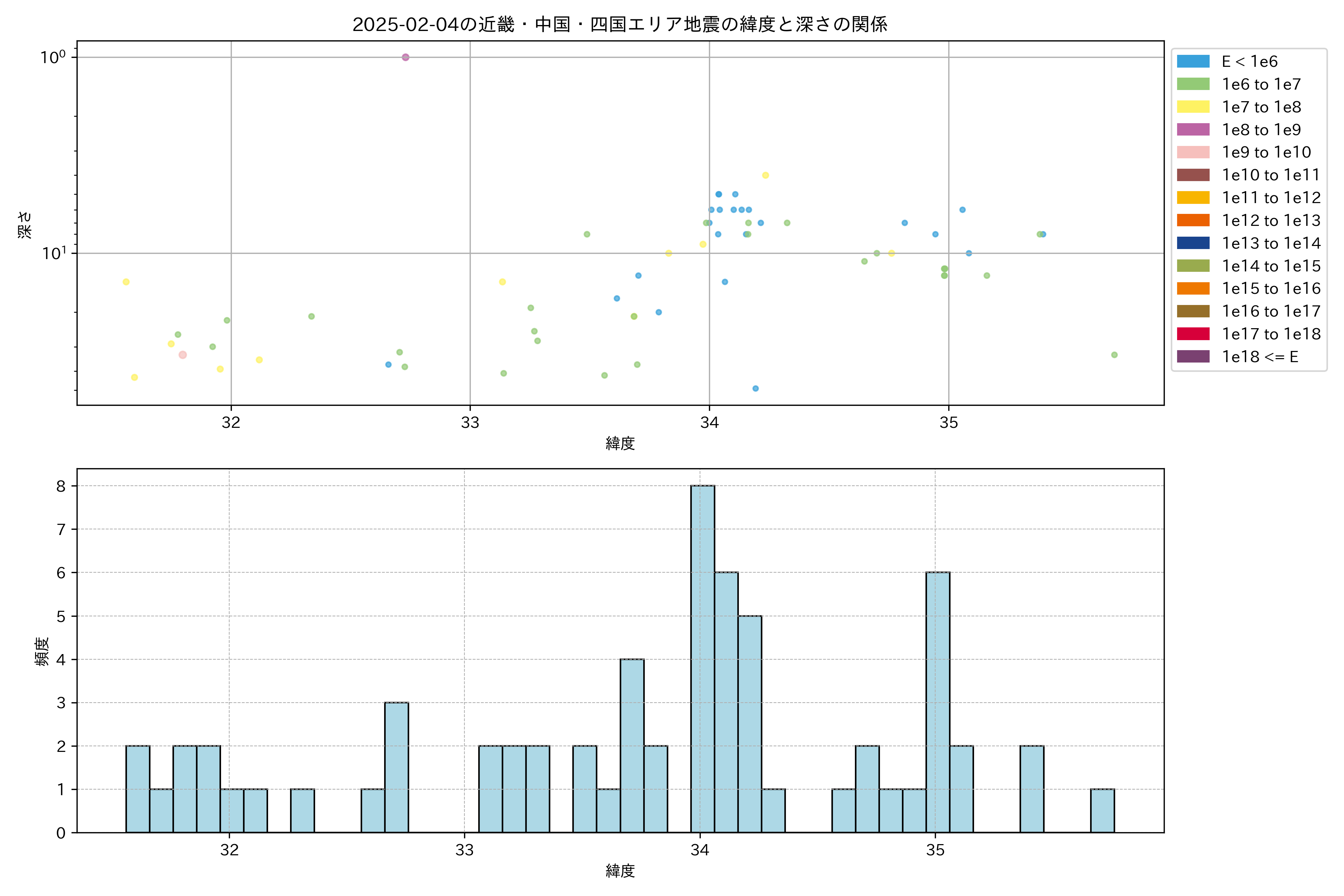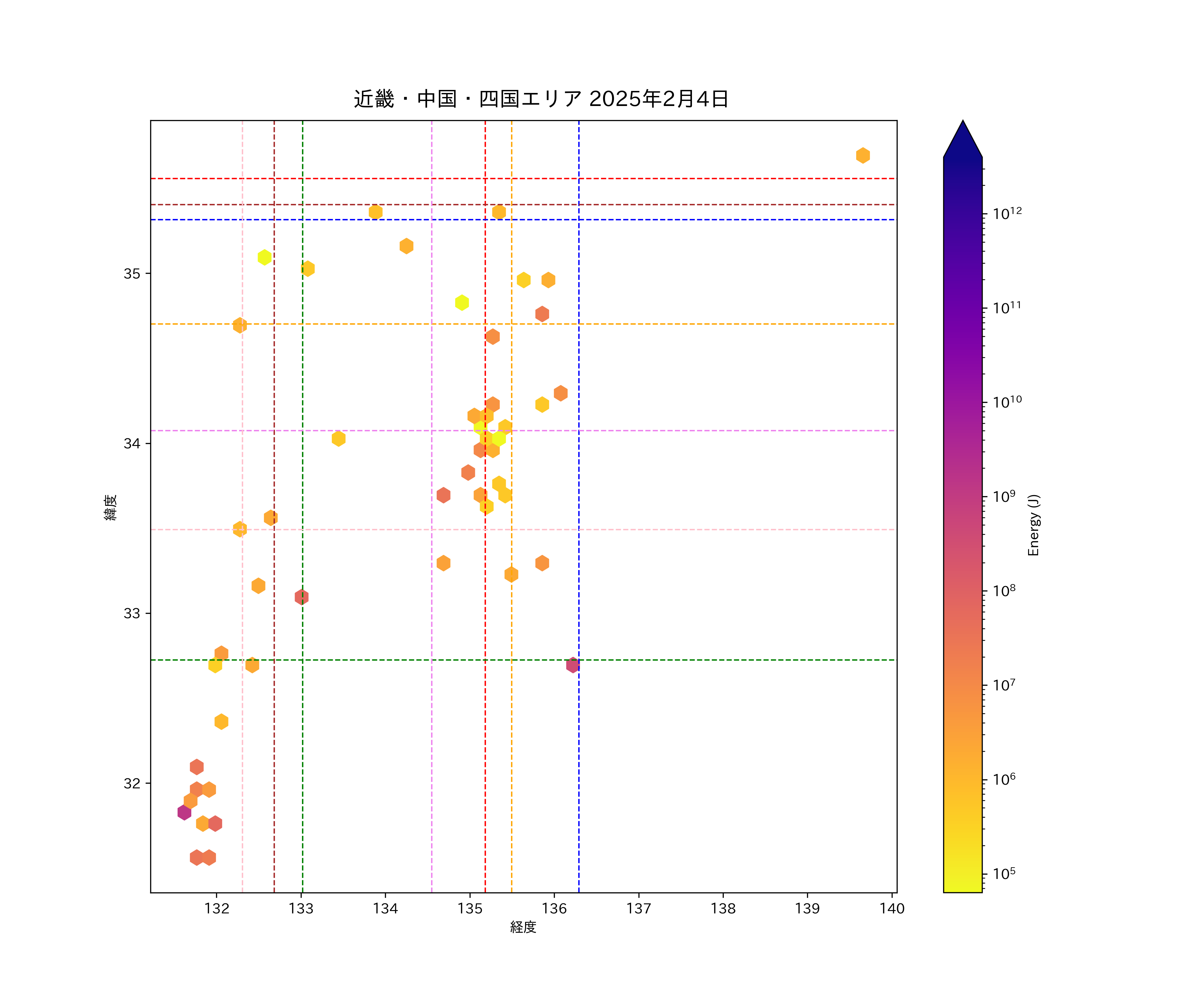 2025年02月04日近畿・中国・四国エリア震源マップ