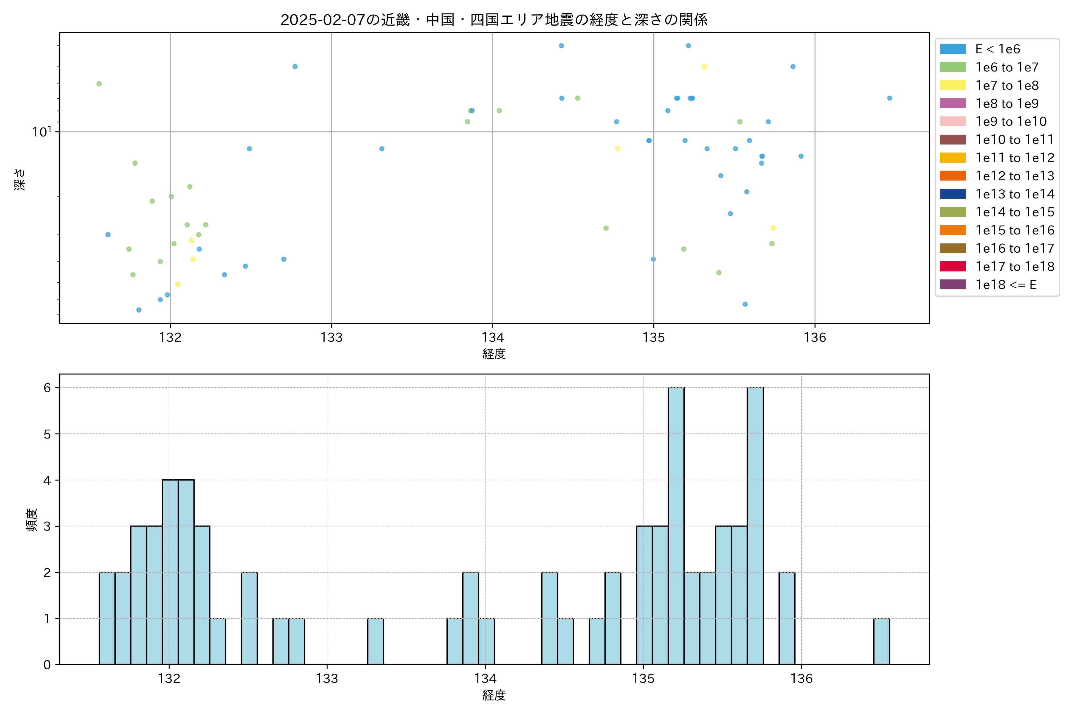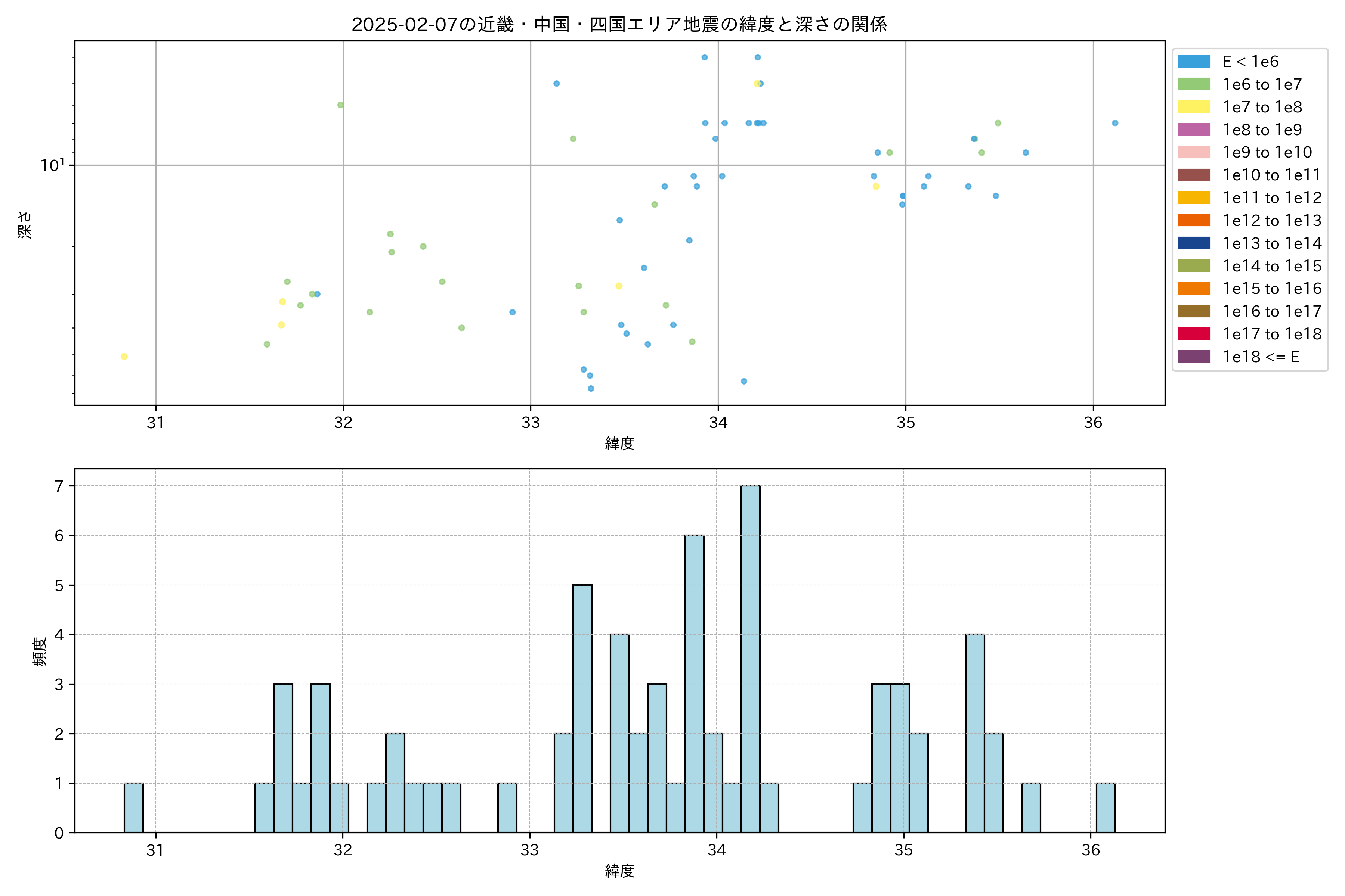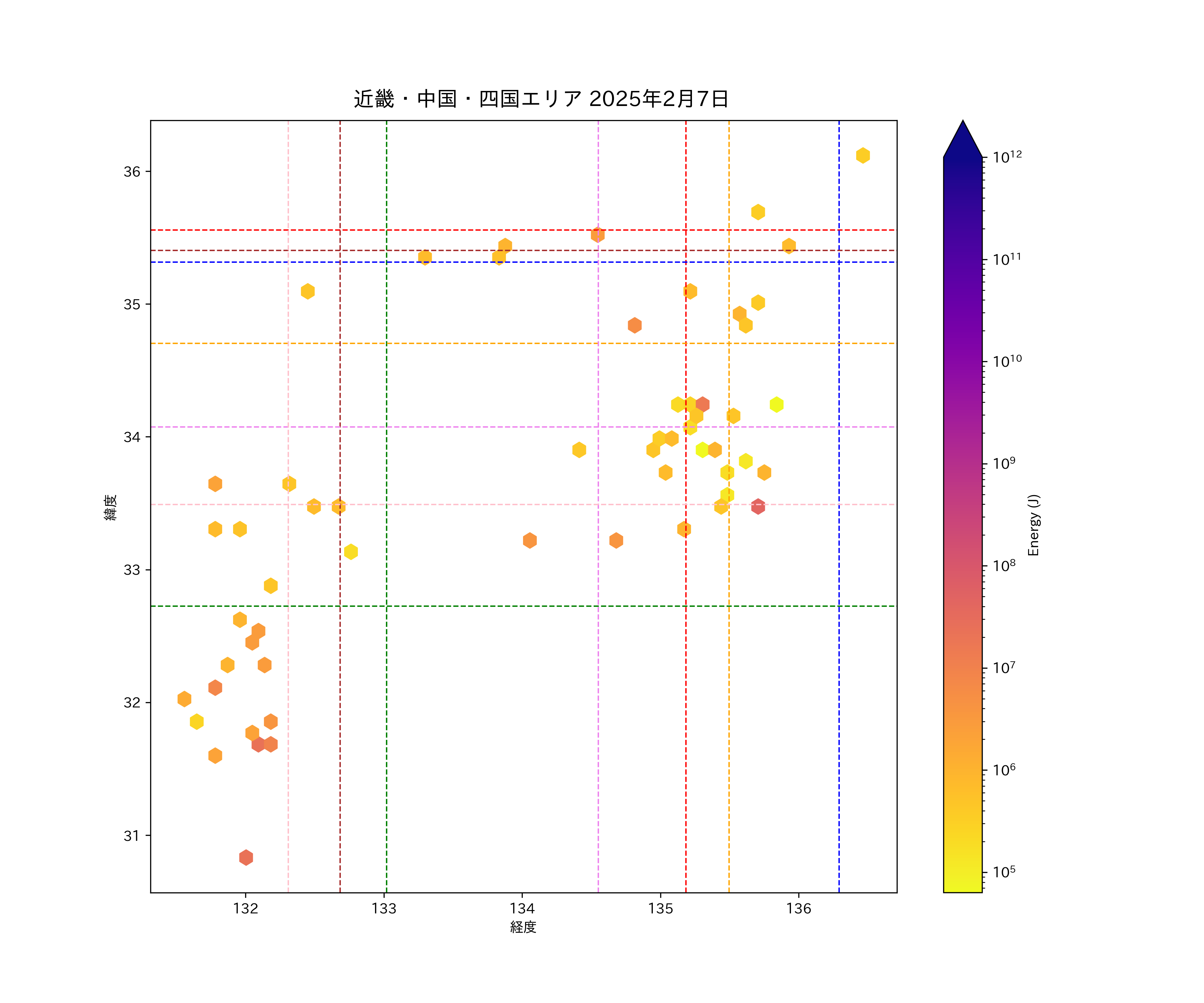 2025年02月07日近畿・中国・四国エリア震源マップ