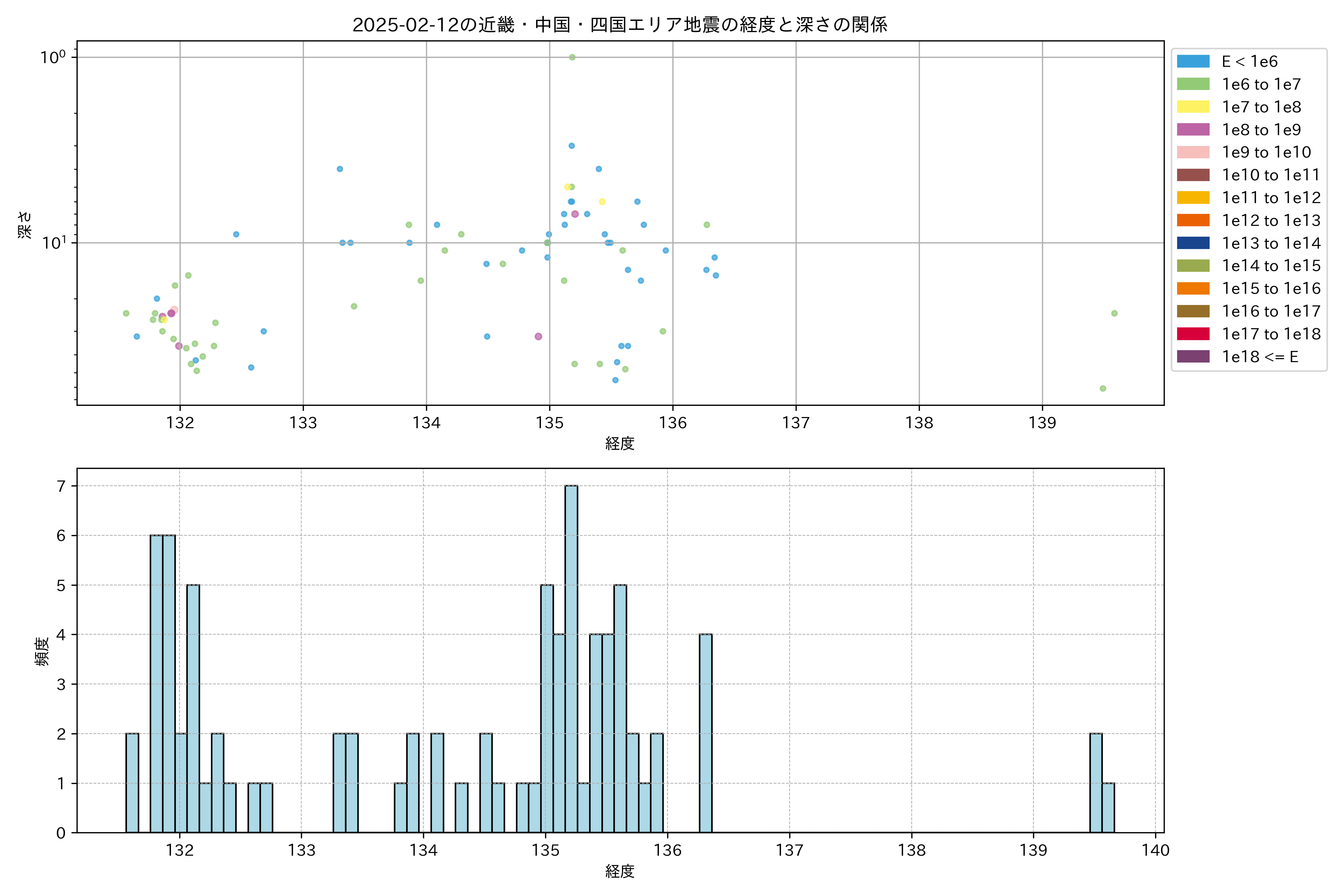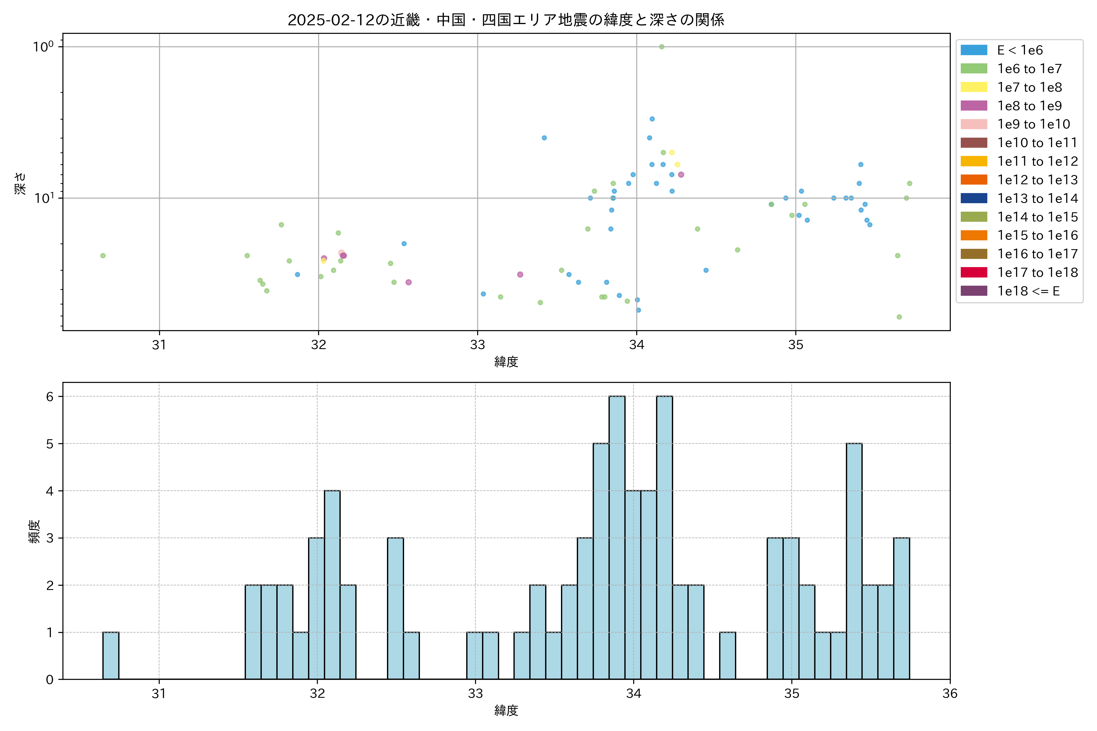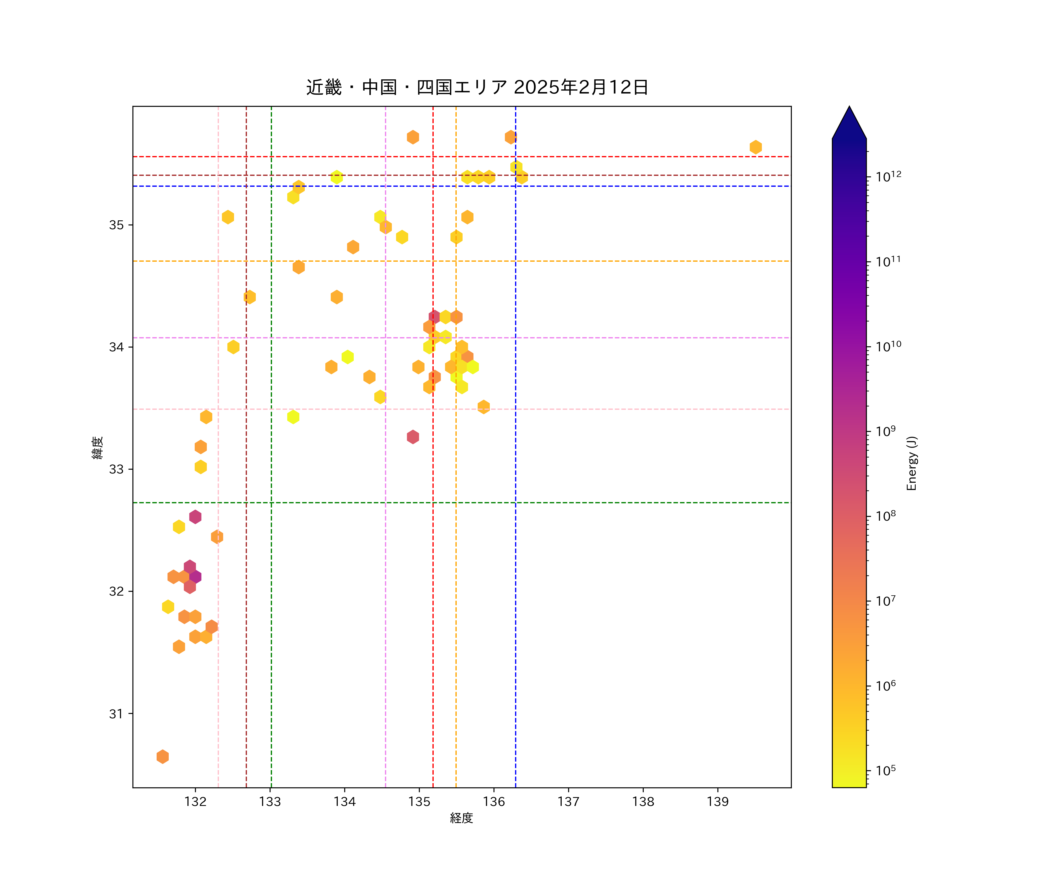 2025年02月12日近畿・中国・四国エリア震源マップ