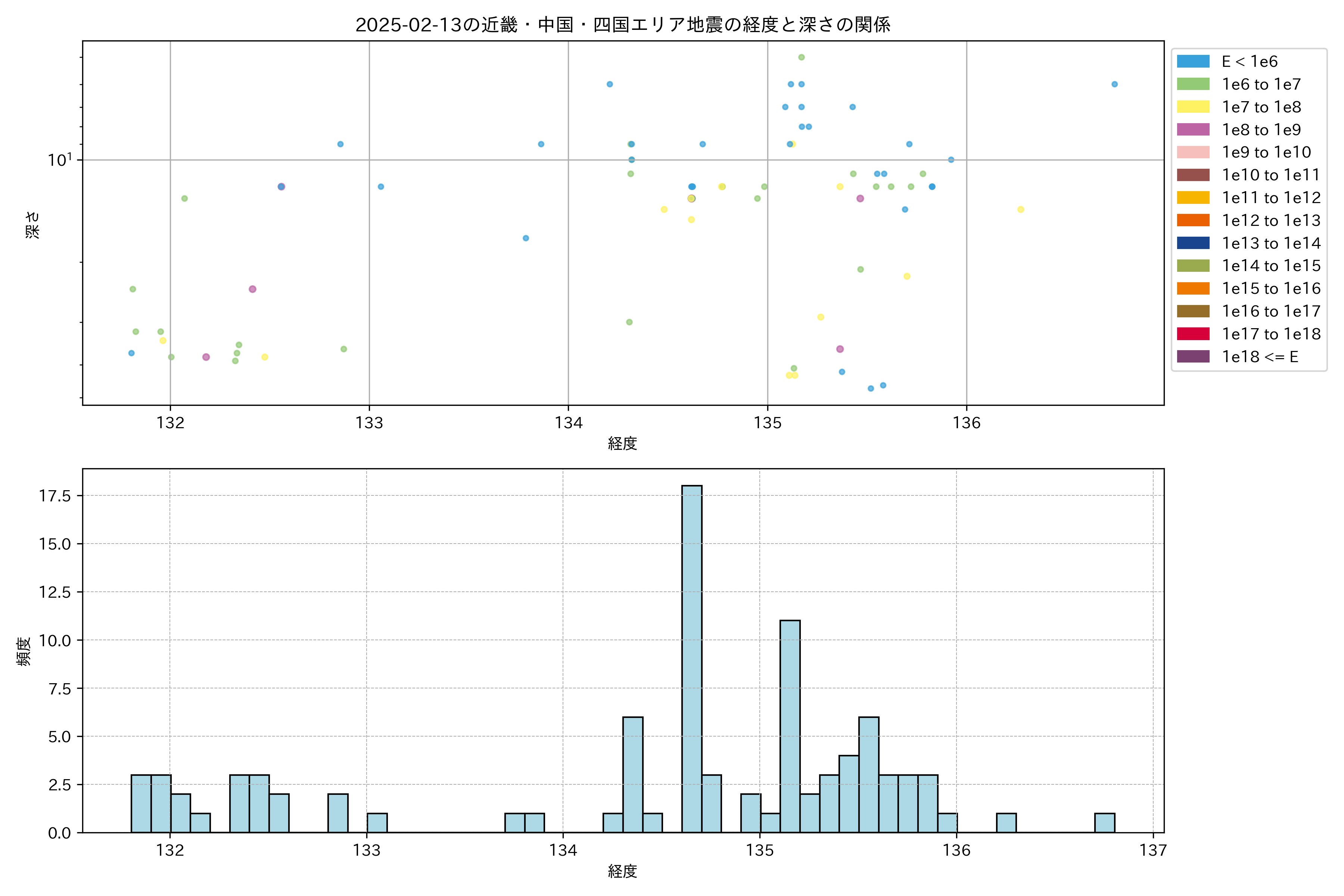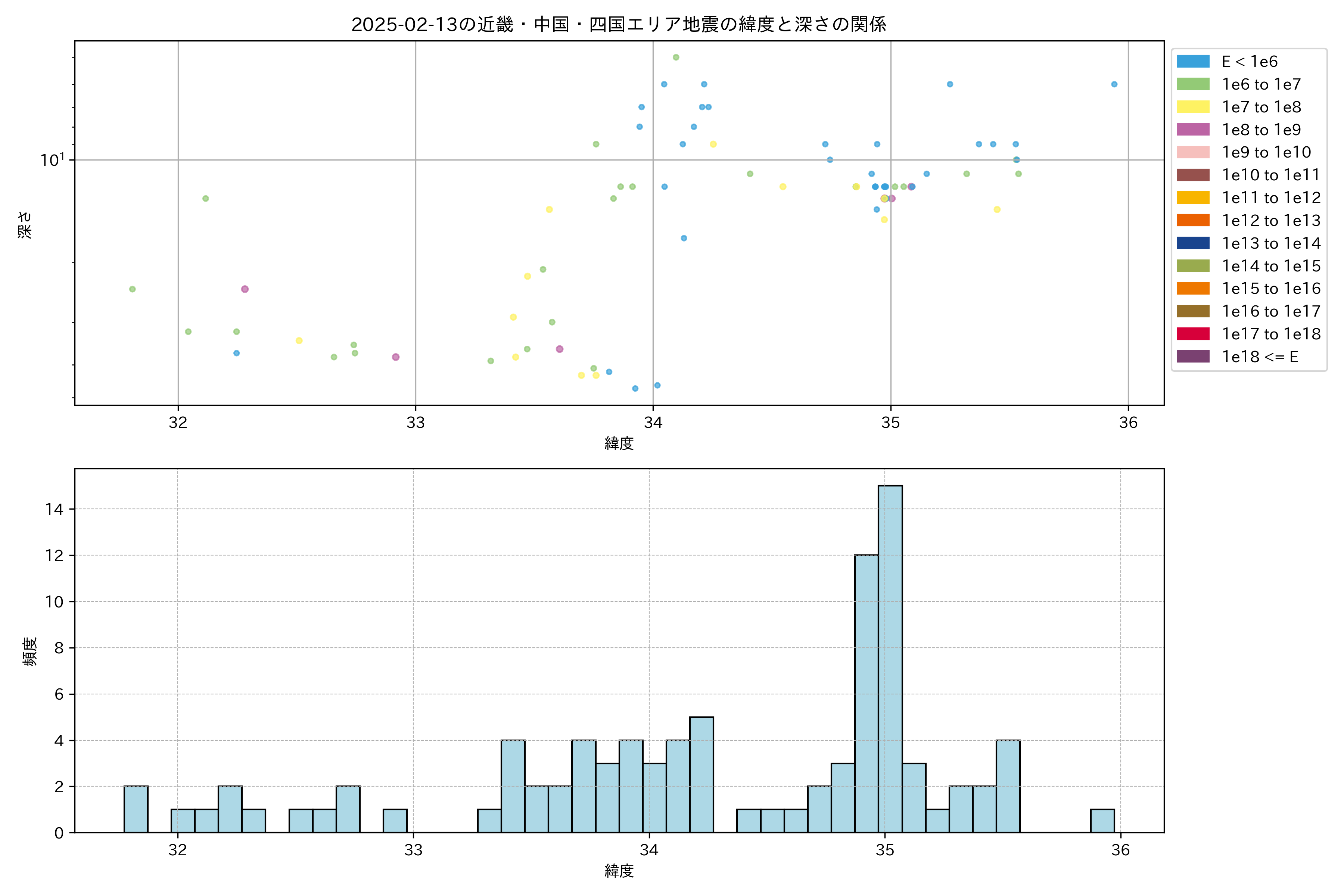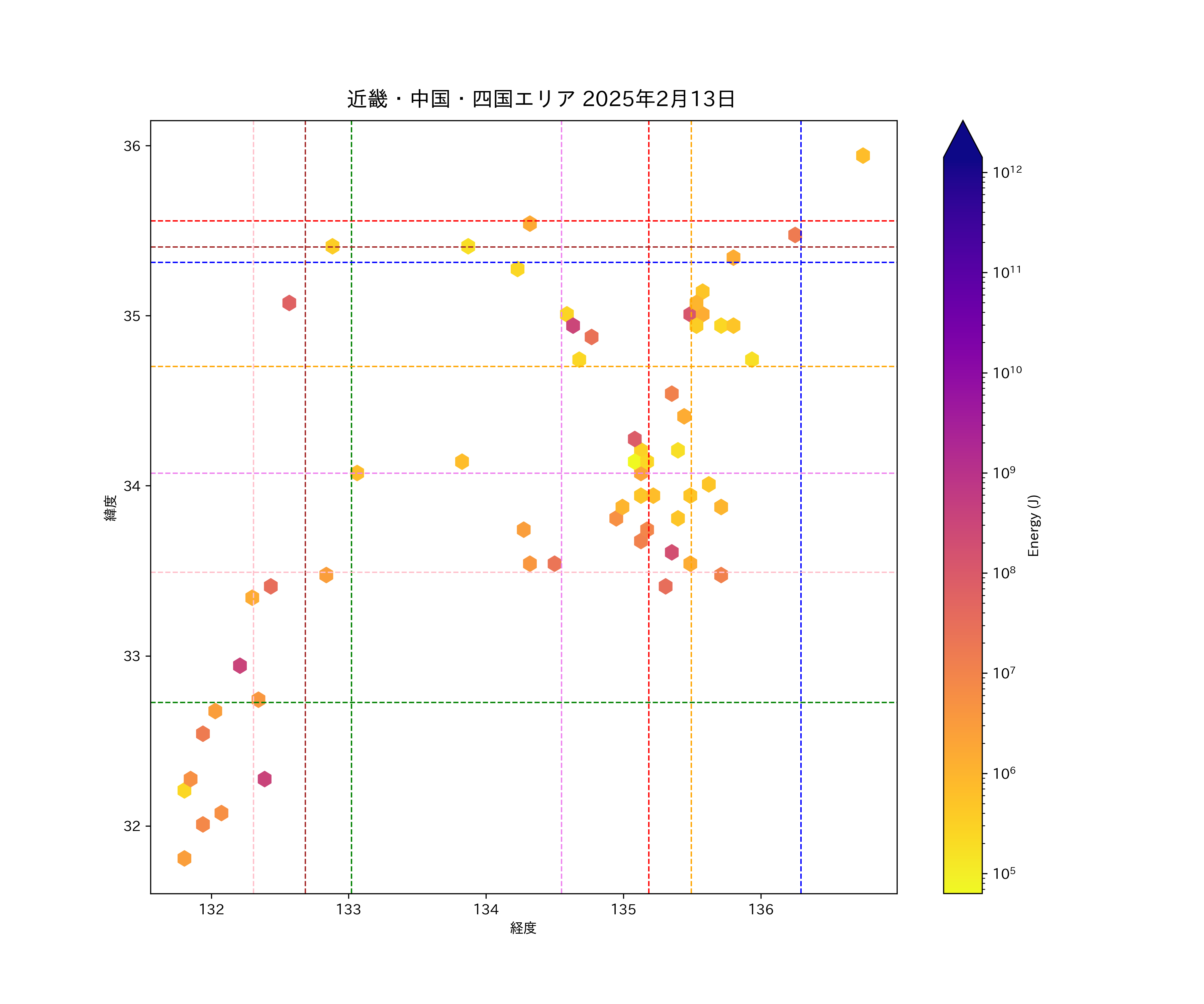 2025年02月13日近畿・中国・四国エリア震源マップ