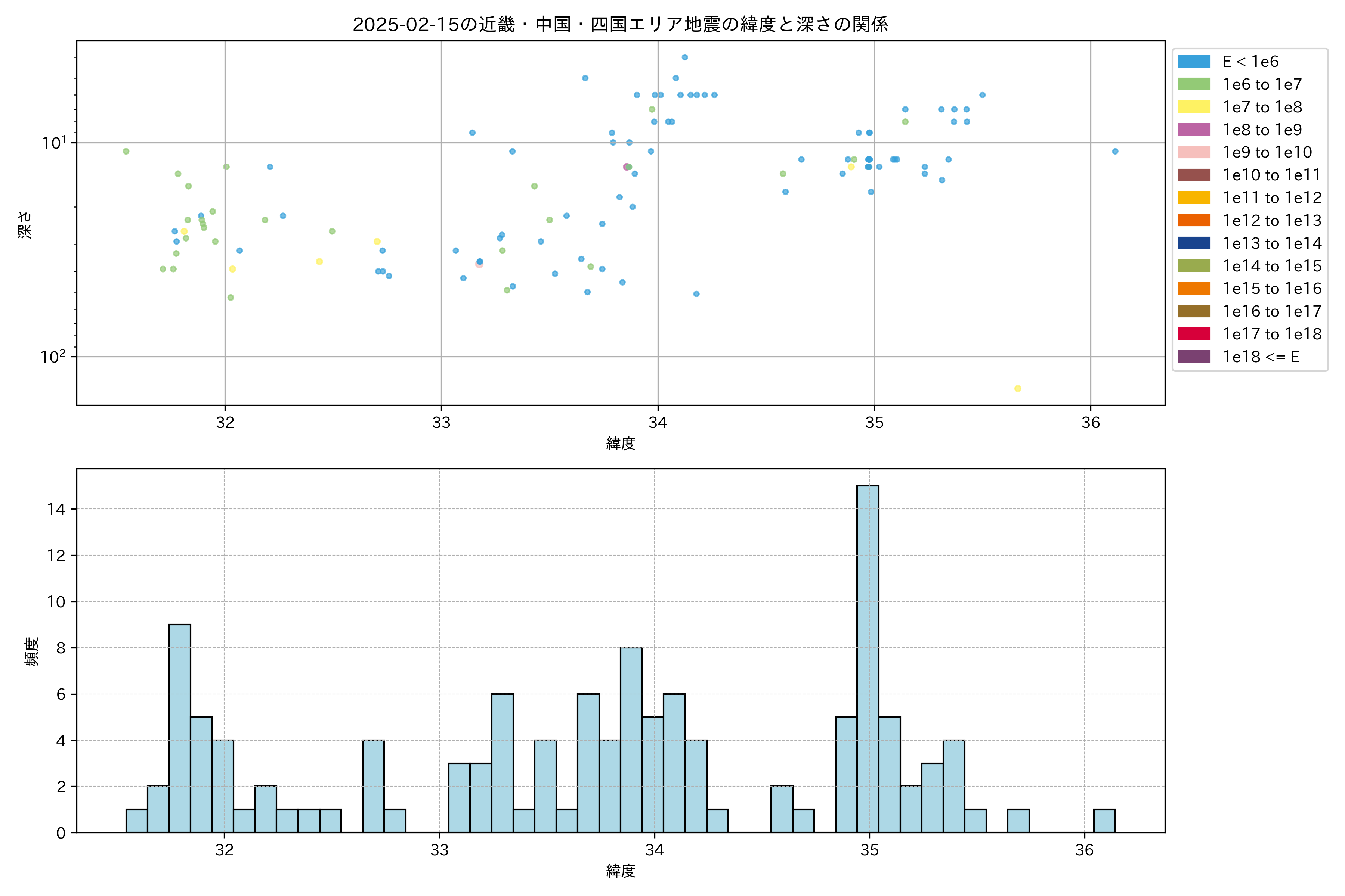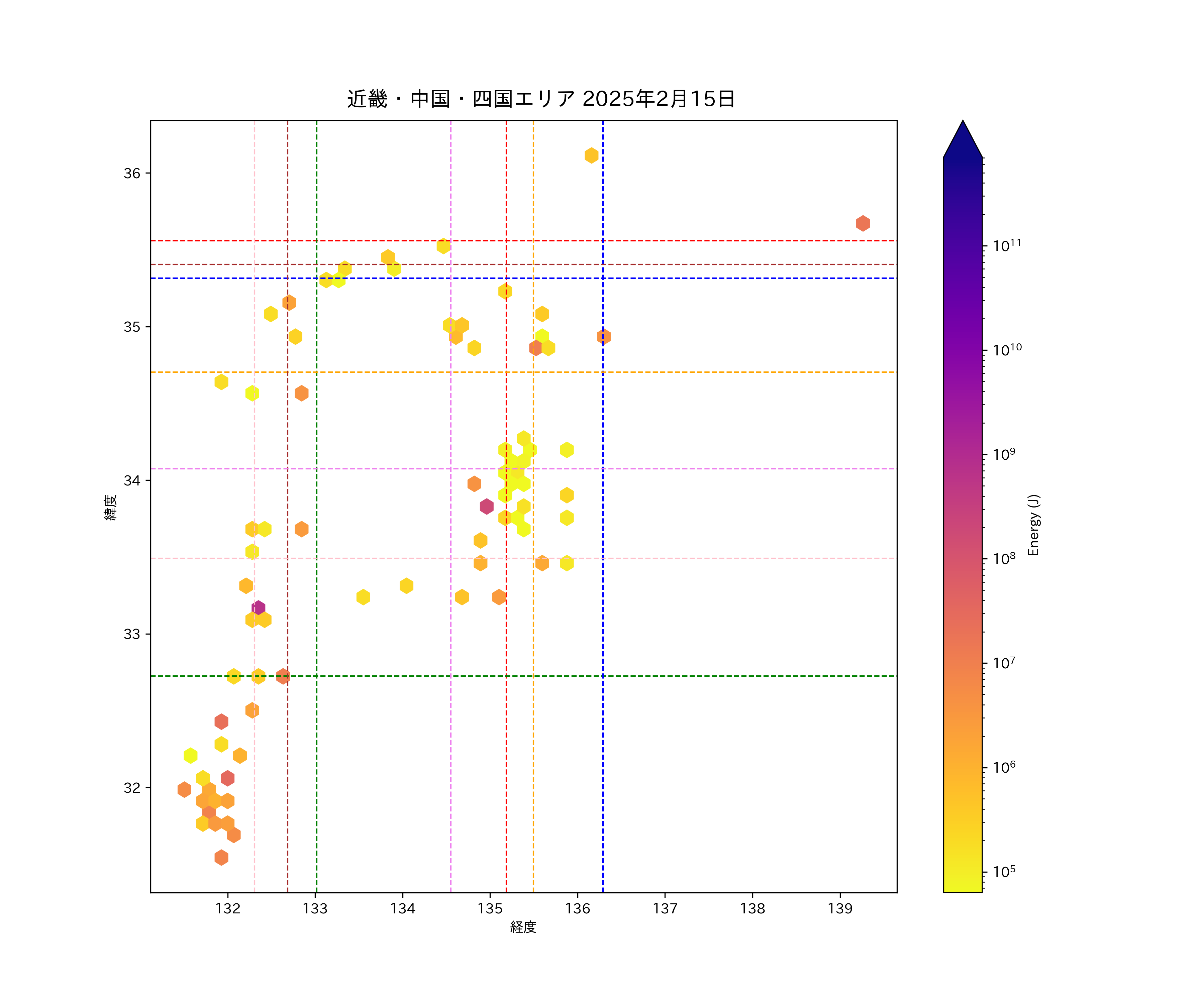2025年02月15日近畿・中国・四国エリア震源マップ